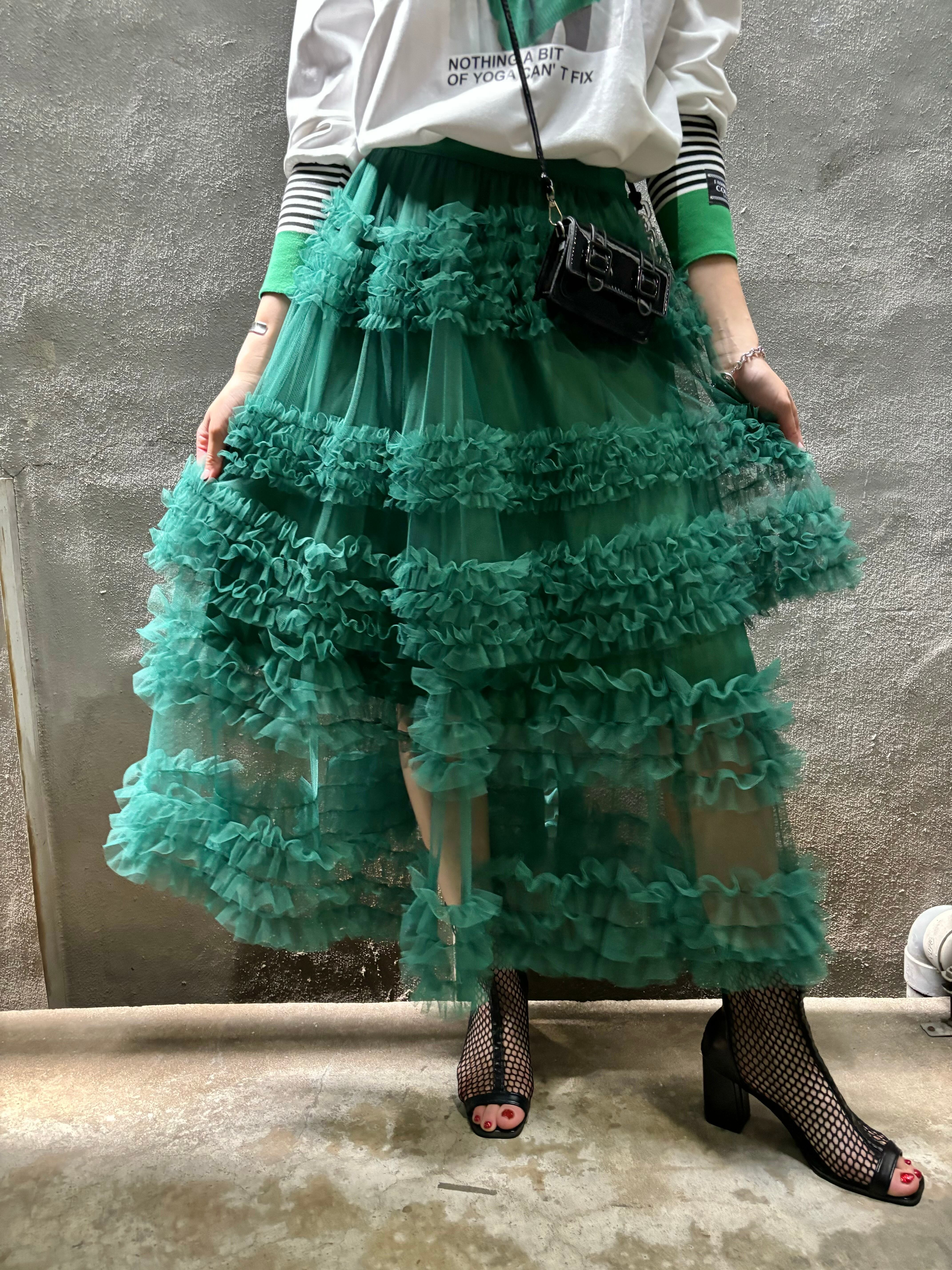 tulle frill tiered gather design skirt スカート チュール フリル ギャザー ゴムウエスト カラフル