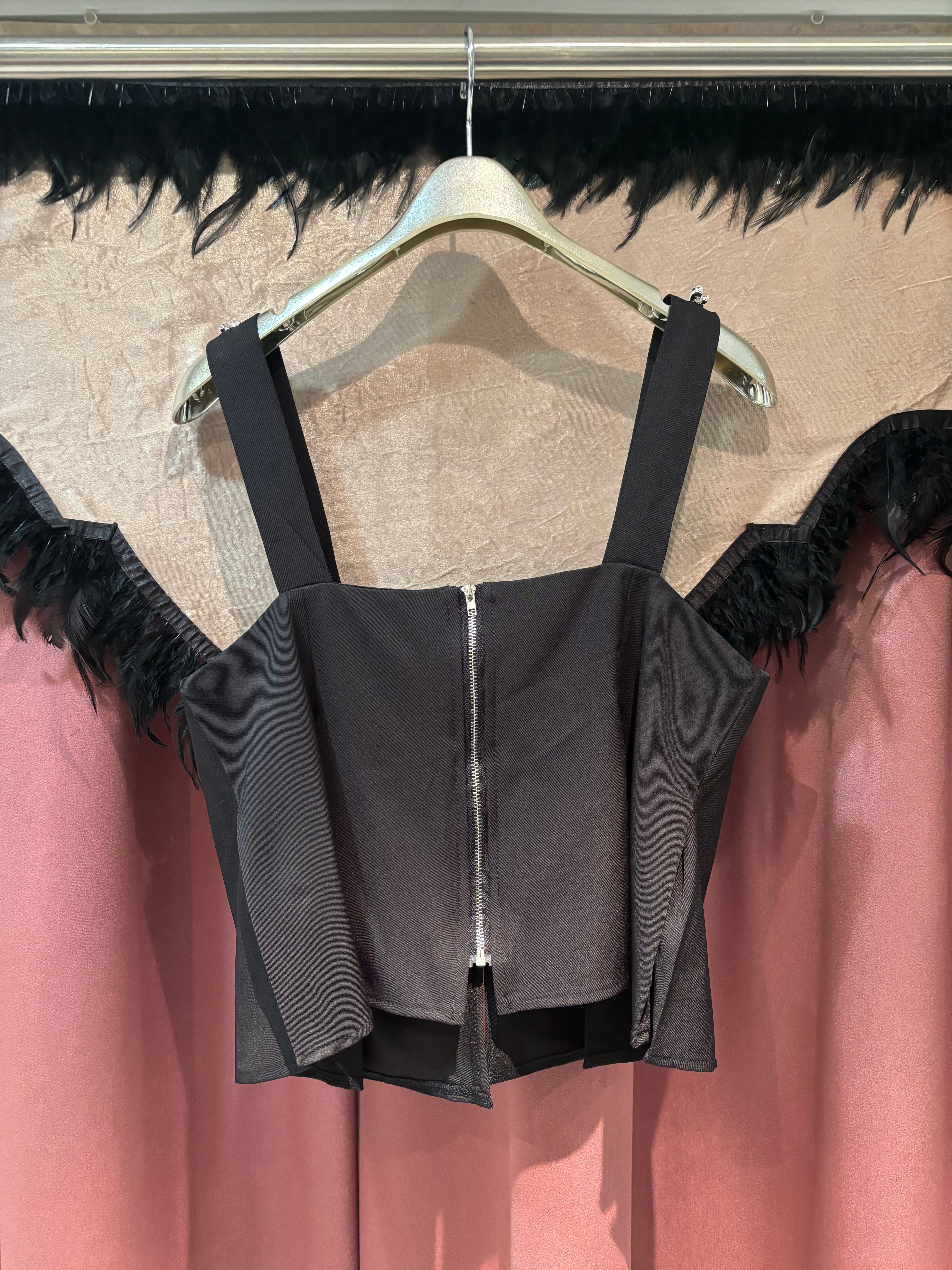 bijou strap pleats bustier camisole キャミソール ビスチェ ビジュー プリーツ ブラック 黒