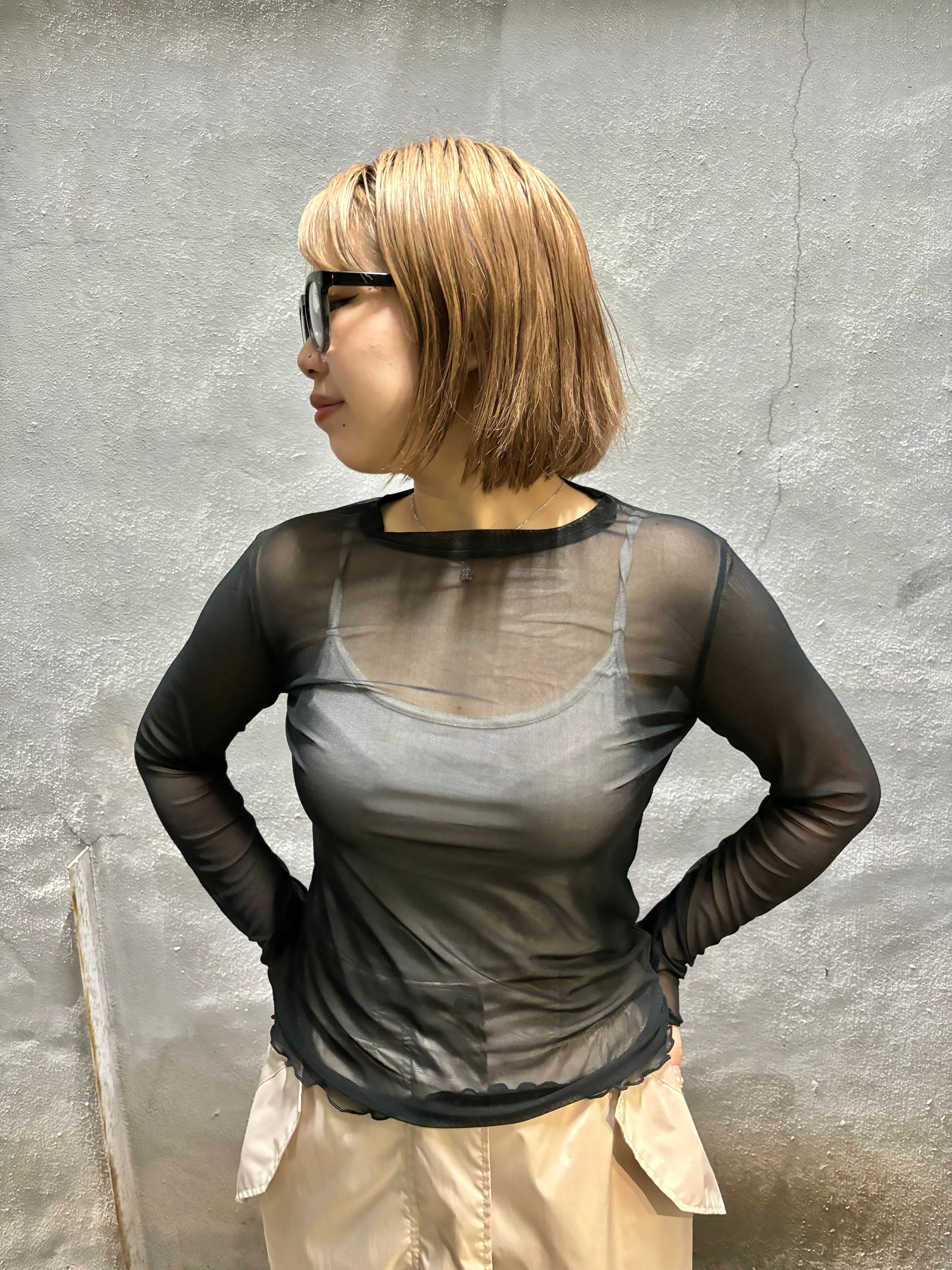 stretch mesh tops トップス メッシュ ストレッチ 無地 重ね着 着まわし