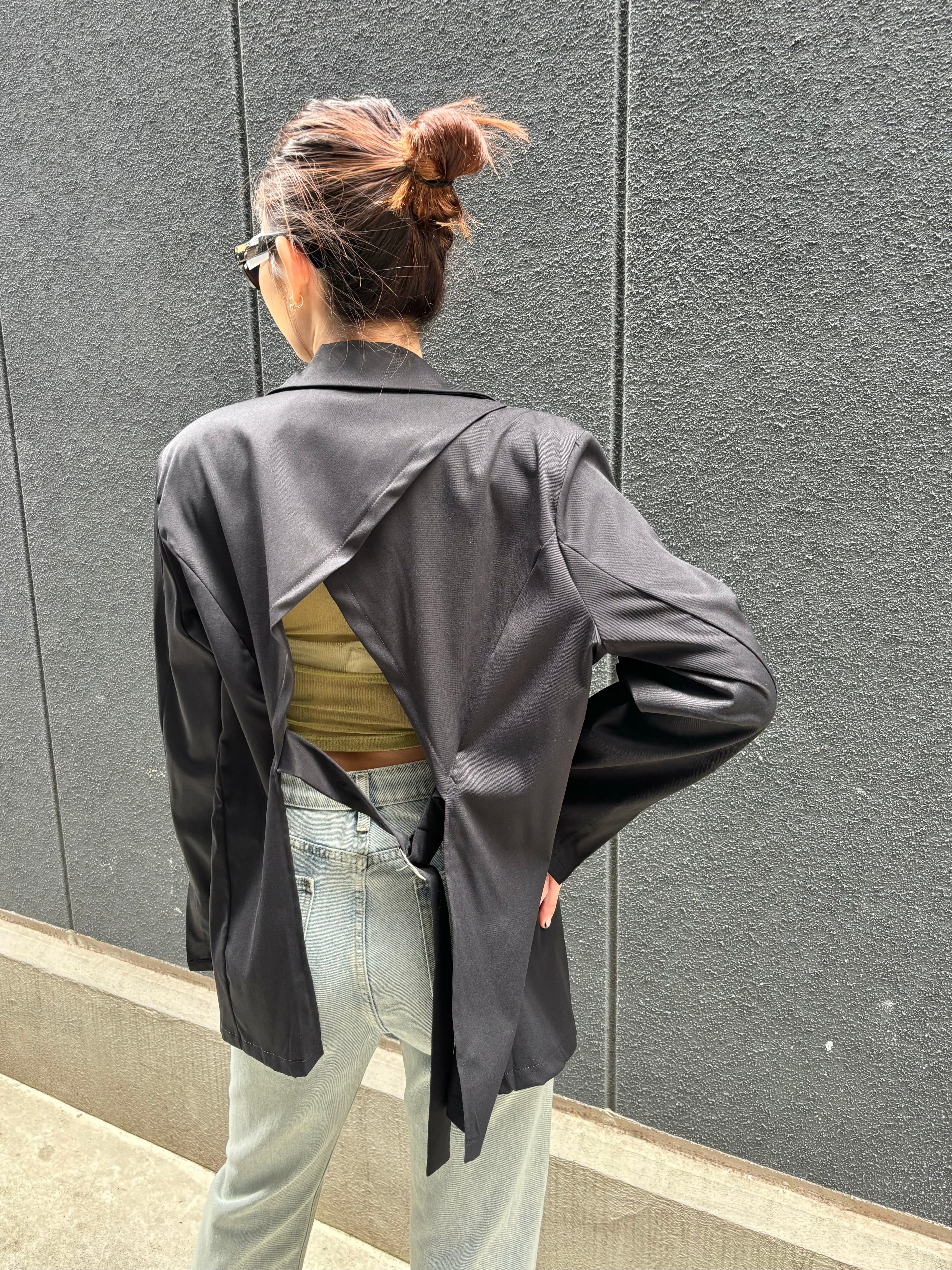 back belt open design tailored jacket ジャケット テーラード 背中開き ベルト 黒 ブラック