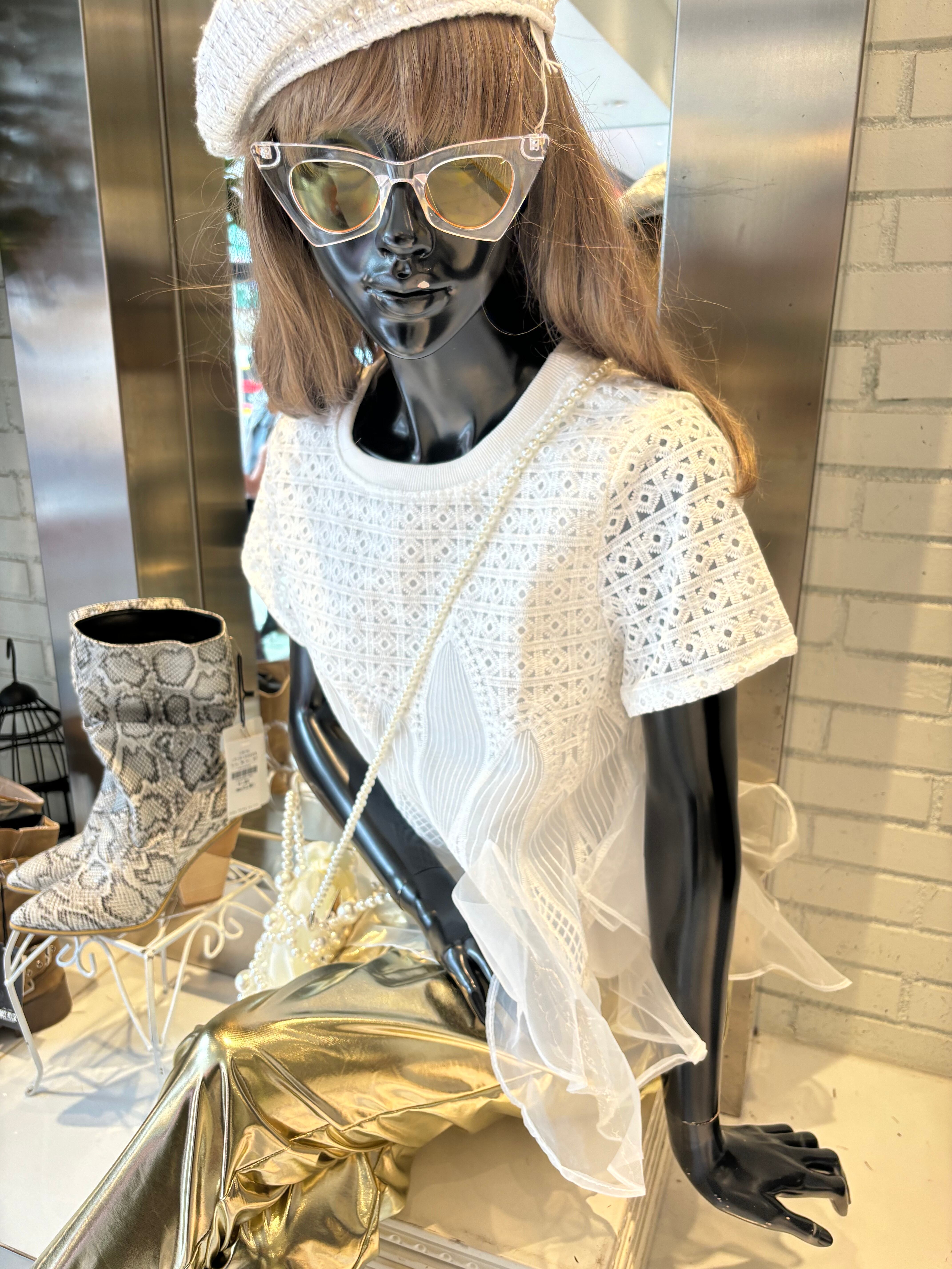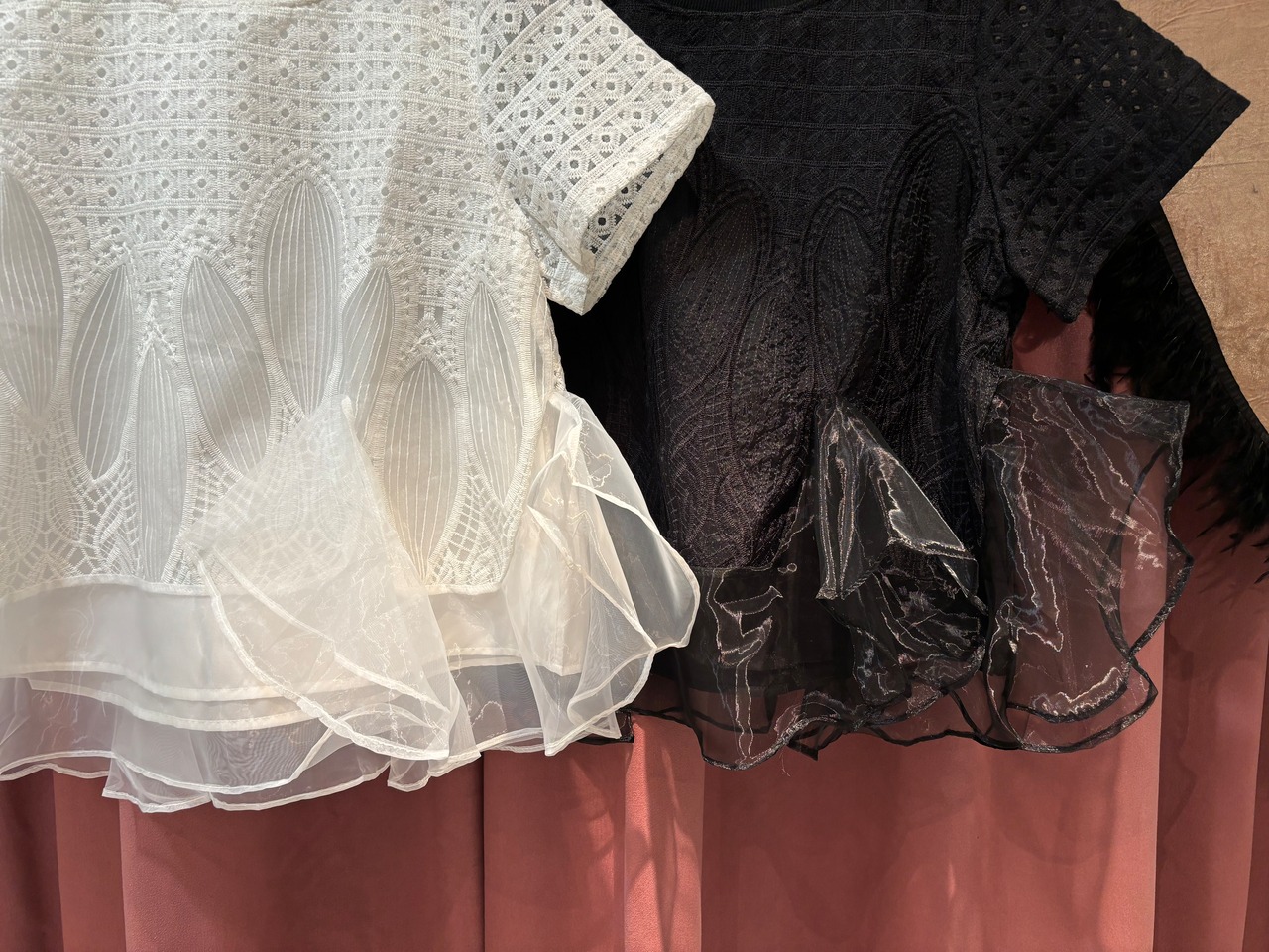 lace × organdy change design tops トップス レース オーガンジー 半袖 白 黒