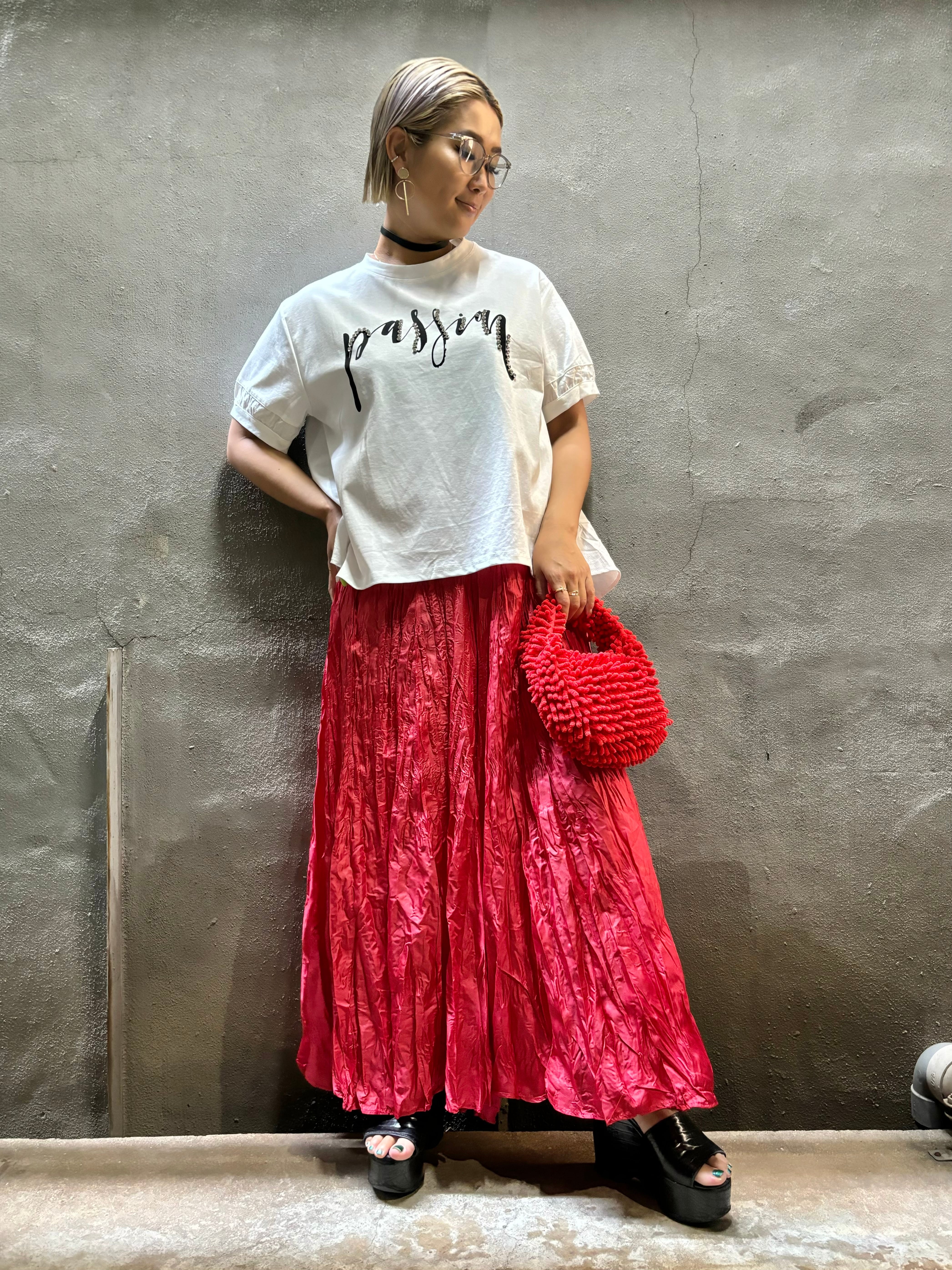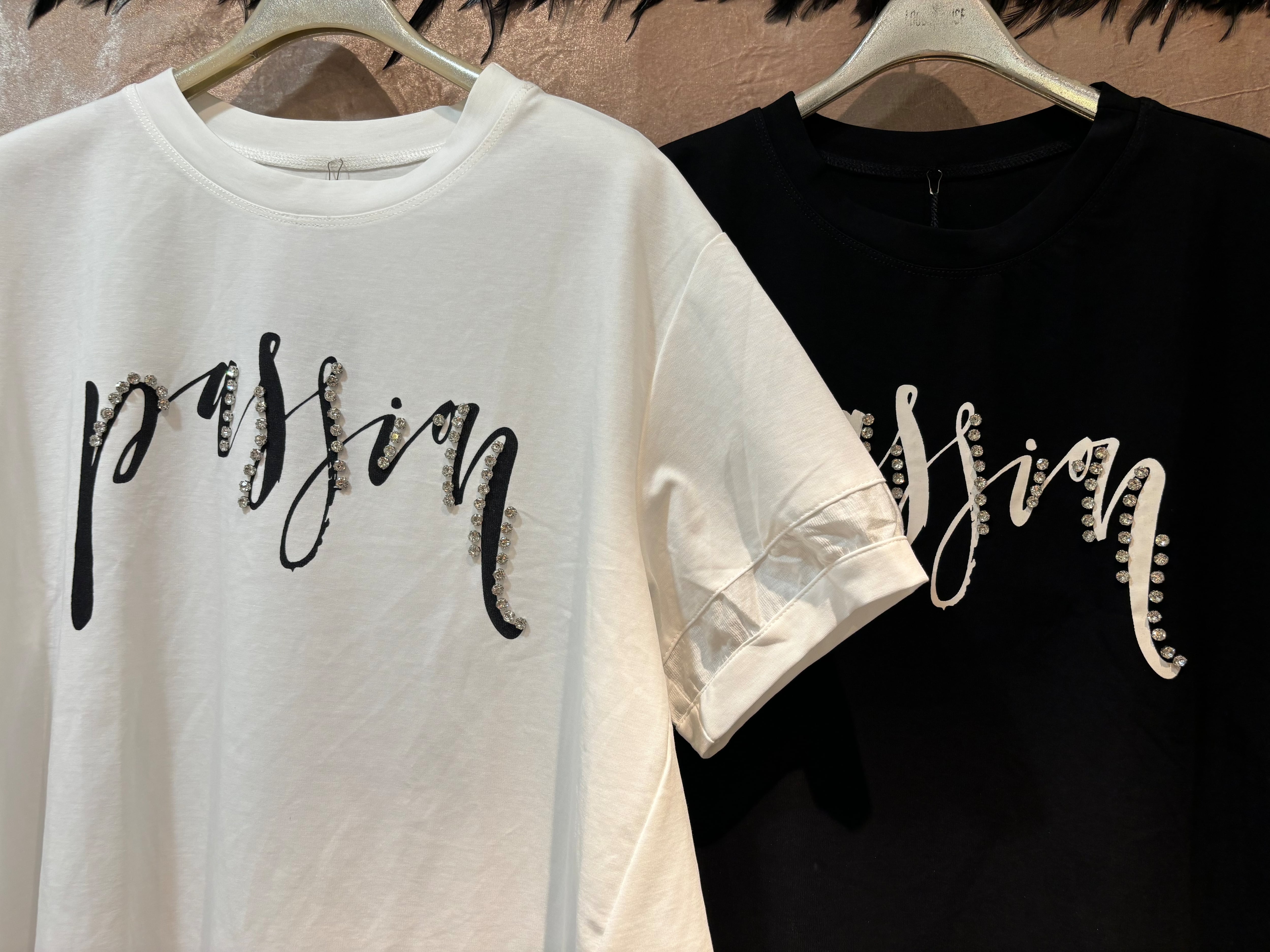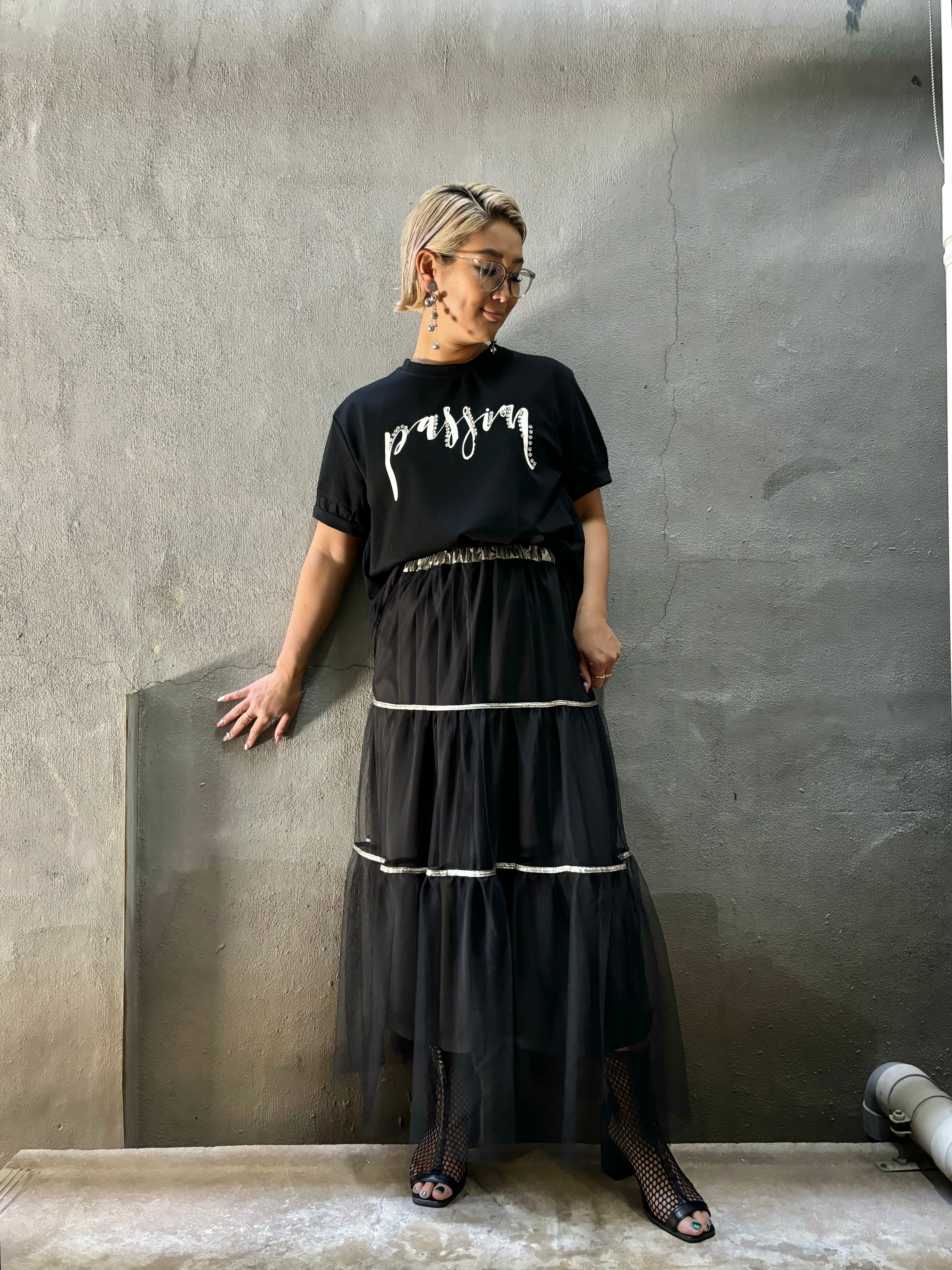 different fabrics change design tops トップス 半袖 異素材切替 ビジュー プリントT