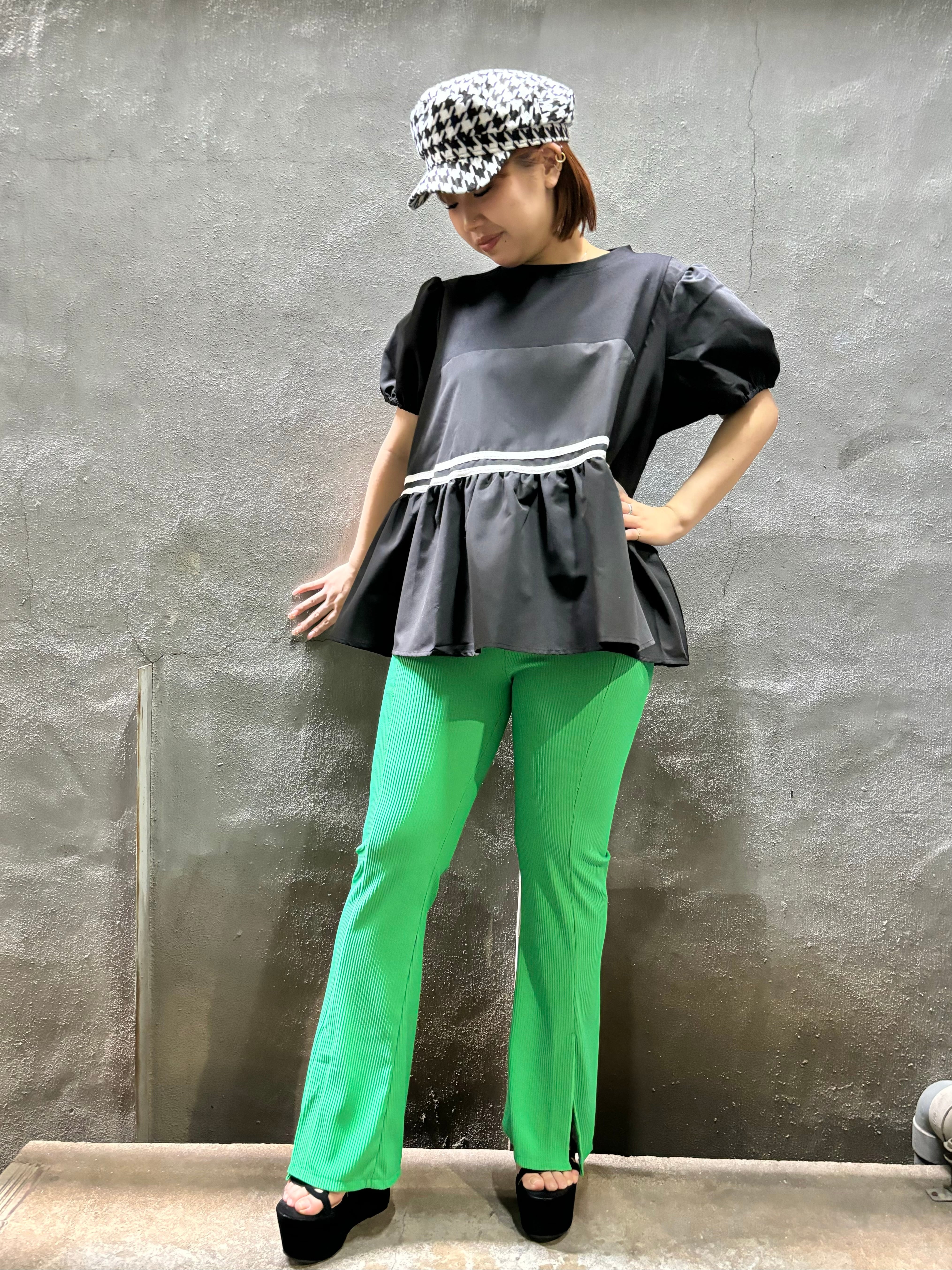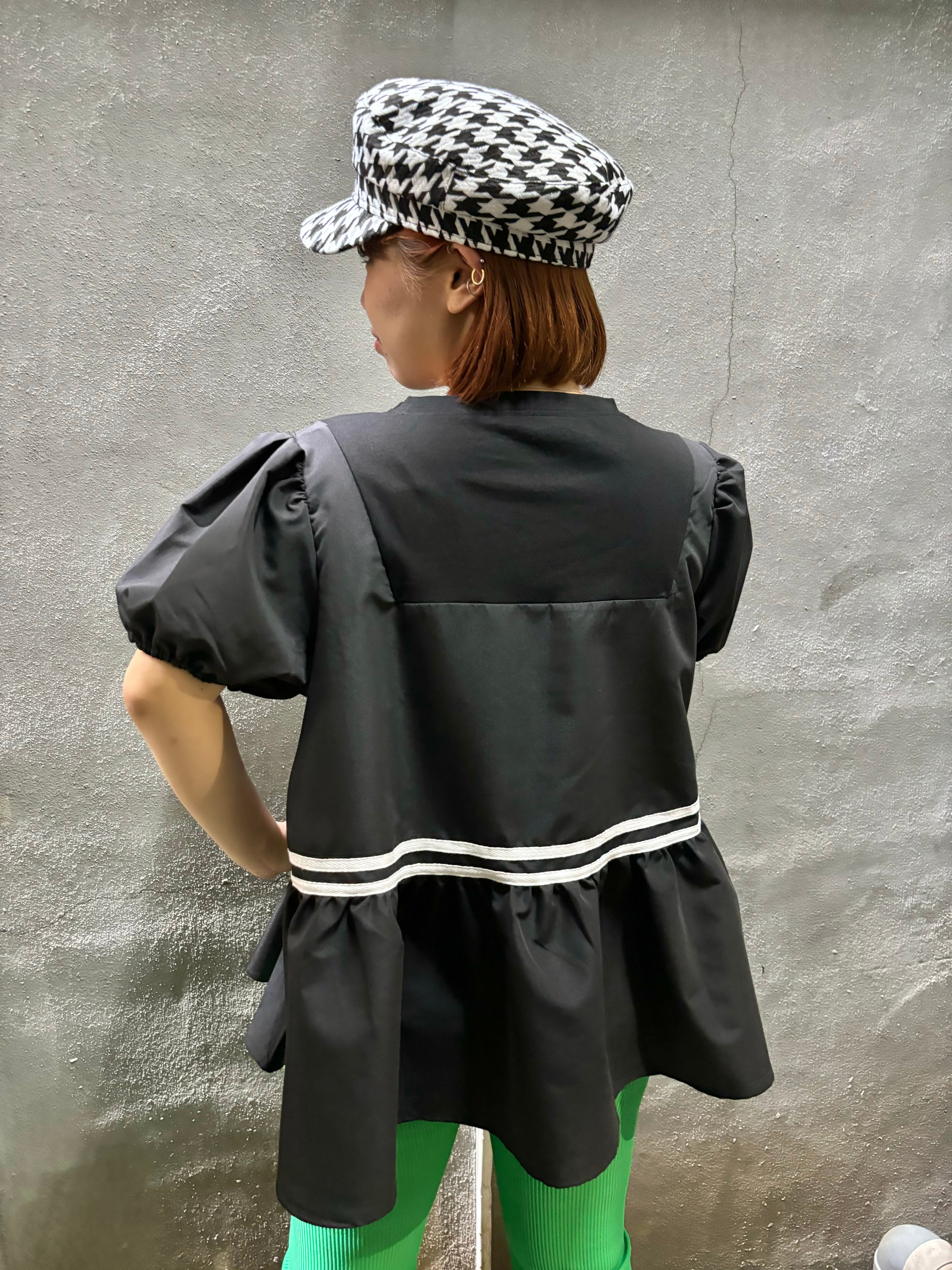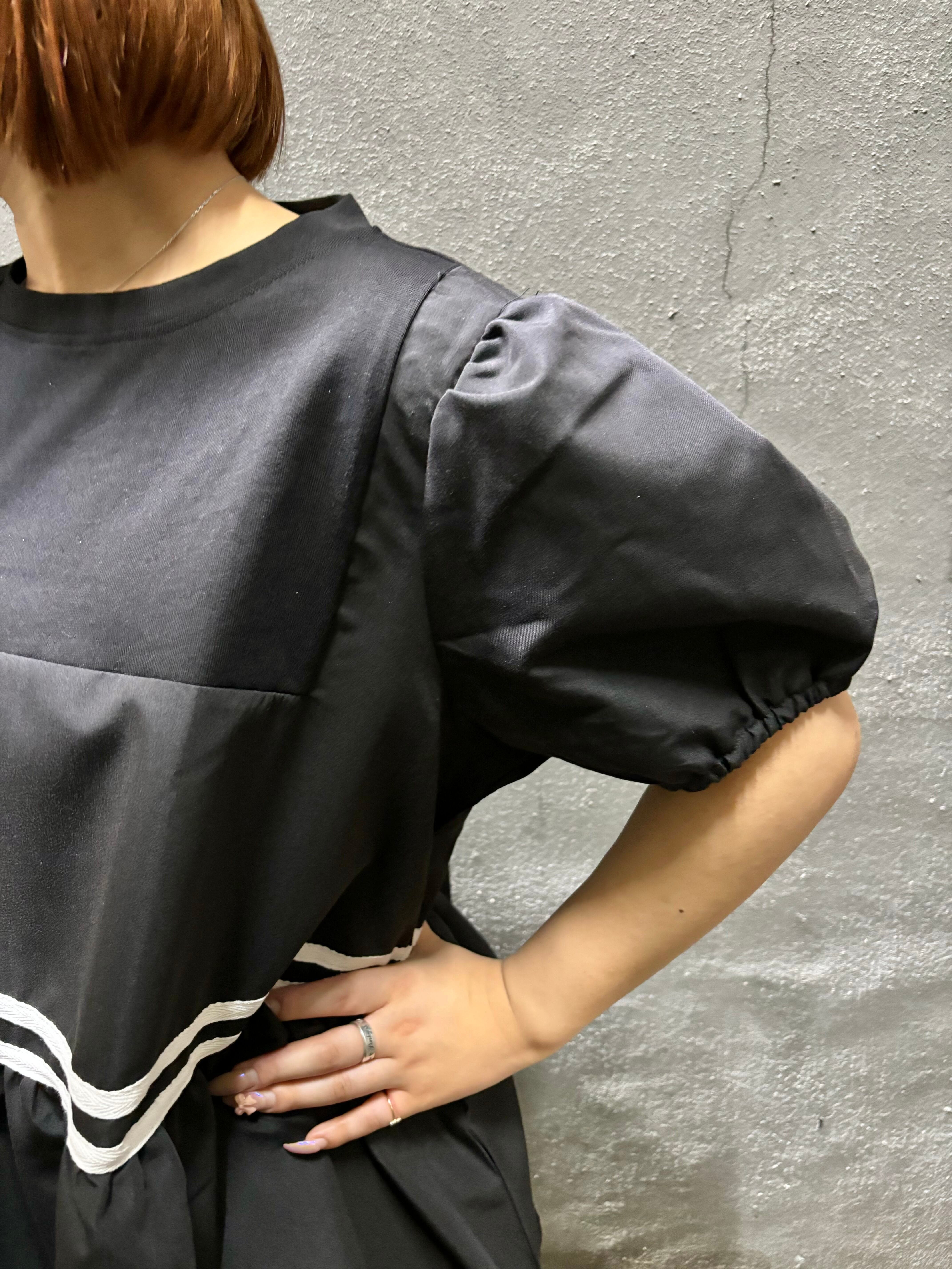 tiered gather line change design tops トップス ギャザー 異素材切替 ライン入り ブラック 黒