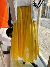 スタイリッシュなギャザーデザインとカラフルな色合いが特徴のロングスカート!