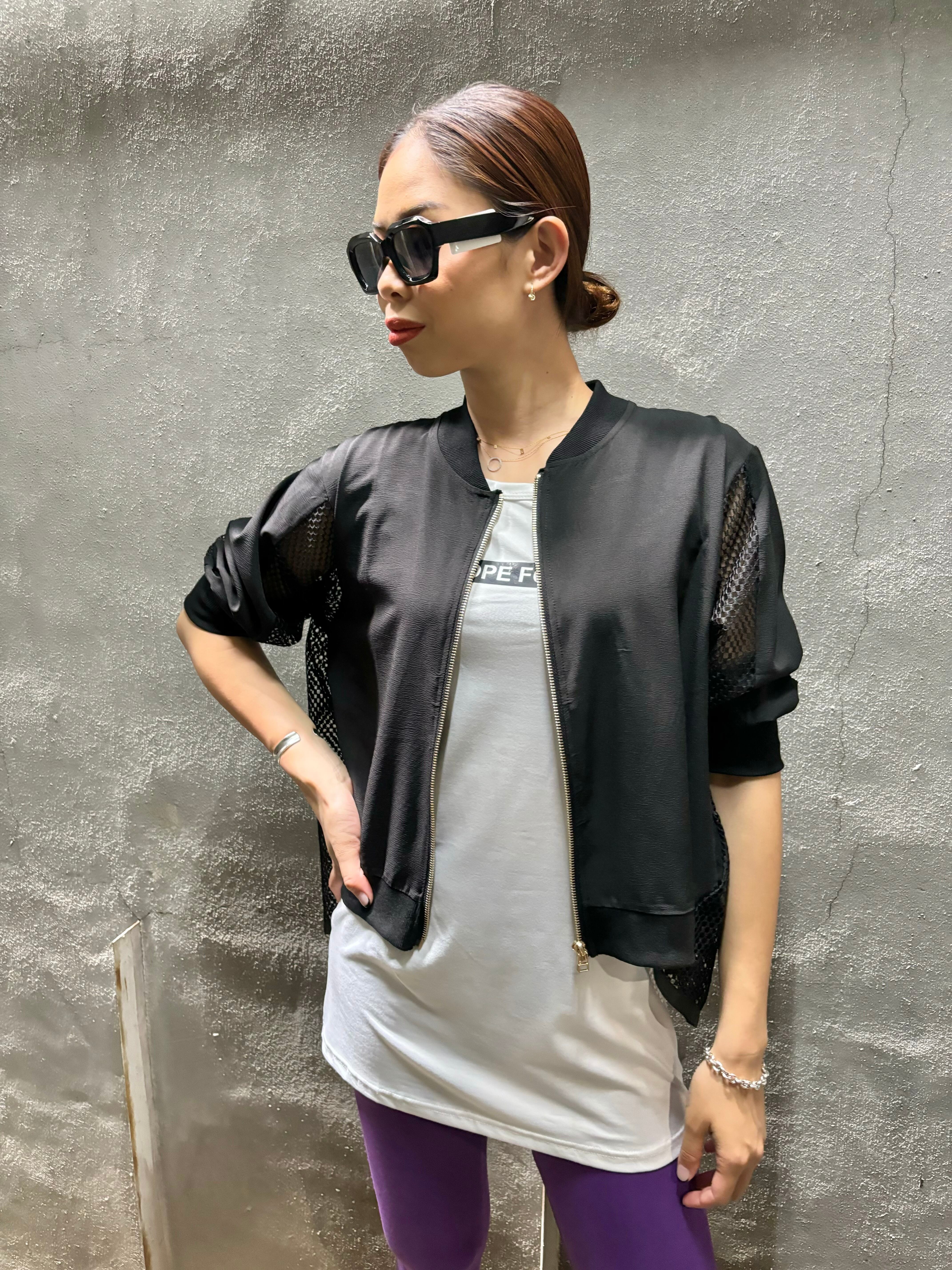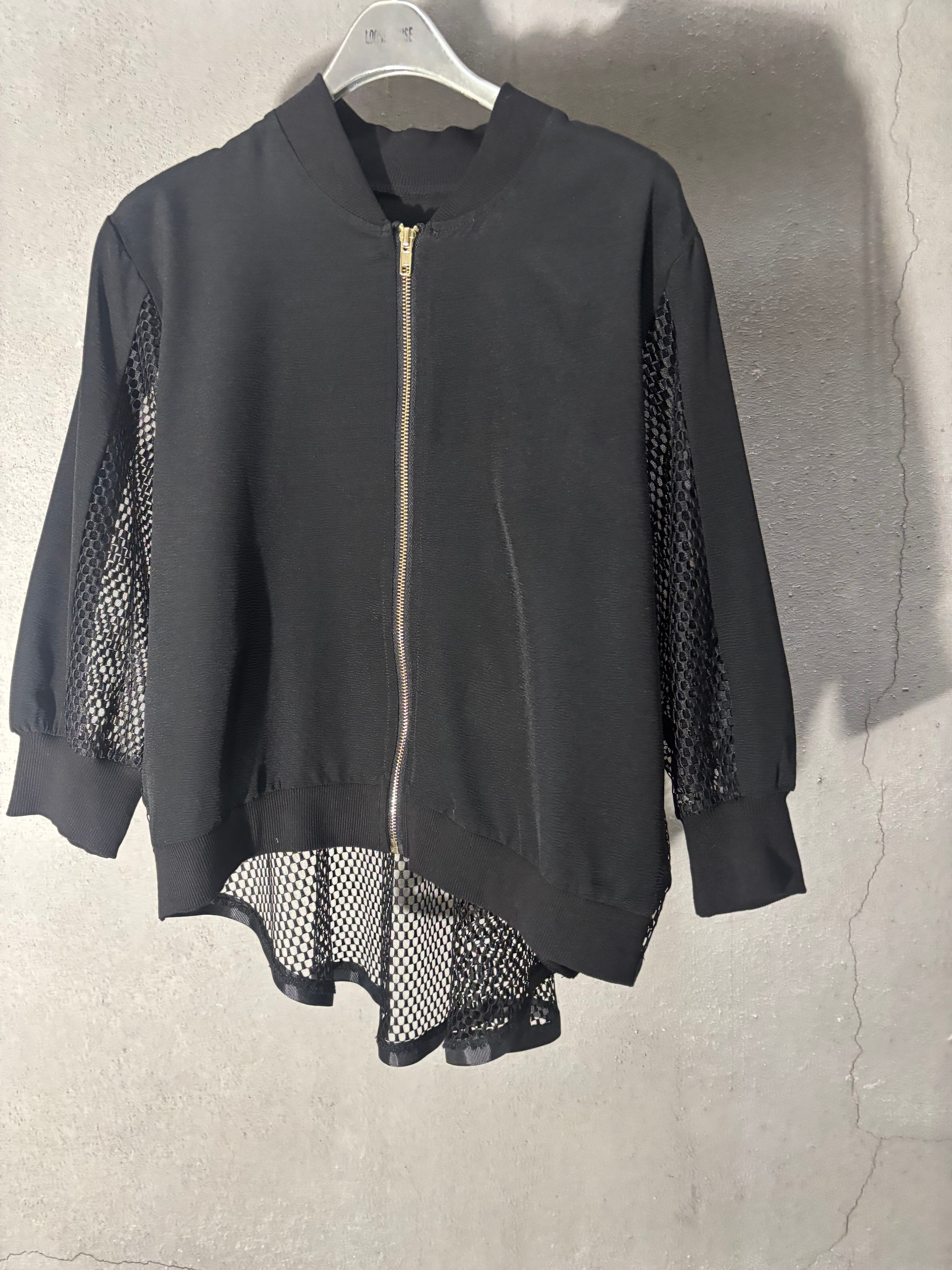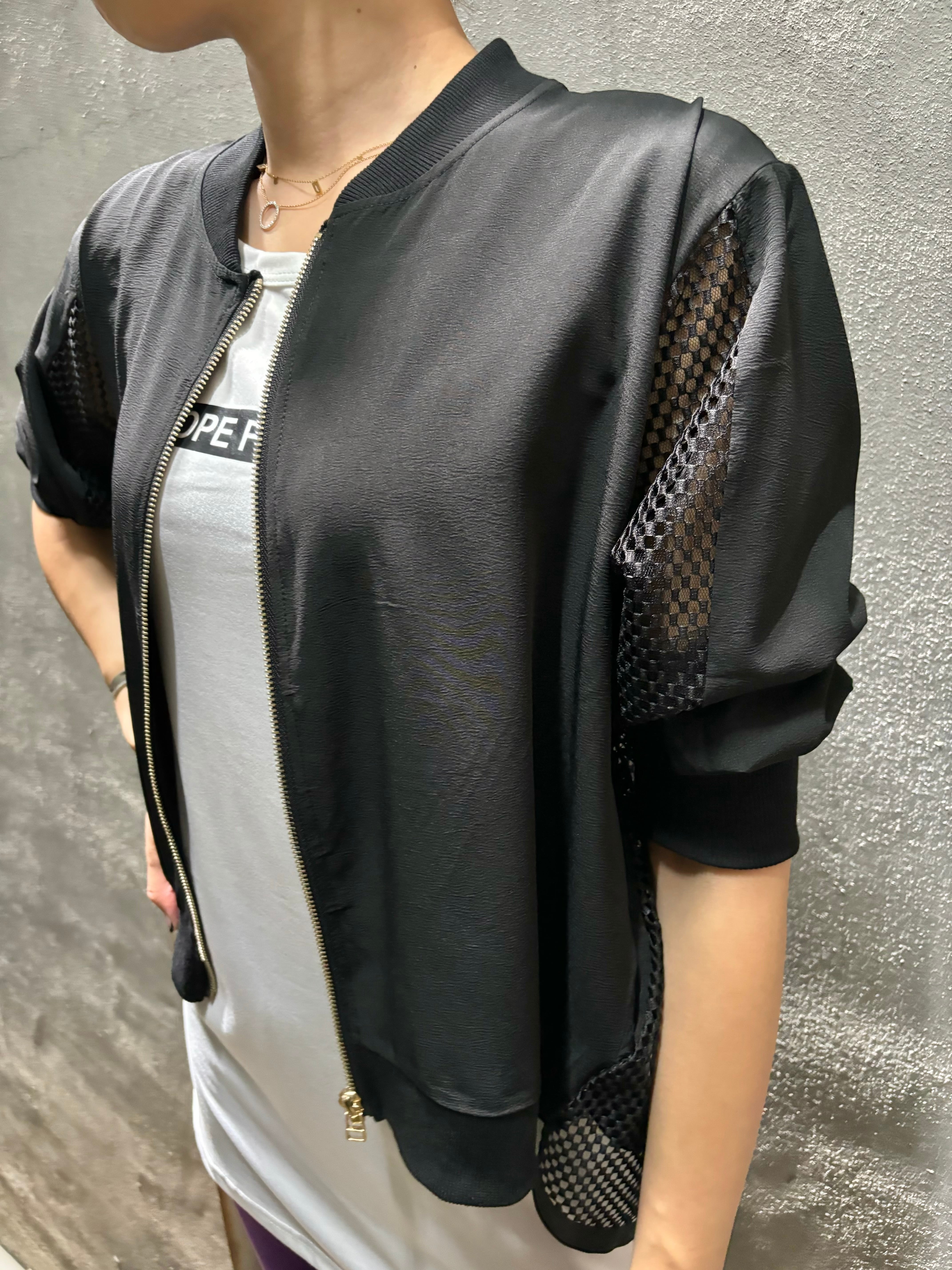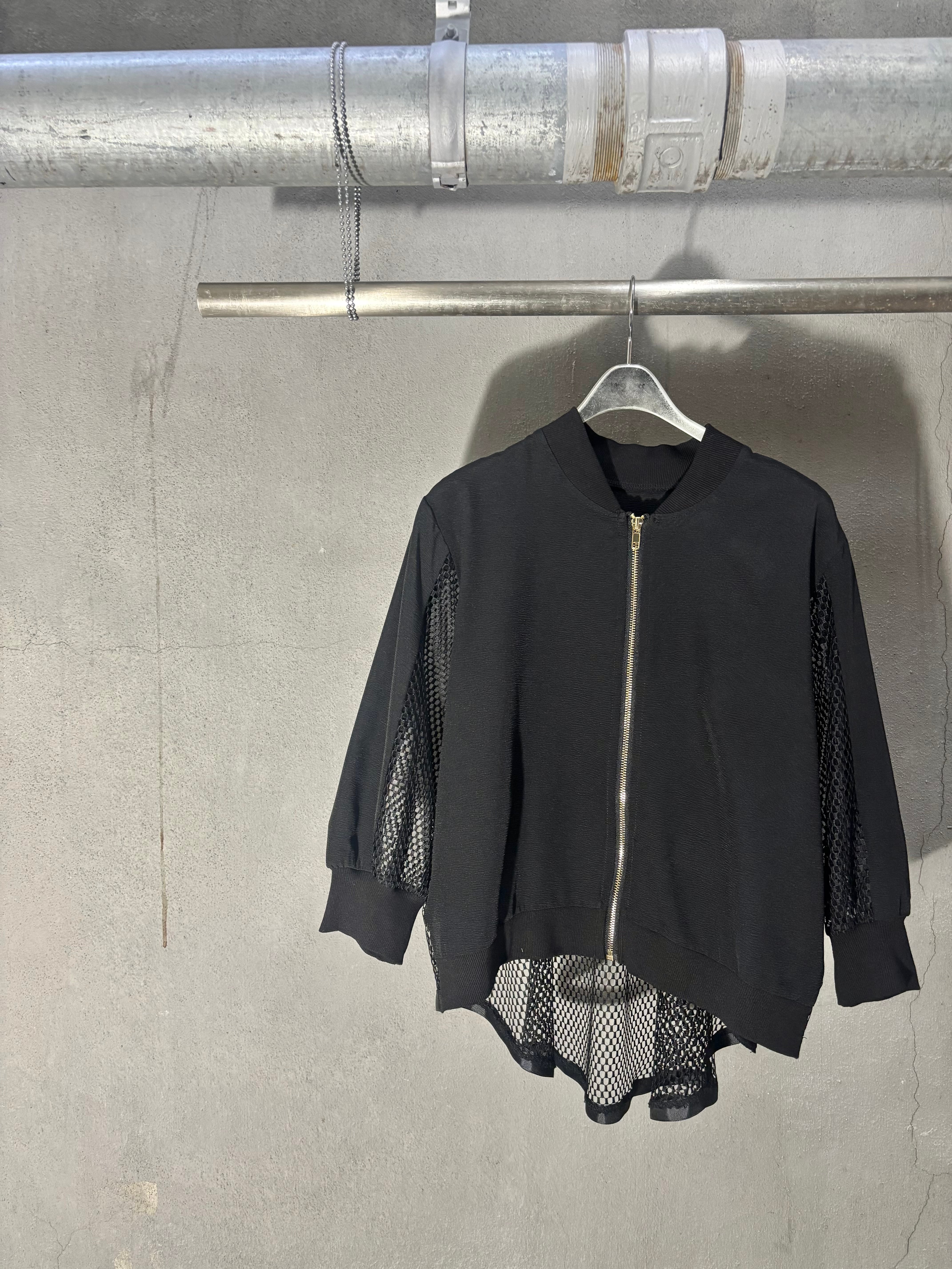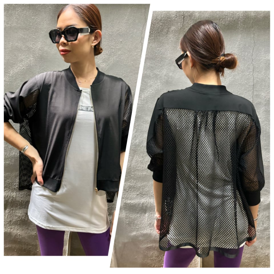 mesh back × chiffon flare design blouson ブルゾン メッシュ シフォン 異素材切替 白 黒