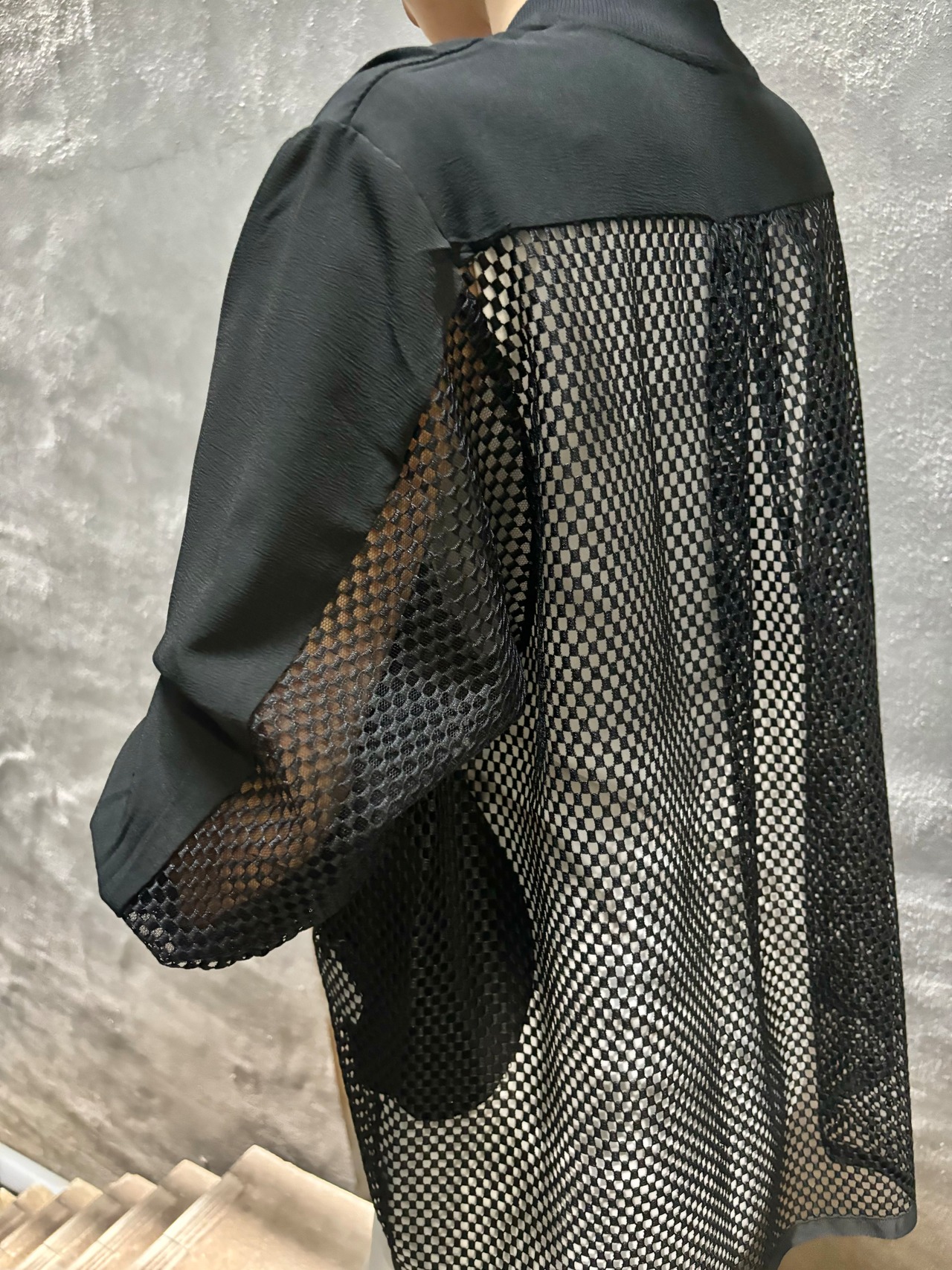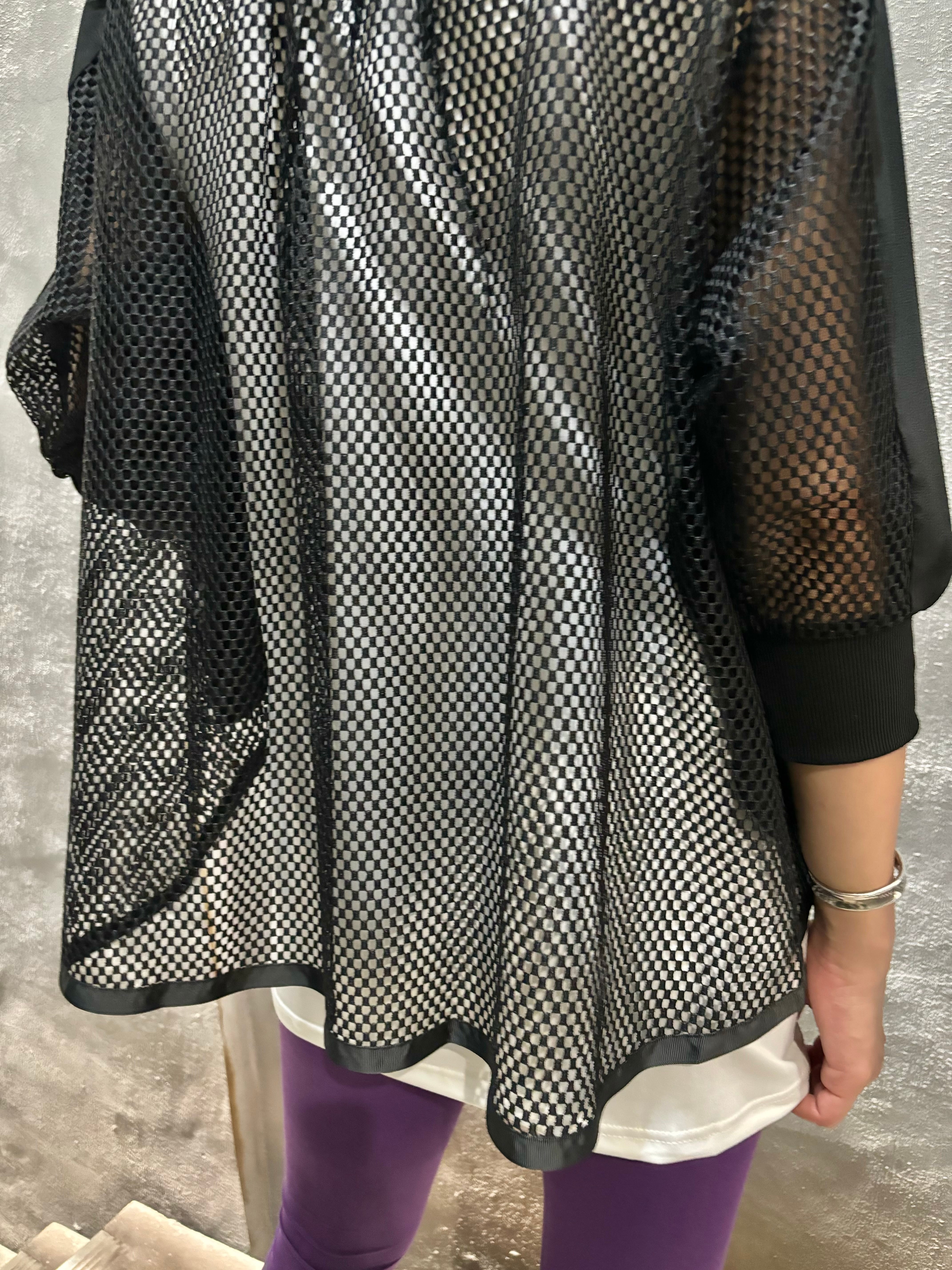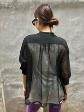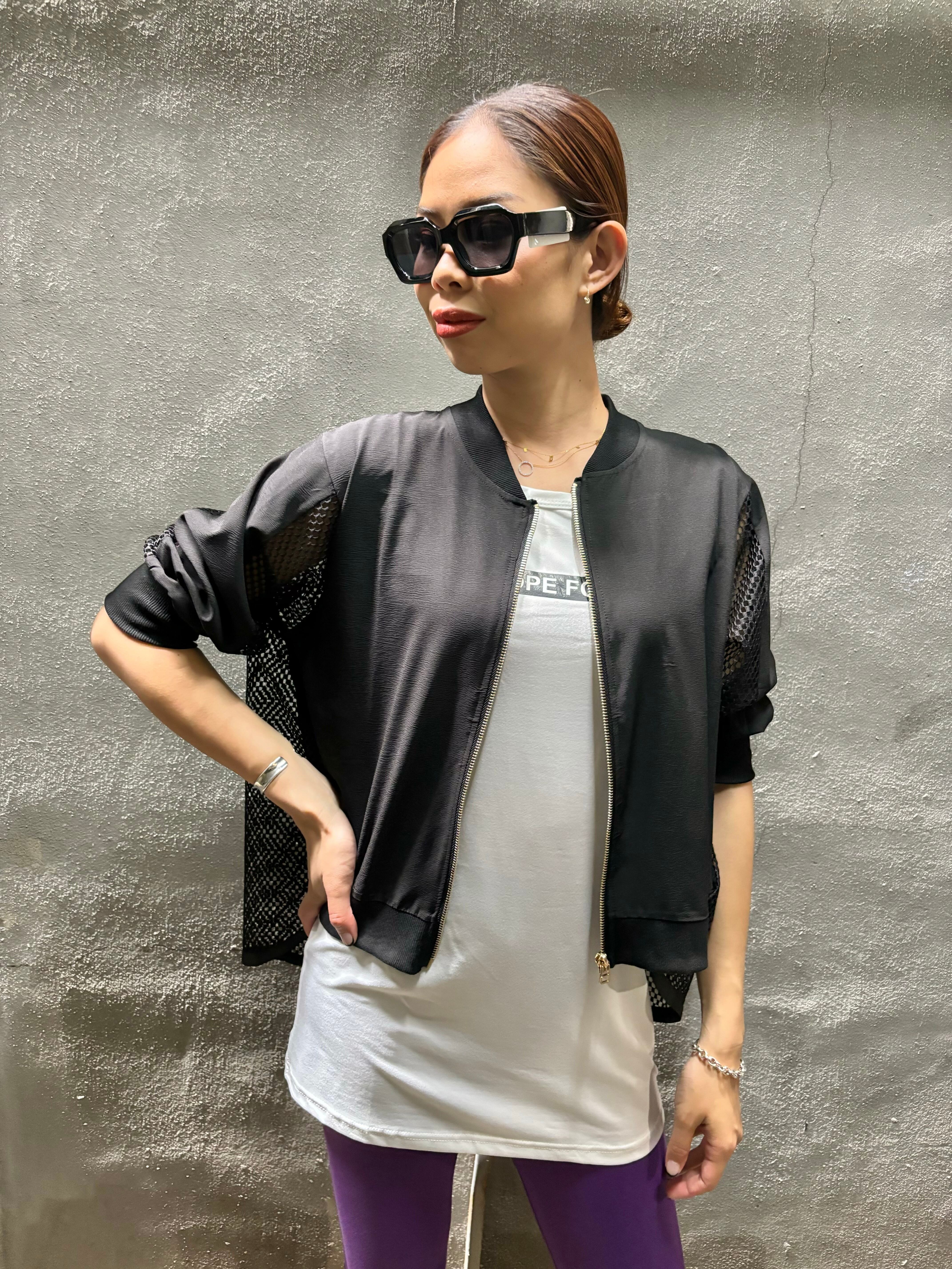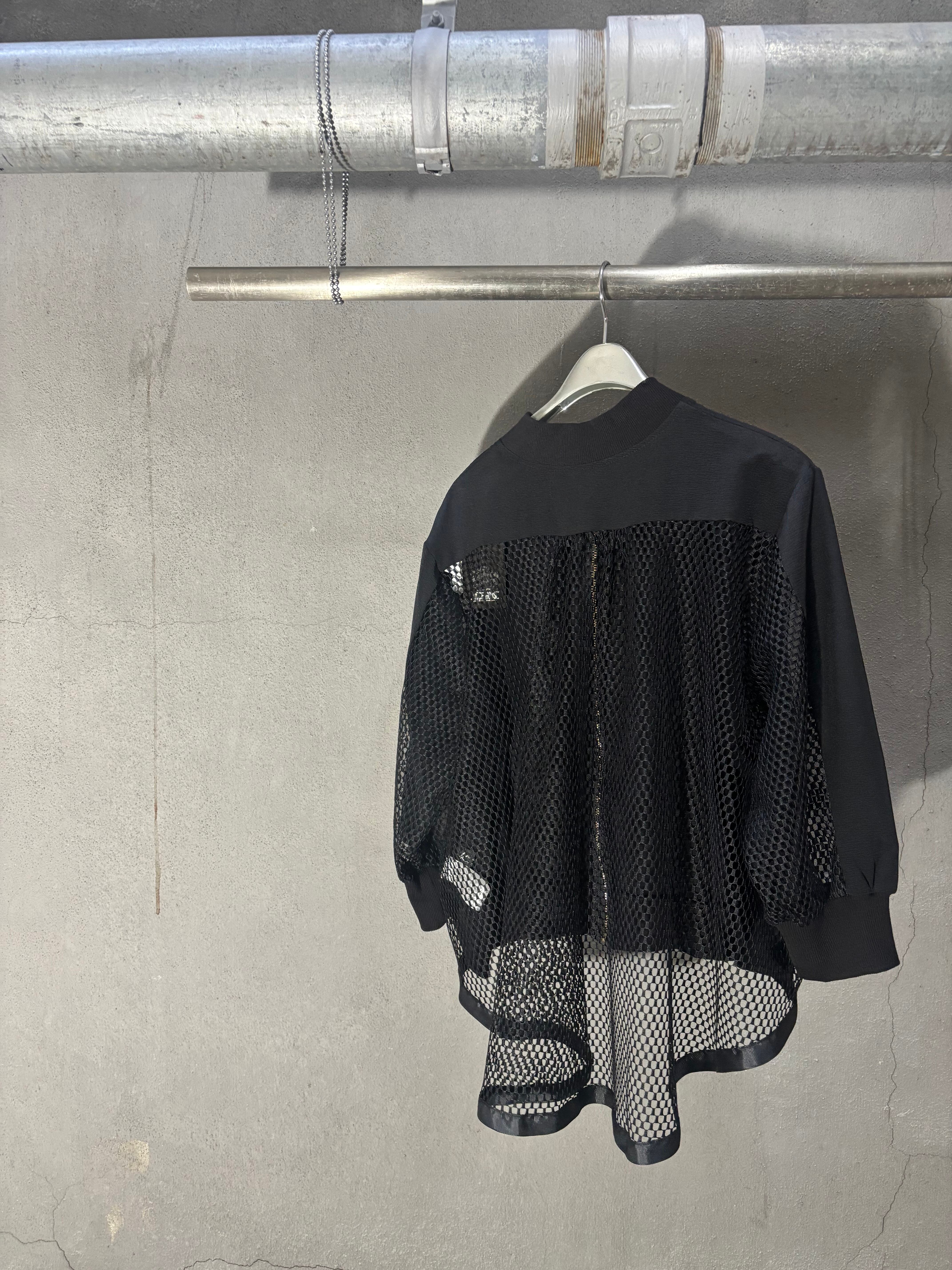 mesh back × chiffon flare design blouson ブルゾン メッシュ シフォン 異素材切替 白 黒