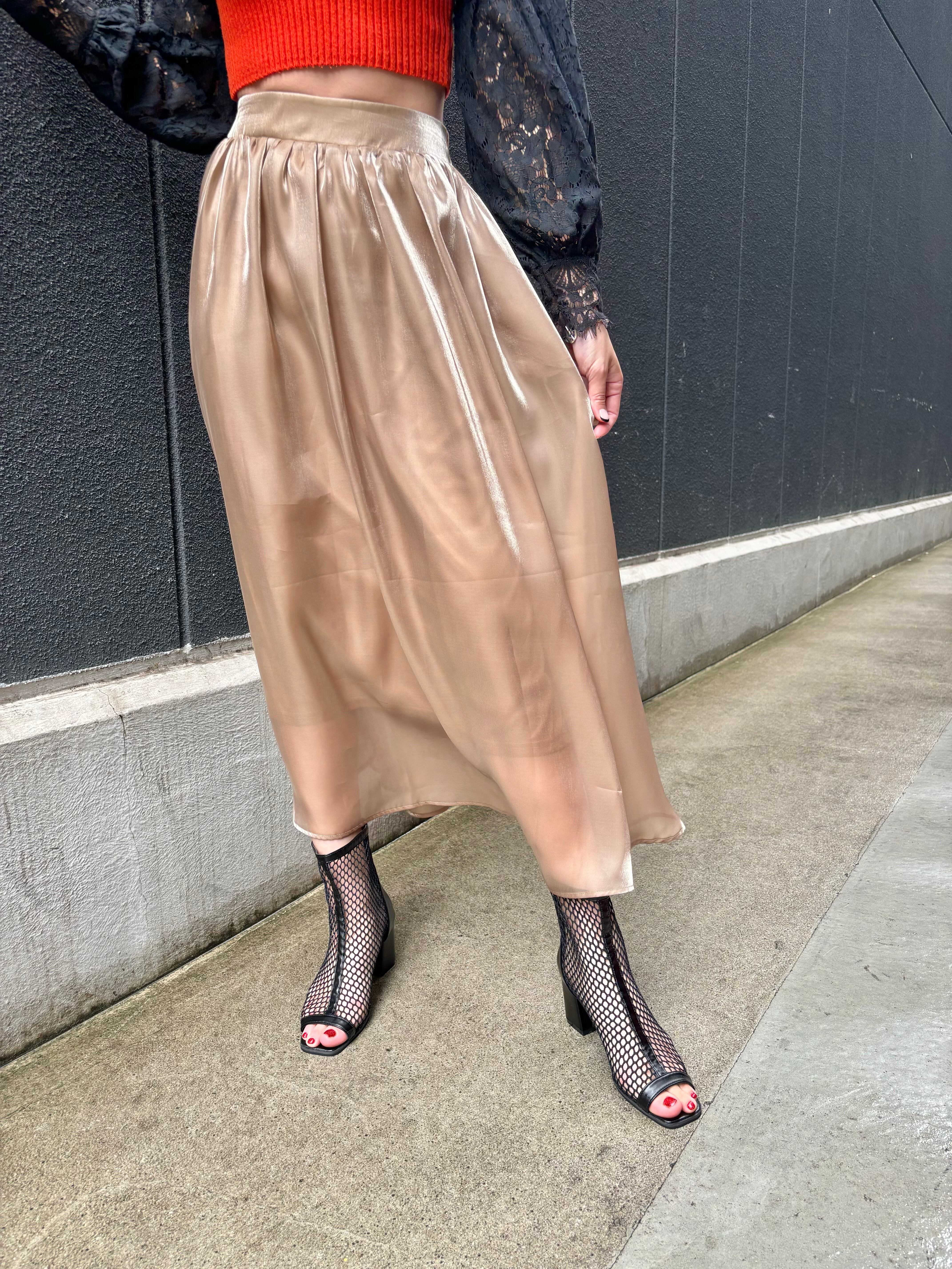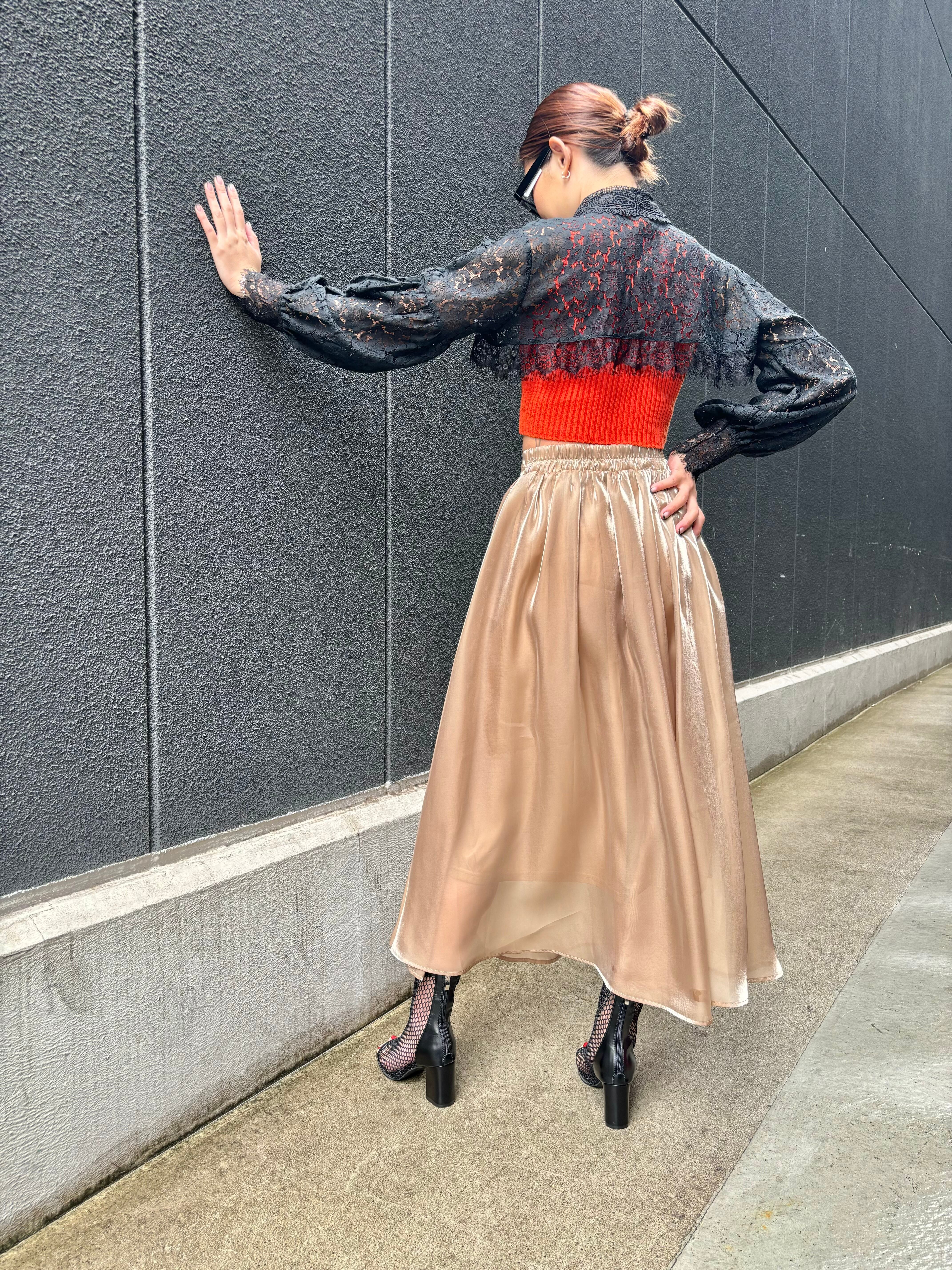 オーガンジー素材の輝きが美しい、シャイニーなフレアスカート♡
