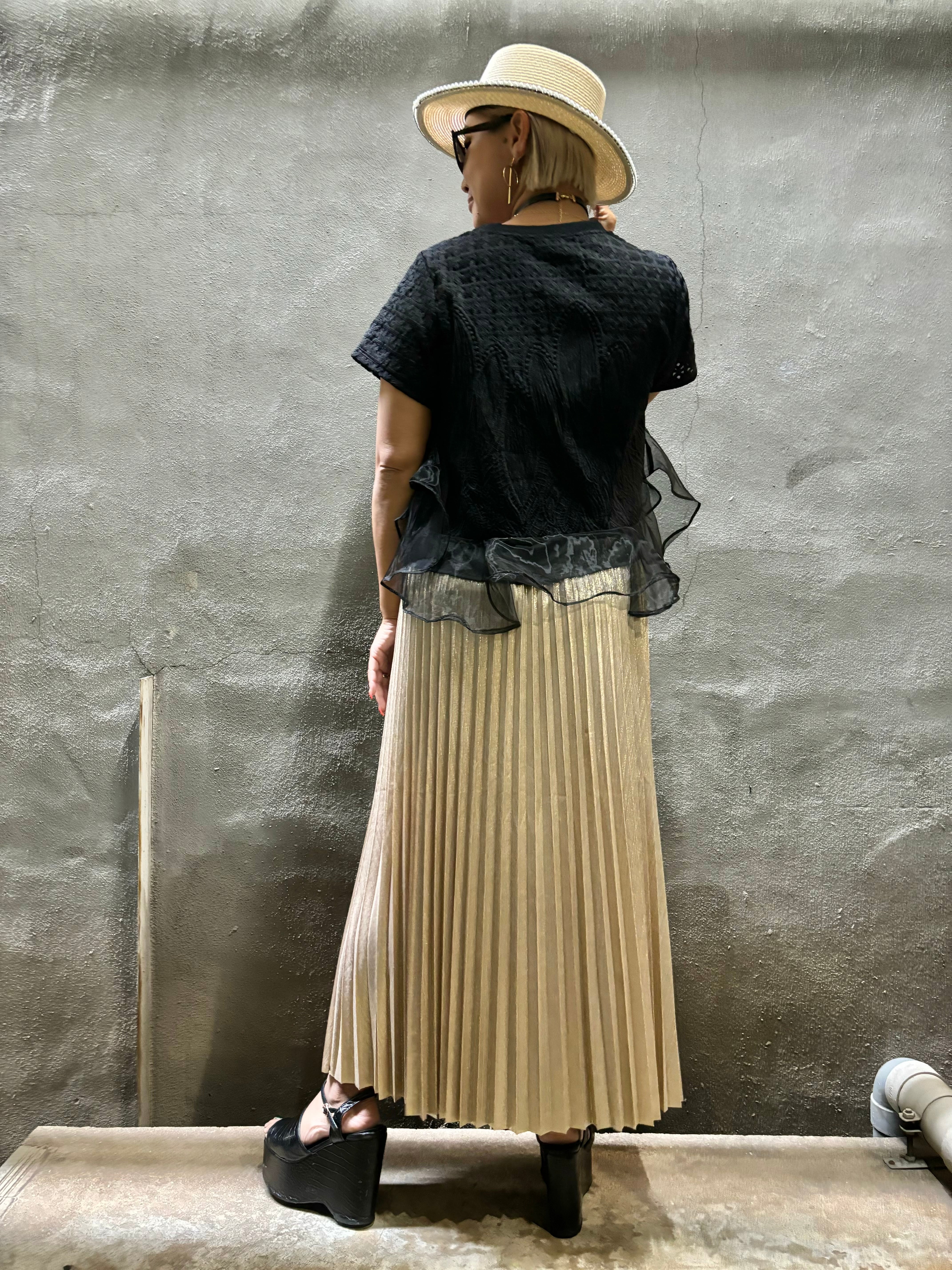 metallic pleats design skirt スカート メタリック プリーツ ゴムウエスト