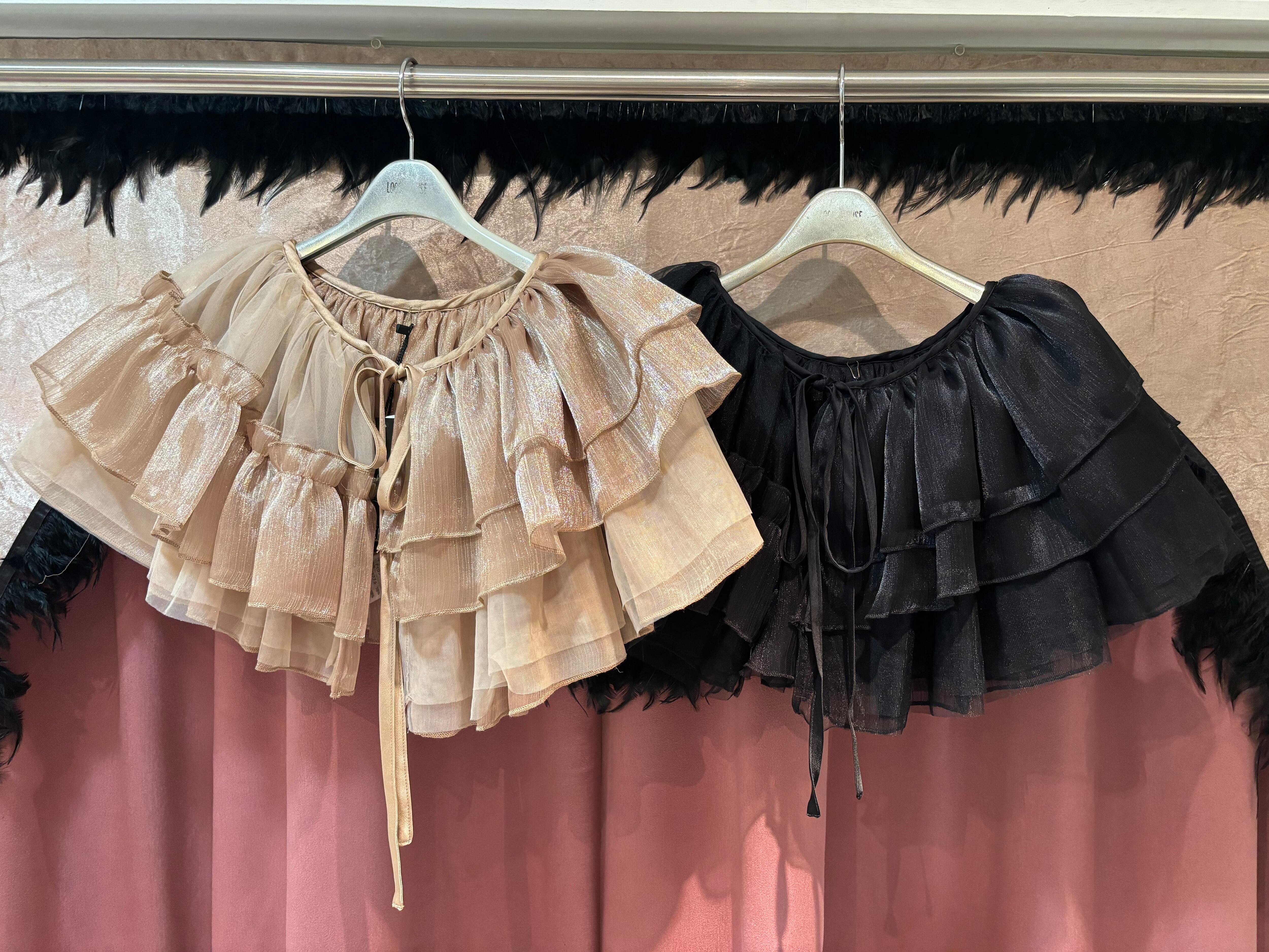 輝くオーガンジーとフリルが織り成す、上品でロマンティックなトップス♡
