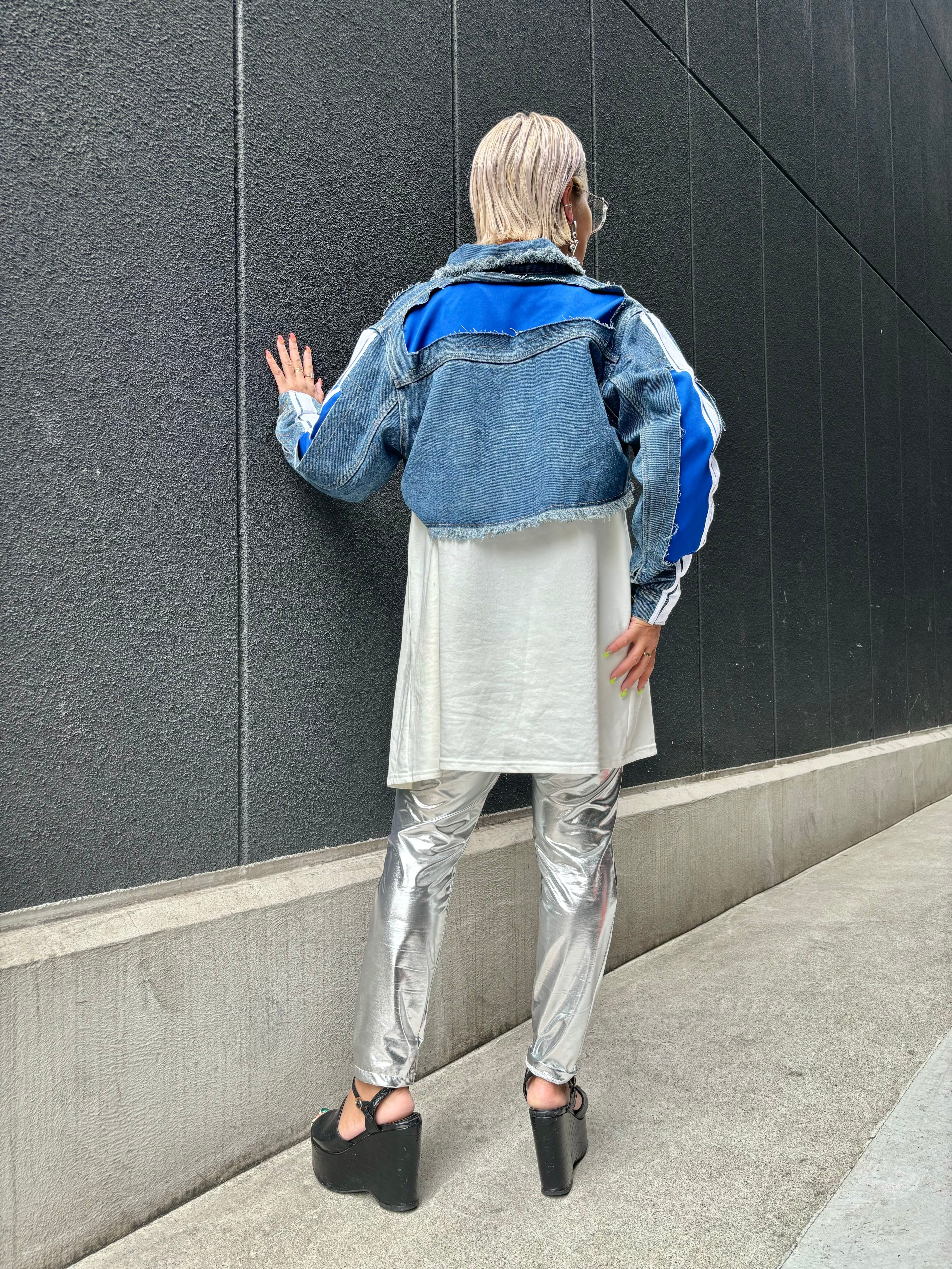 ショート丈でスタイリッシュな印象を与える同アイテムは、リメイクされたデザインが特徴。ブルーのカラーリングにラインが施されており、遊び心満載です☆