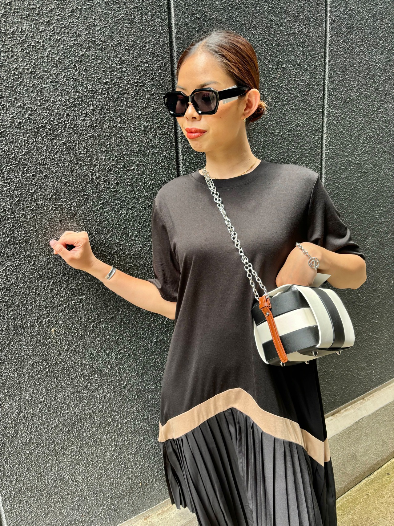 bi-color pleats change design one-piece ワンピース ワンピ プリーツ バイカラー 切替デザイン