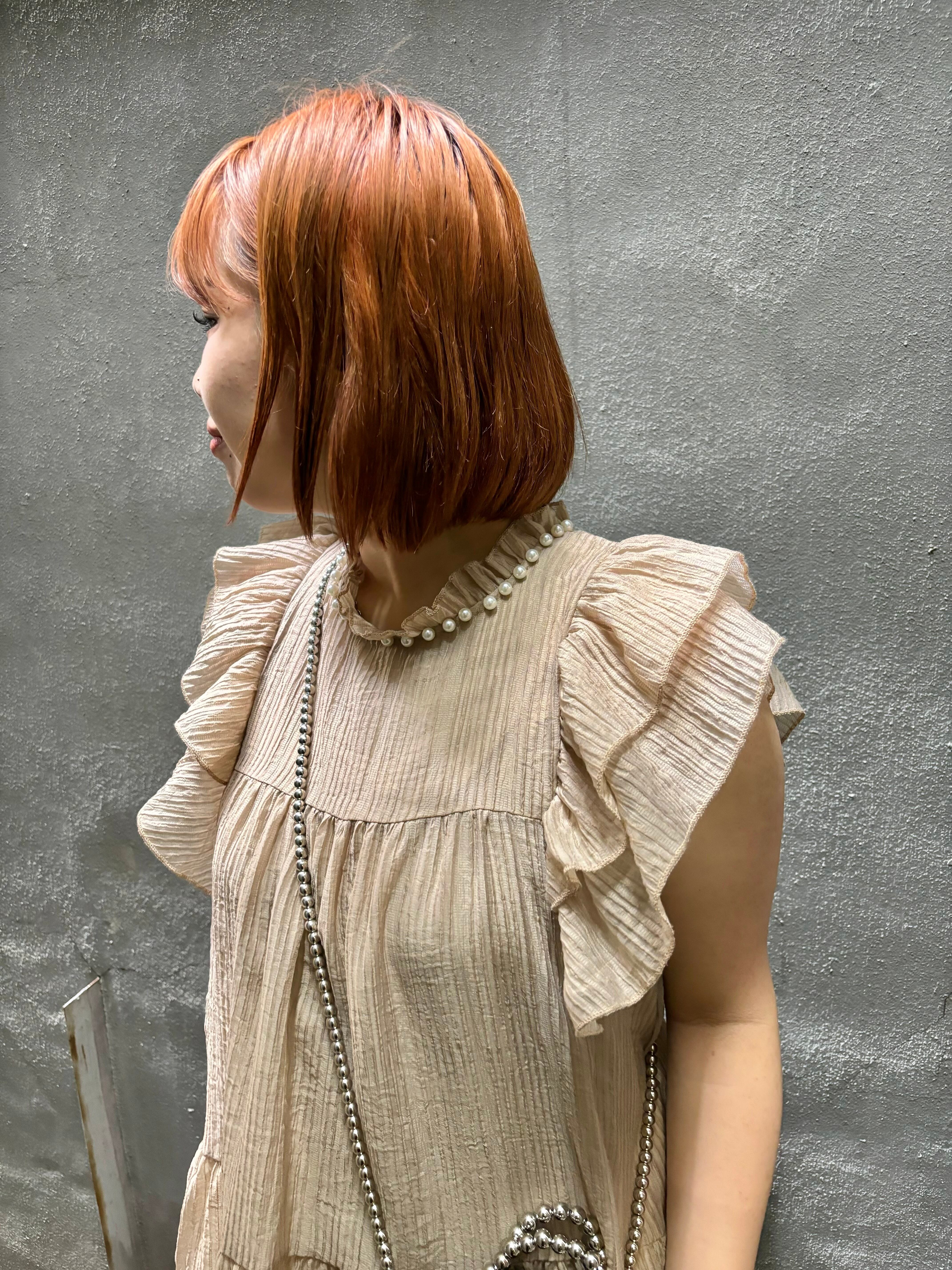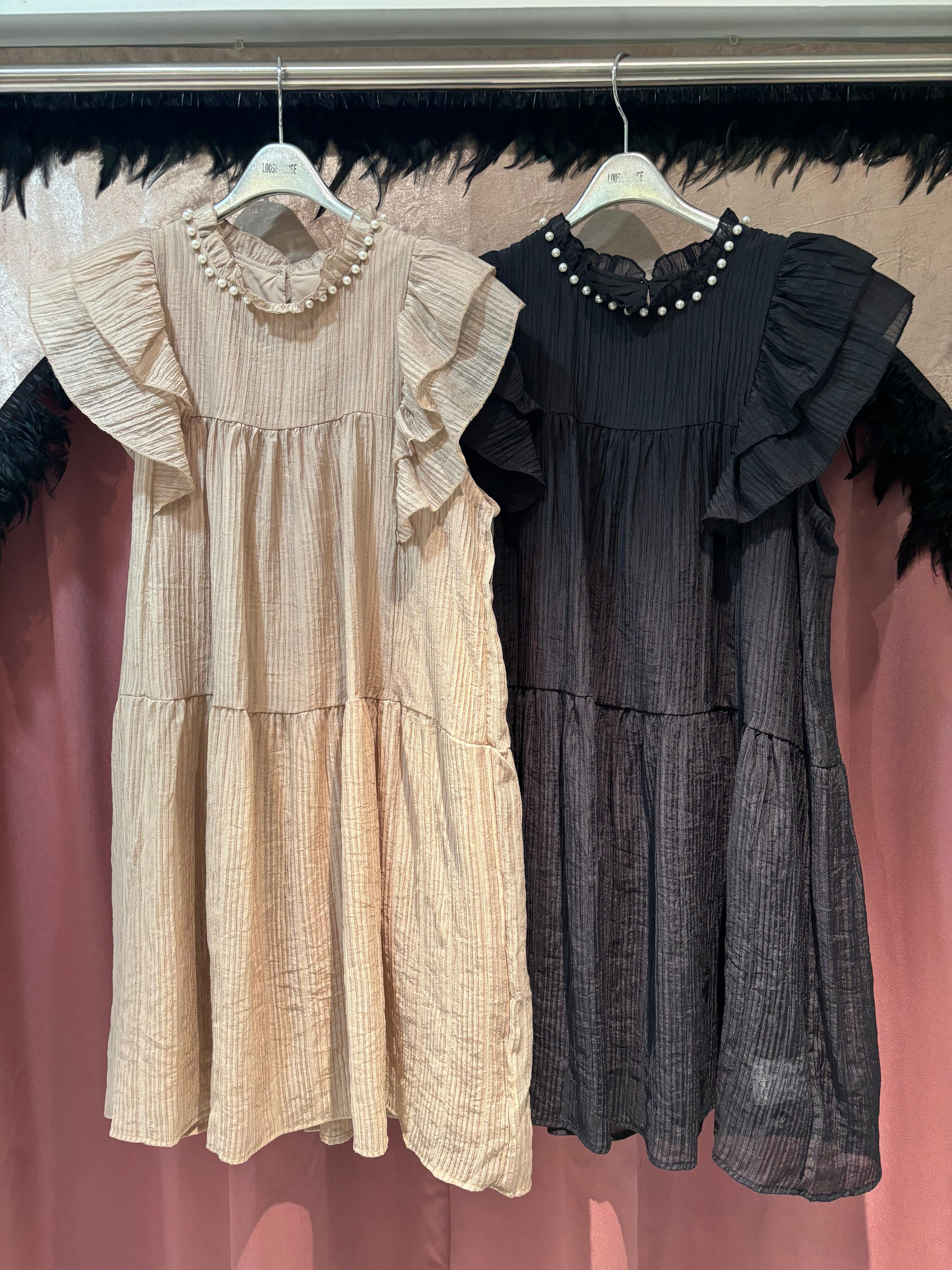 ripple chiffon pearl neck tiered design one-piece ワンピース ワンピ シフォン フリル パール