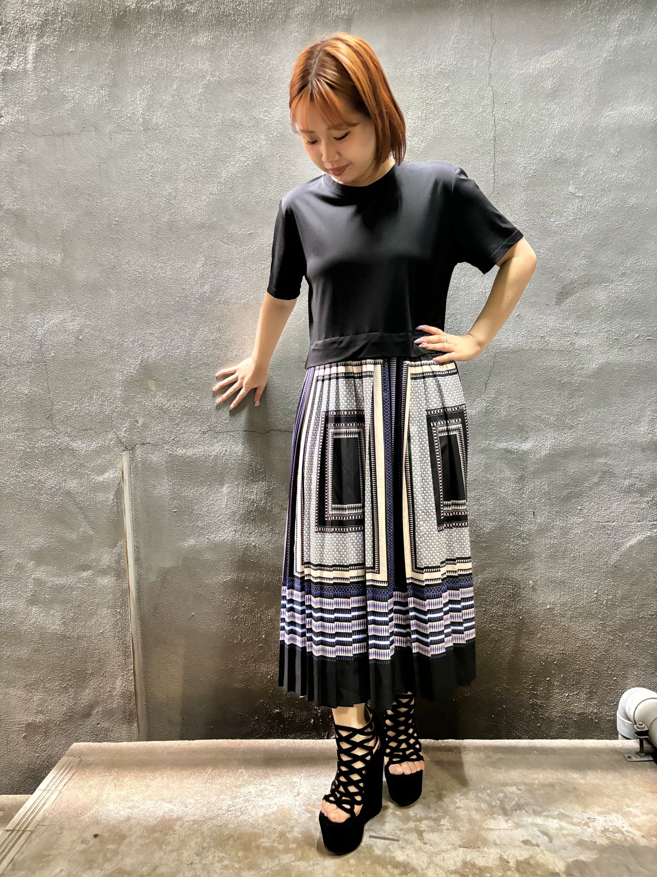 print pleats docking design one-piece ワンピース ワンピ 切替デザイン 柄ワンピ 半袖