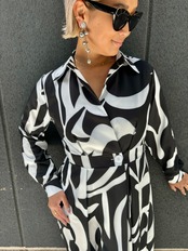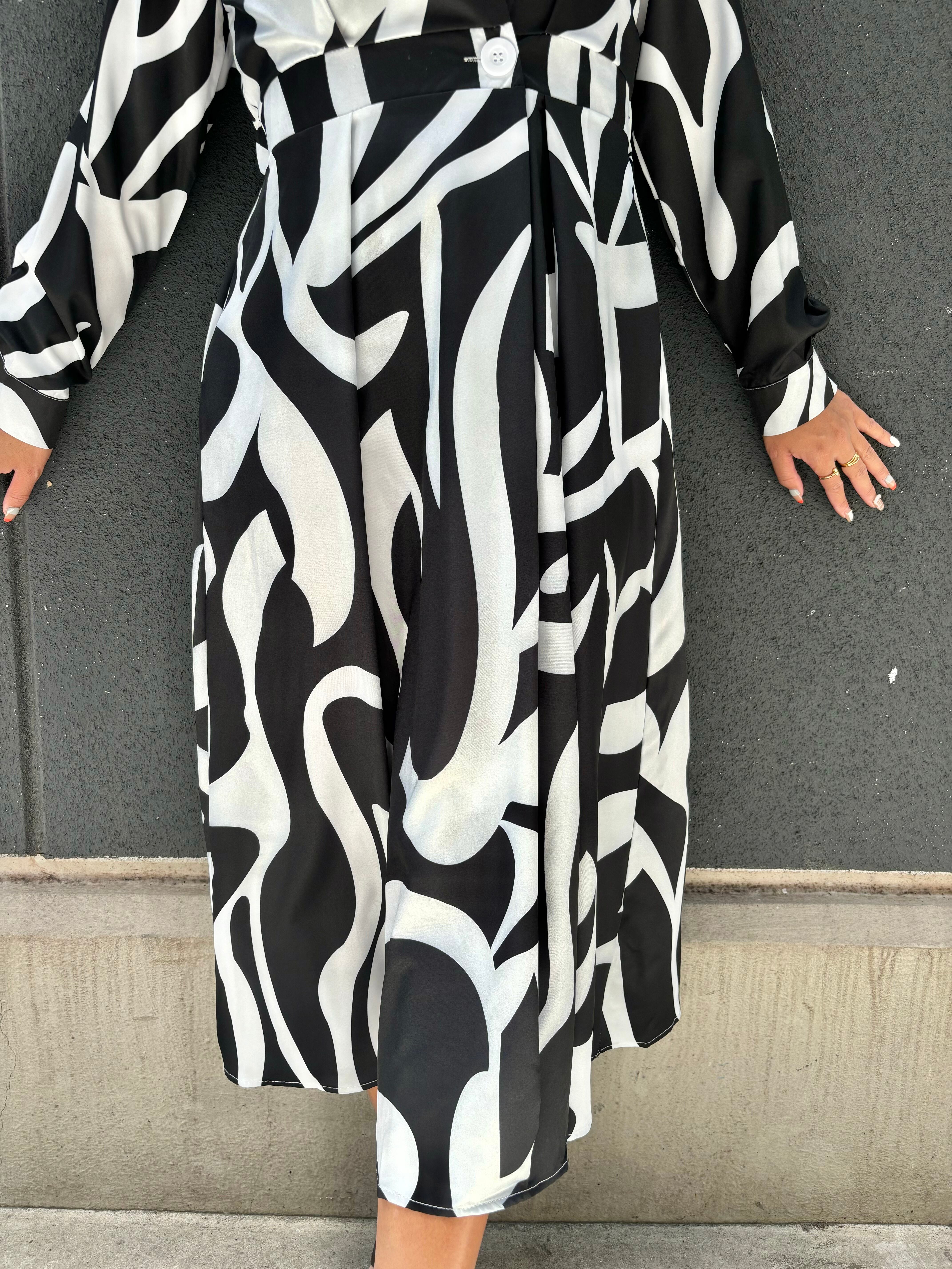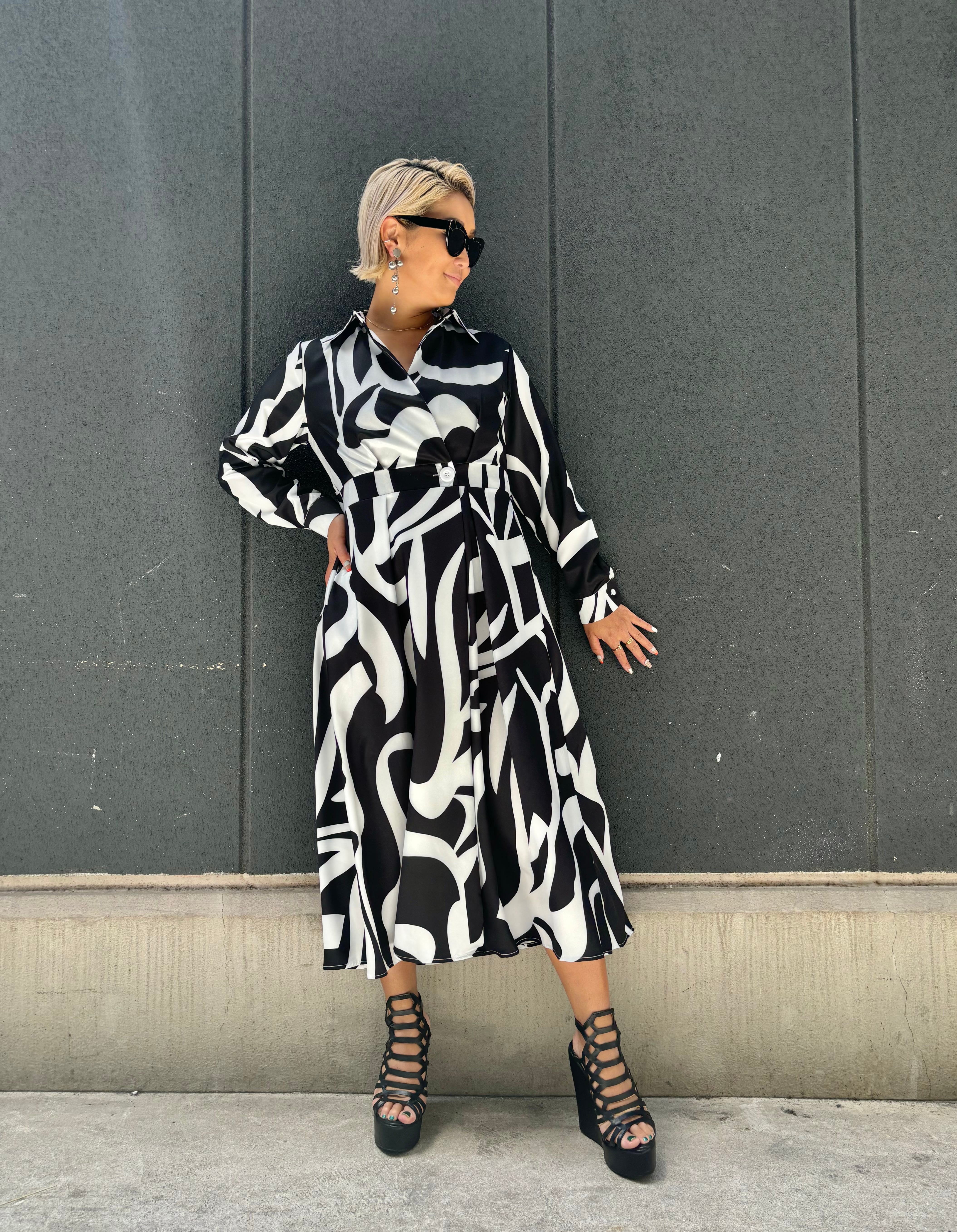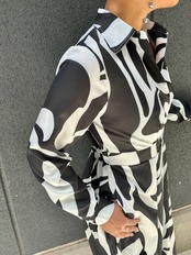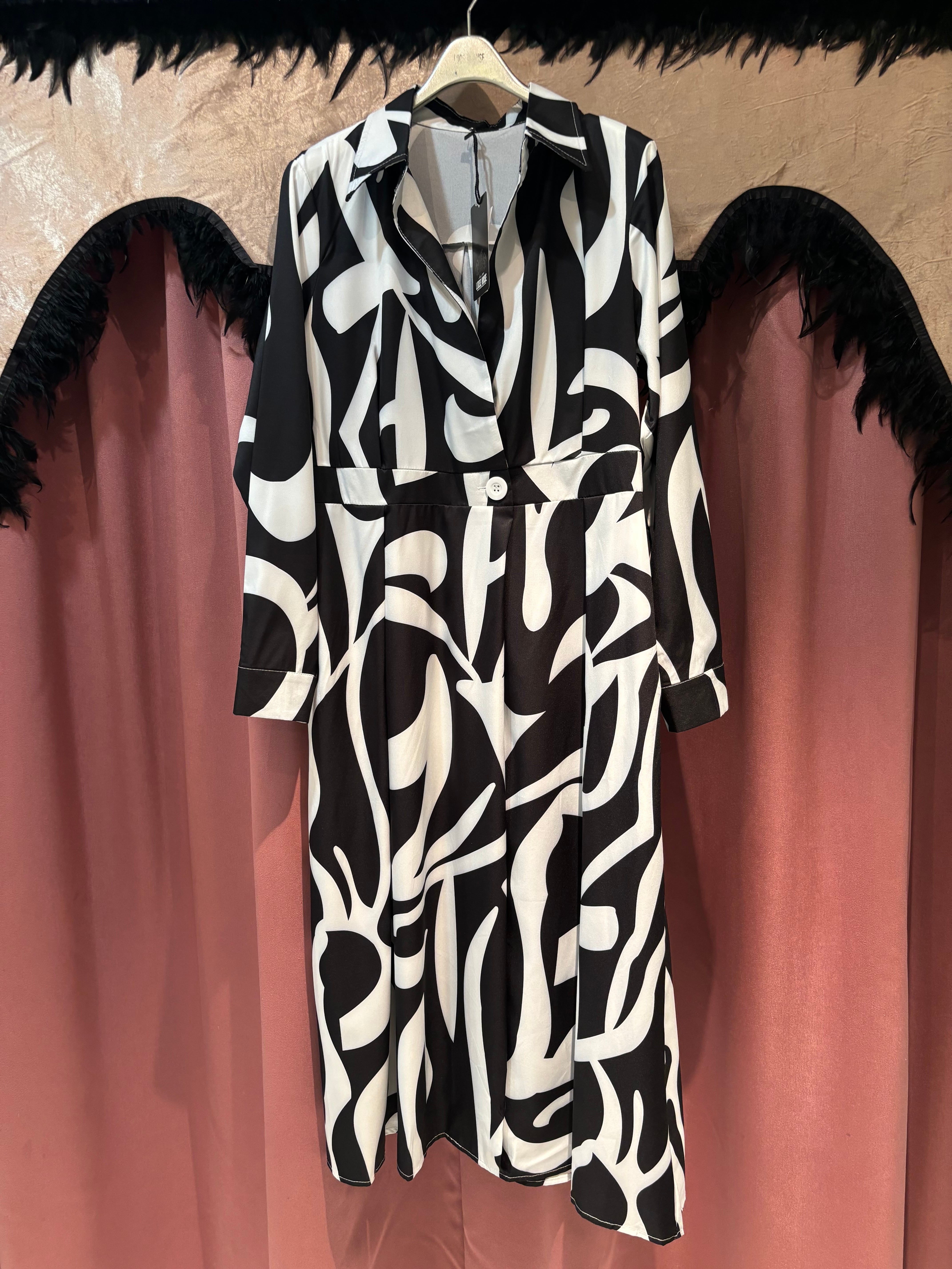 bi-color print 1button V-neck one-piece ワンピース カシュクール風 襟付き バイカラー 白黒 きれいめ