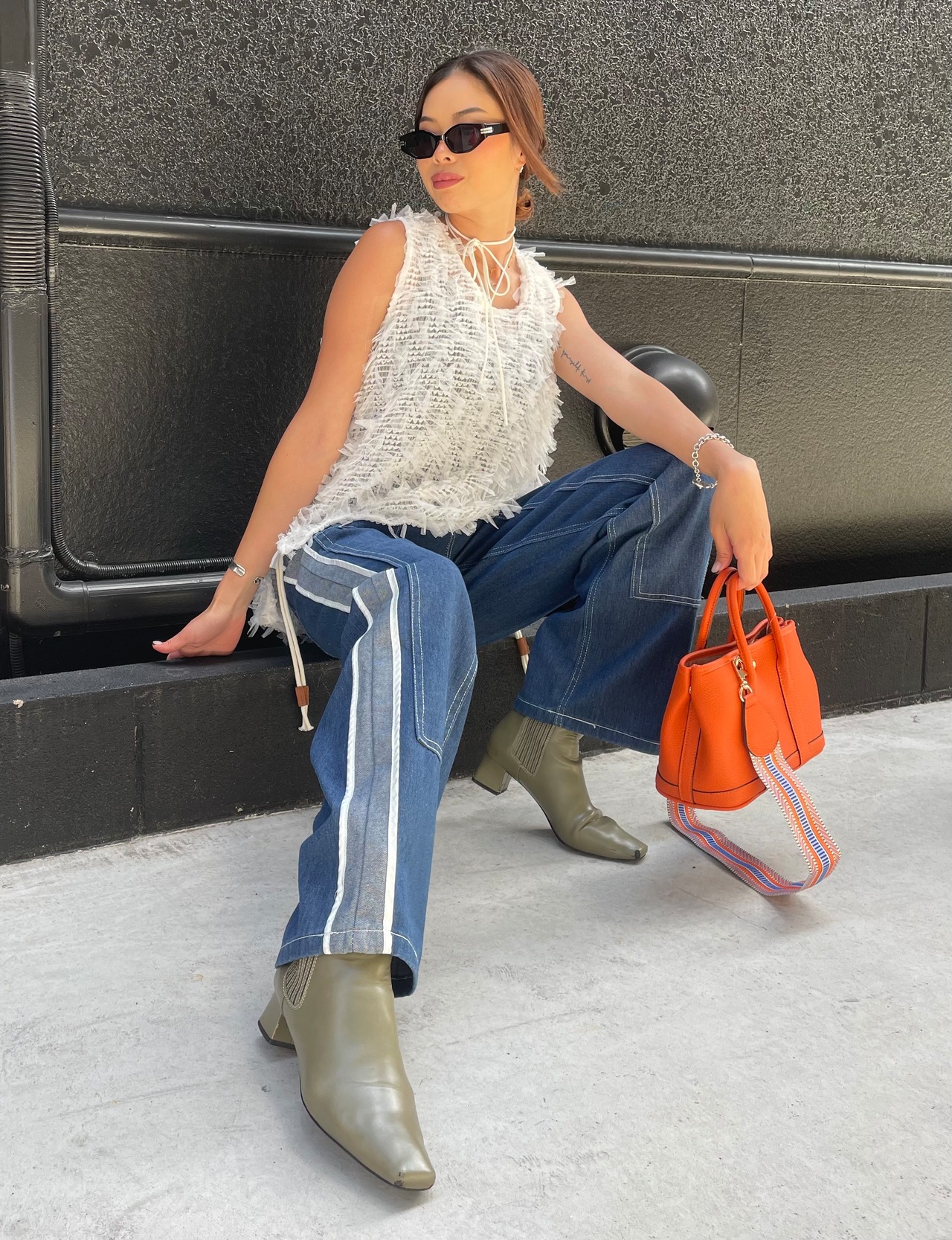 ステッチが施された遊び心満点のデニムパンツが登場しました!