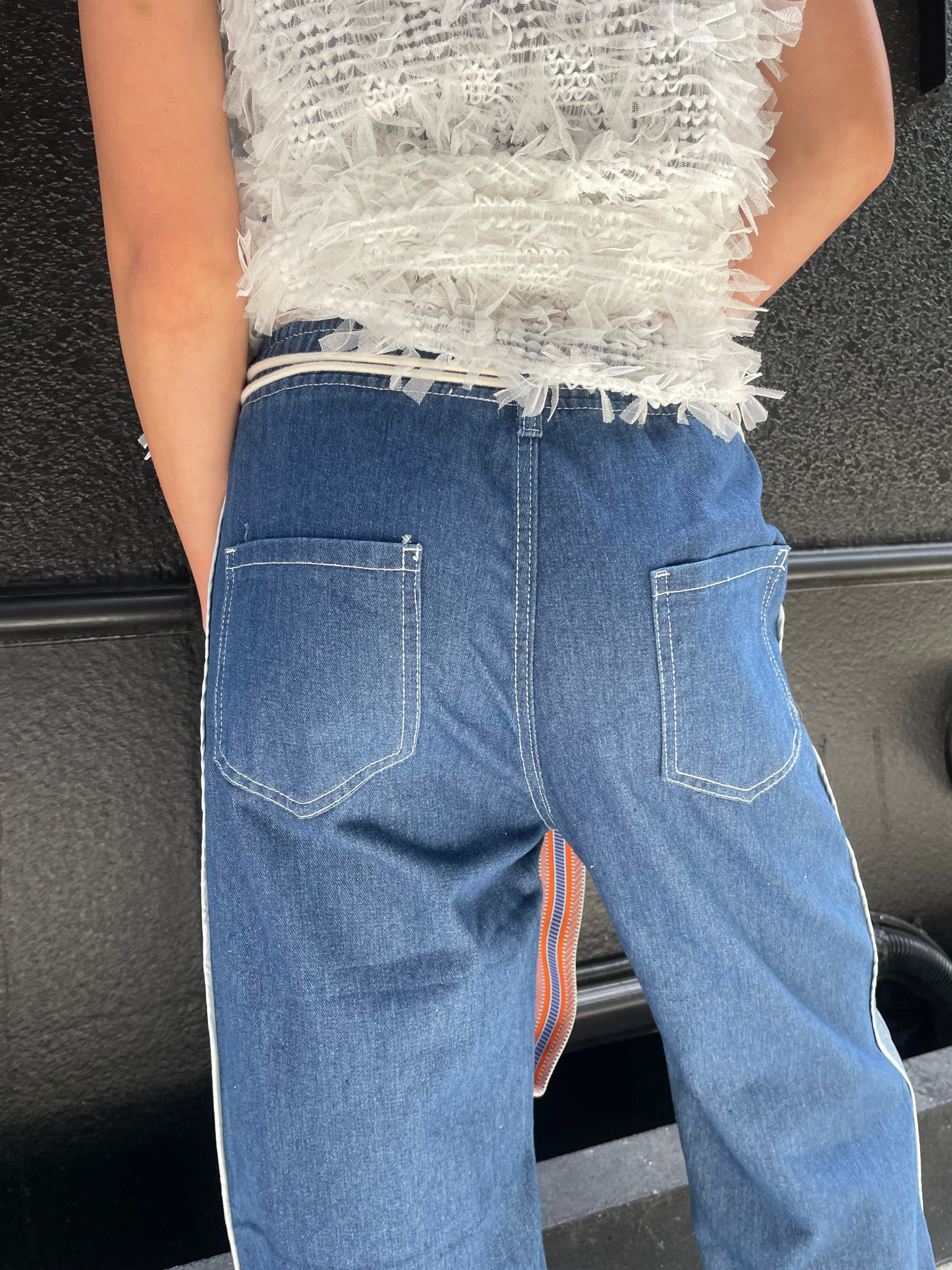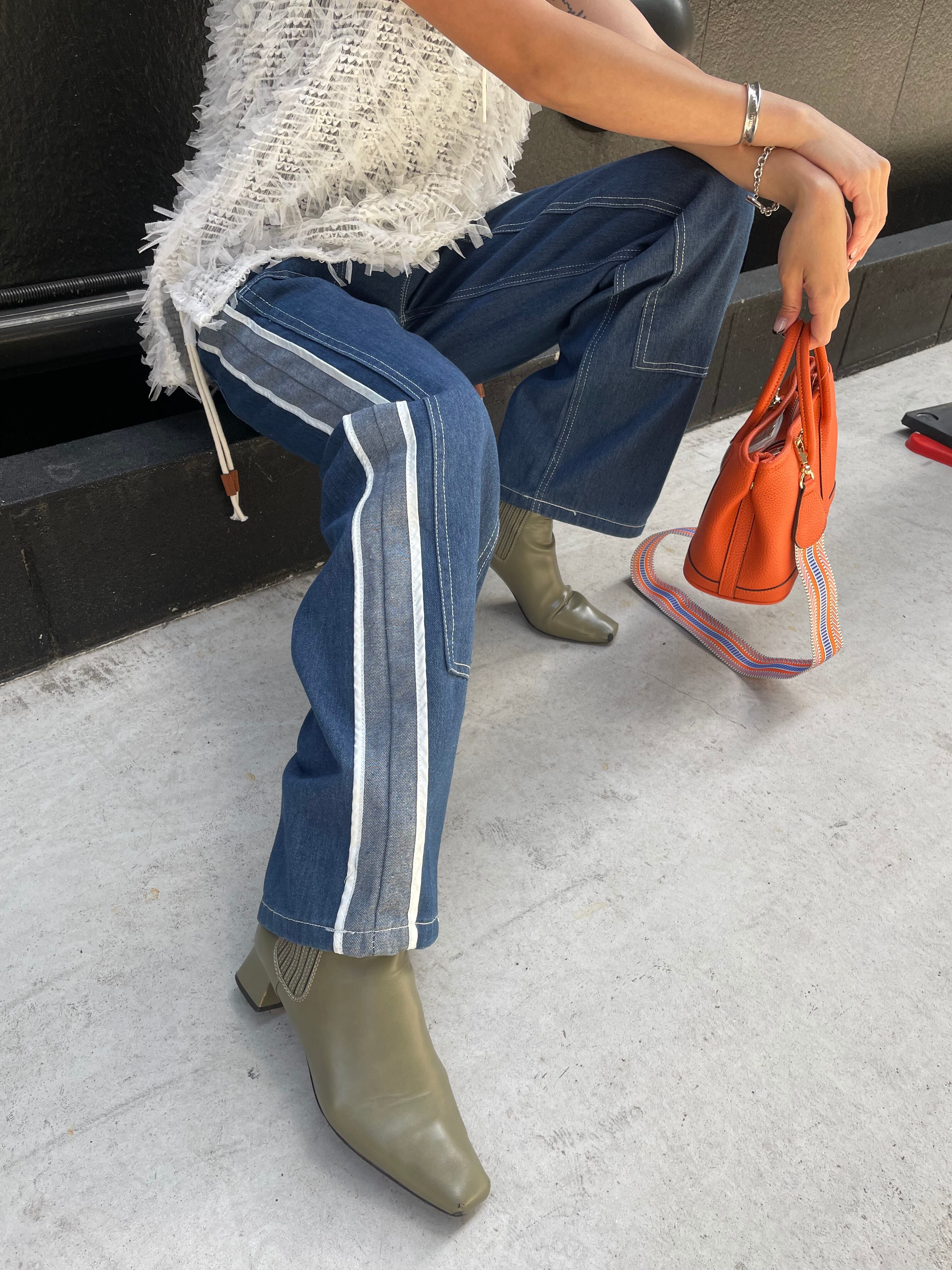 stitch change × rope belt design denim pants デニム パンツ ワイドパンツ ステッチ サイドライン ロープベルト
