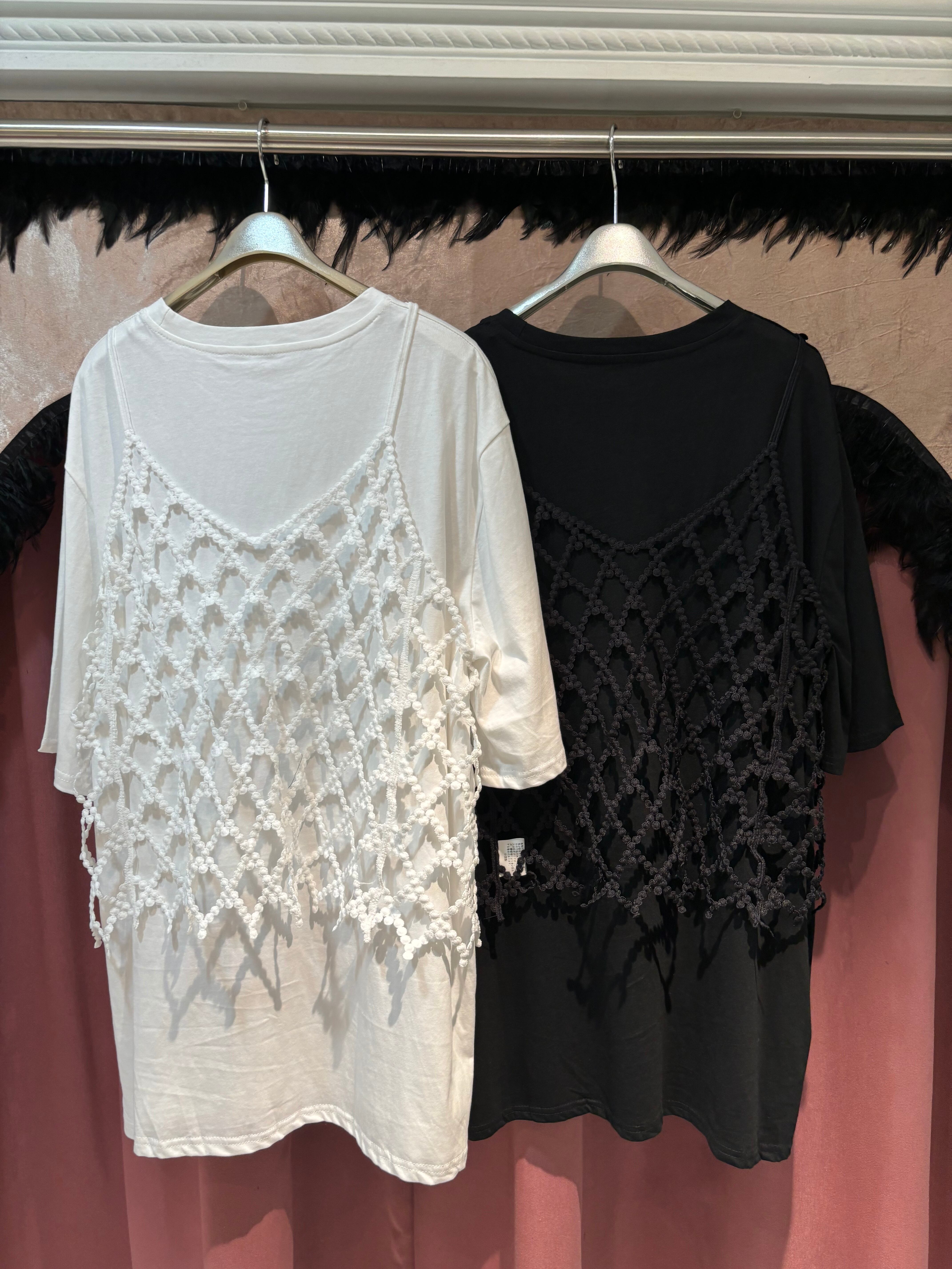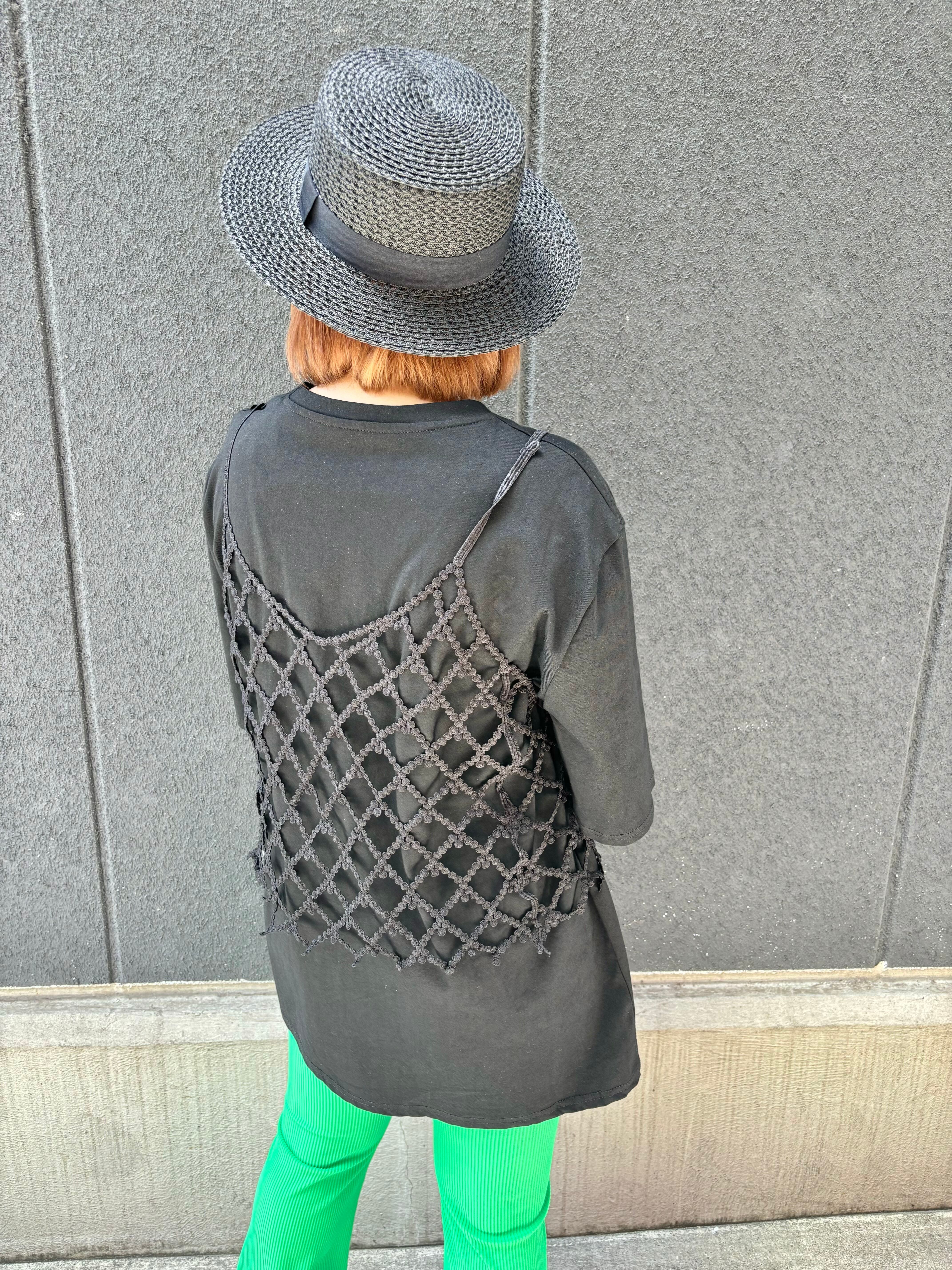 lace camisole × white T-shirt set tops Tシャツ キャミソール 2点セット レース 重ね着 着まわし