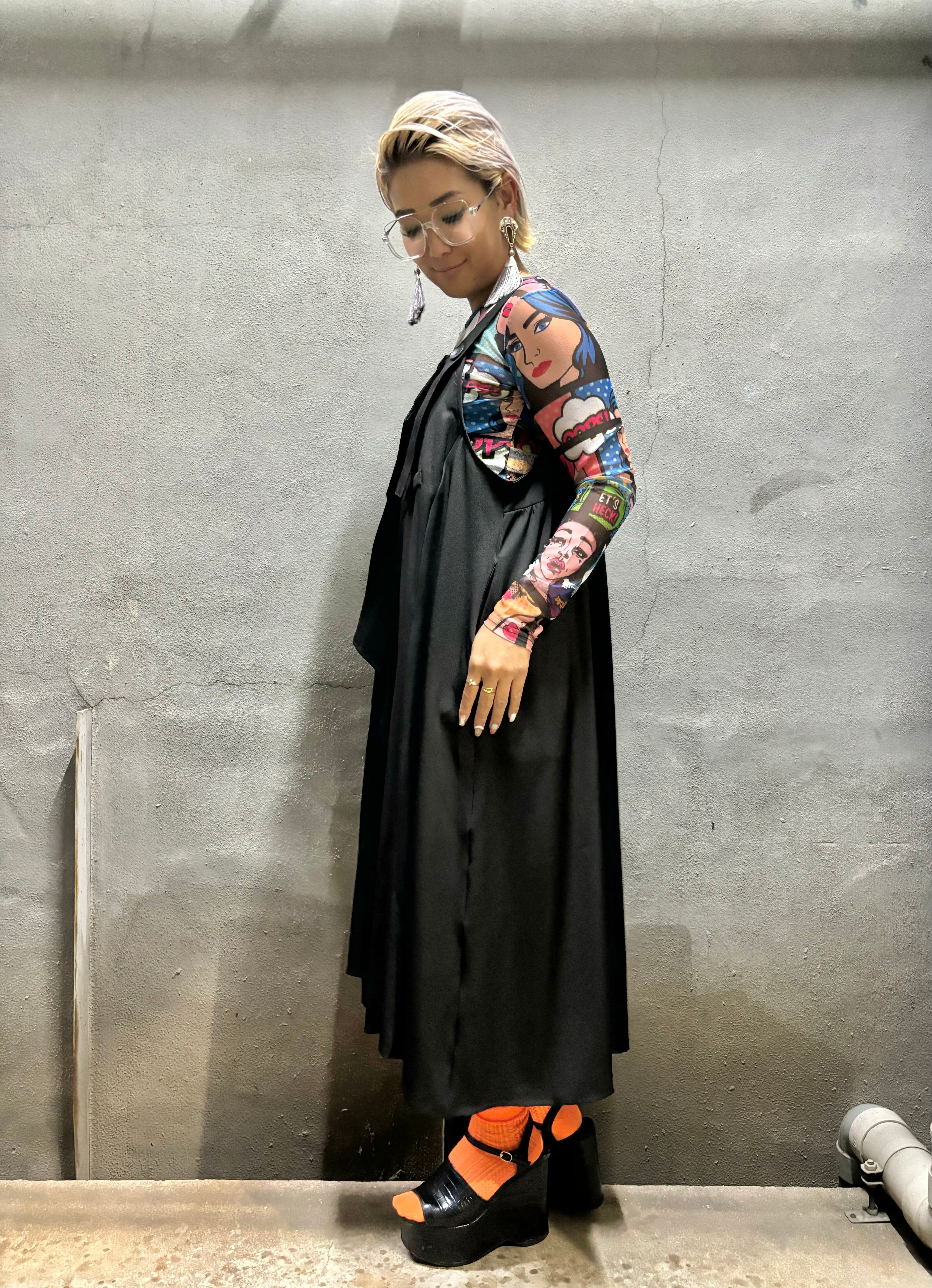 asymmetry design salopette one-piece ワンピース サロペット アシンメトリー 変形 黒 ブラック 重ね着