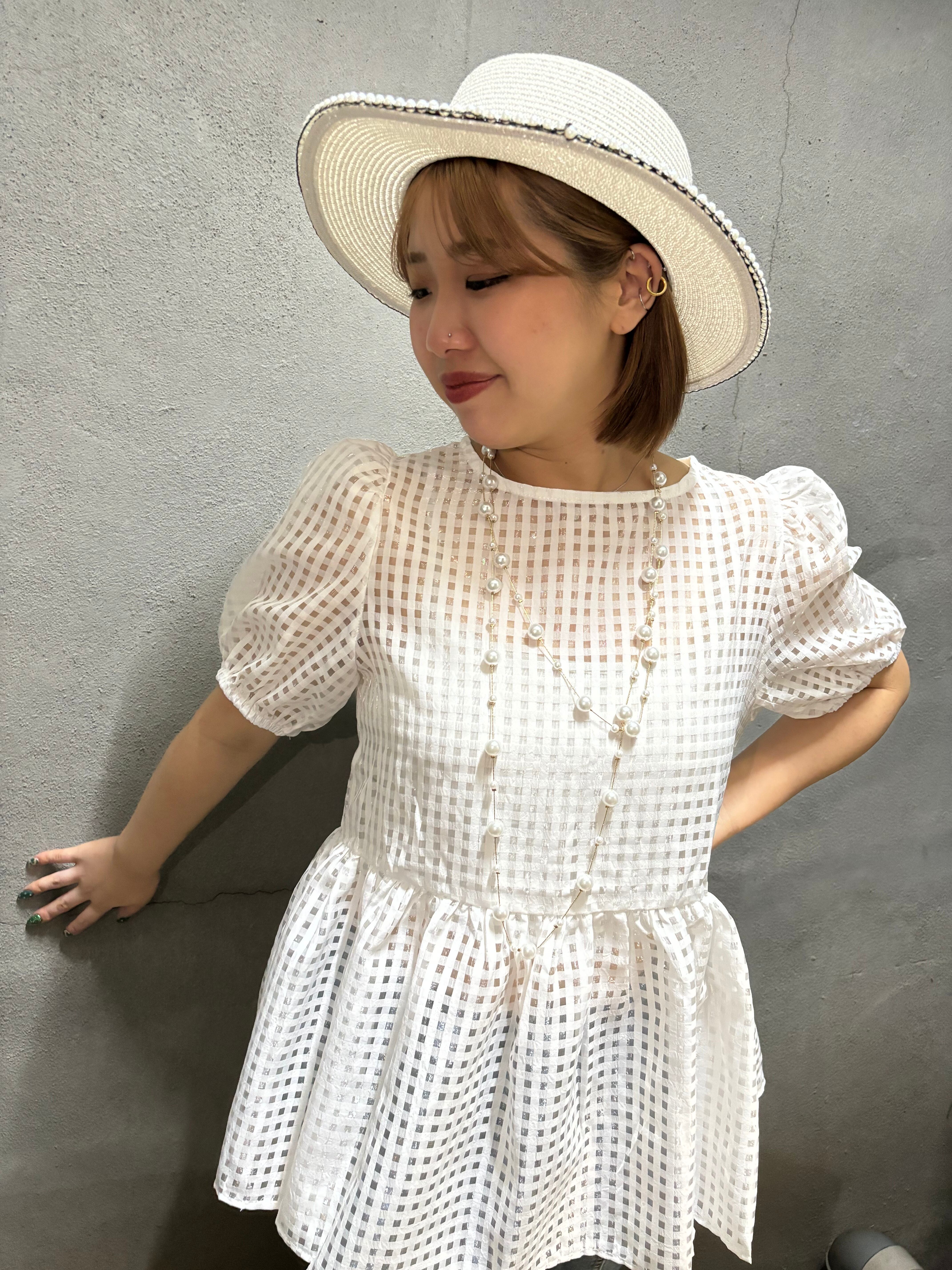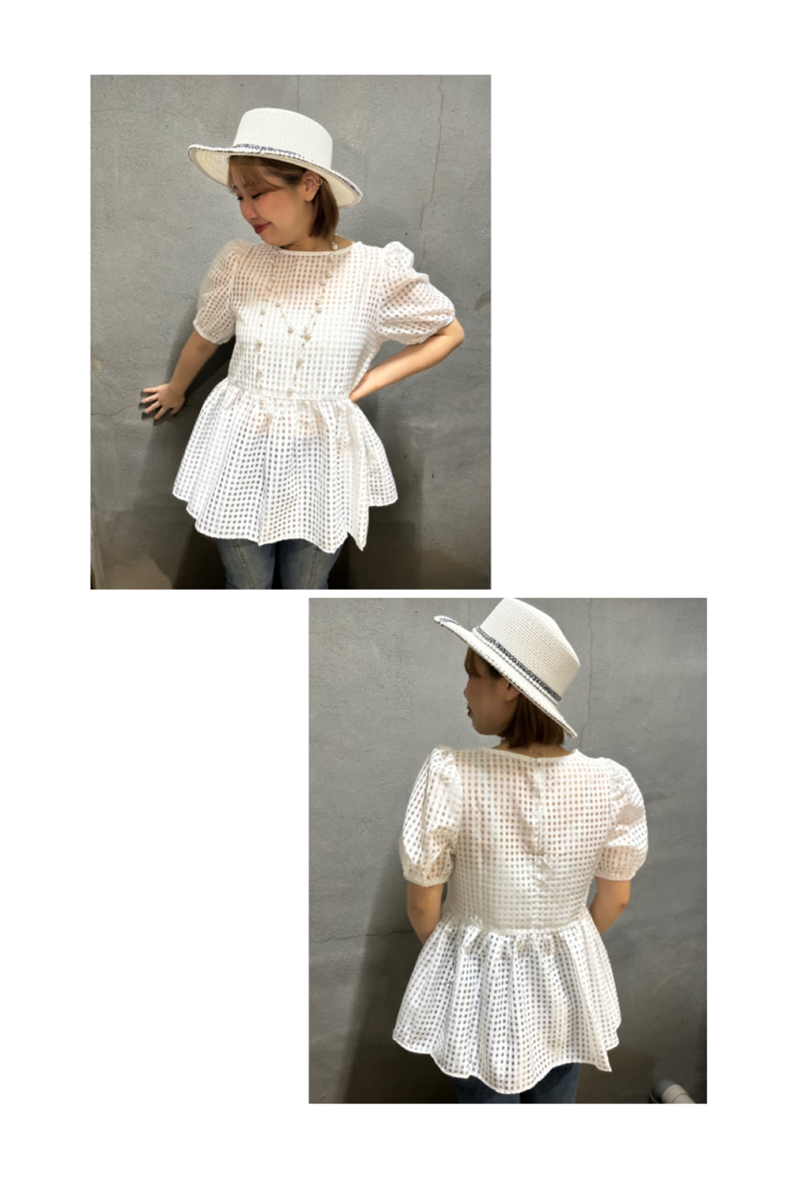 skeleton check × gather change design tops トップス チェック スケルトン シアー ギャザー 重ね着