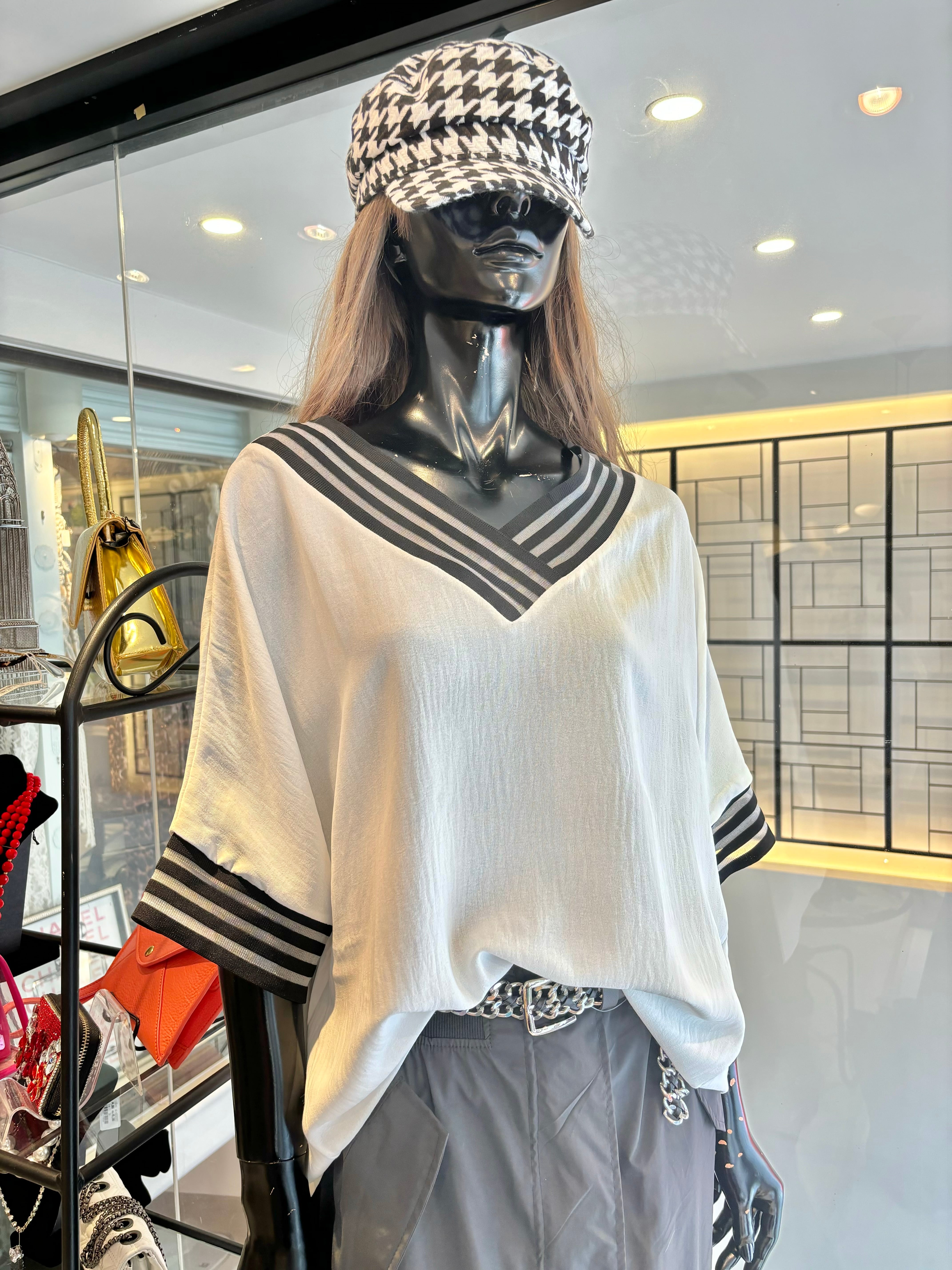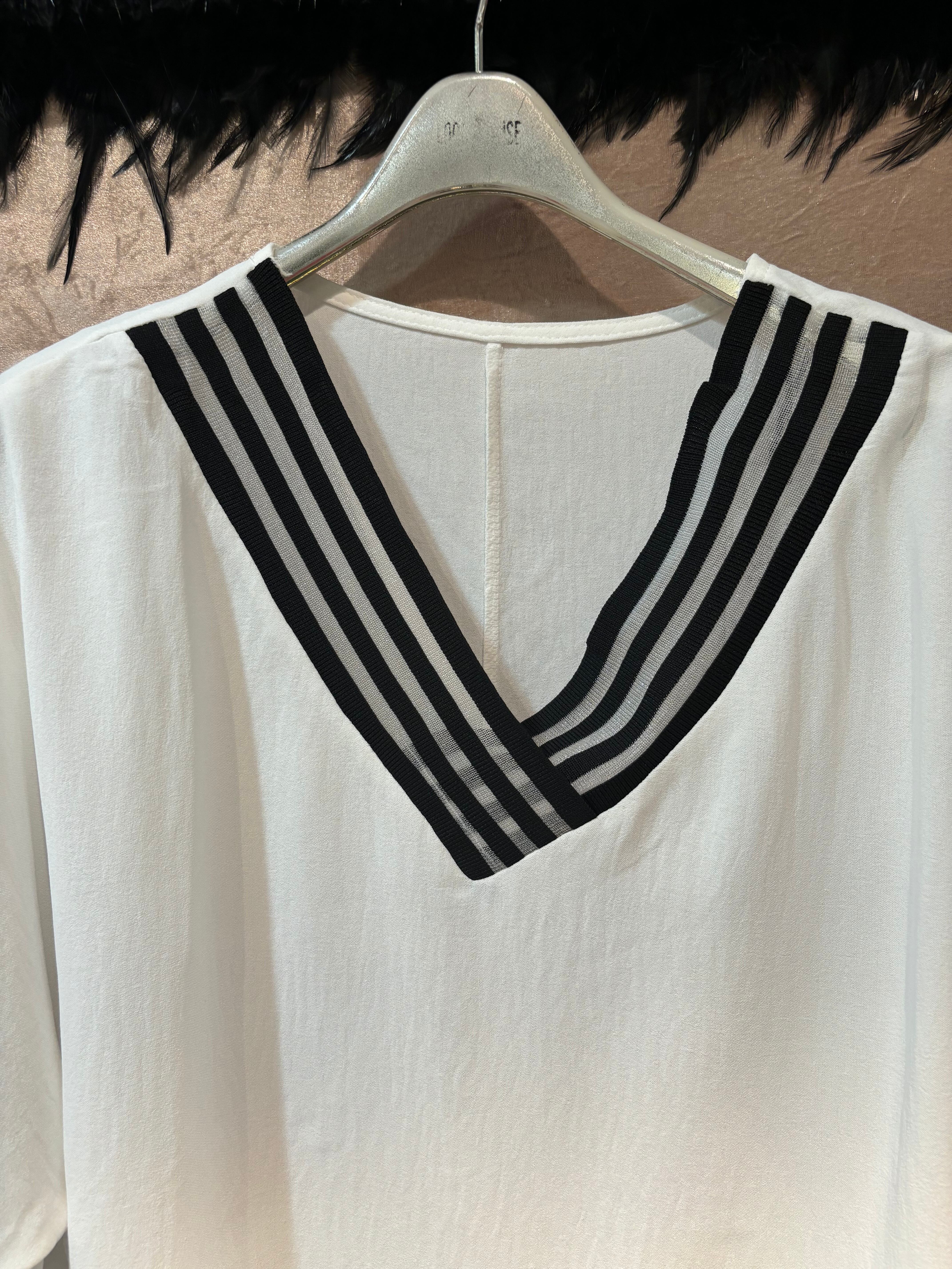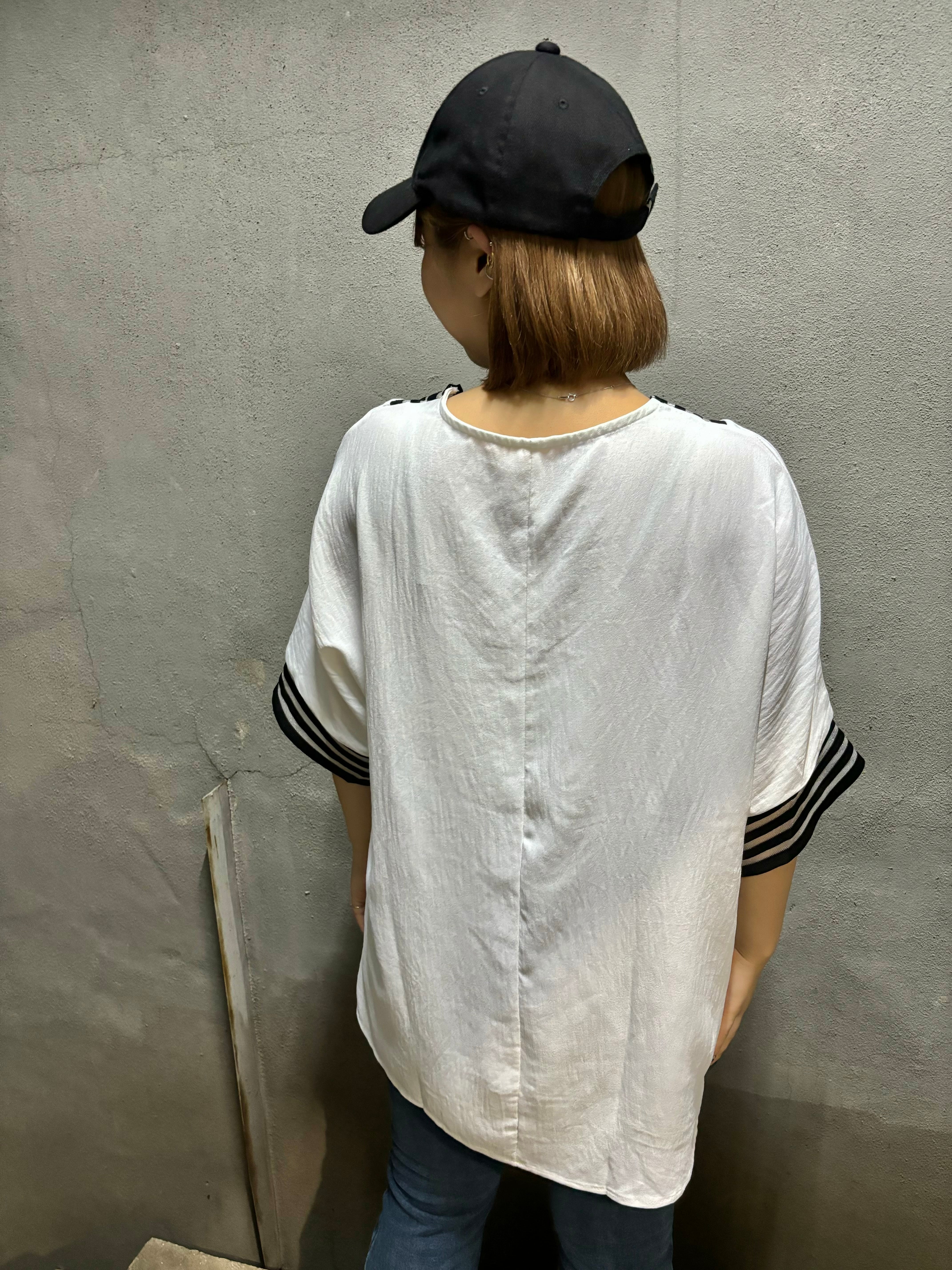 ester see-through stripe V-neck design tops トップス ホワイト 白 エステル Vネック シースルー ボーダー