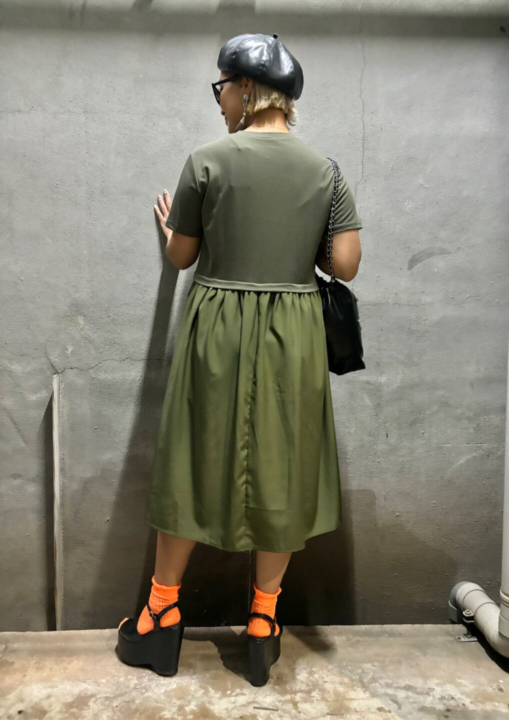 different fabrics change zip × ribbon design one-piece ワンピース ワンピ 異素材切替 ジップ リボン カーキ カジュアル