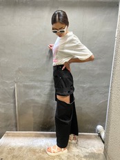 切り離しのベルトがアクセントになり、コーディネートにメリハリを与えてくれます。