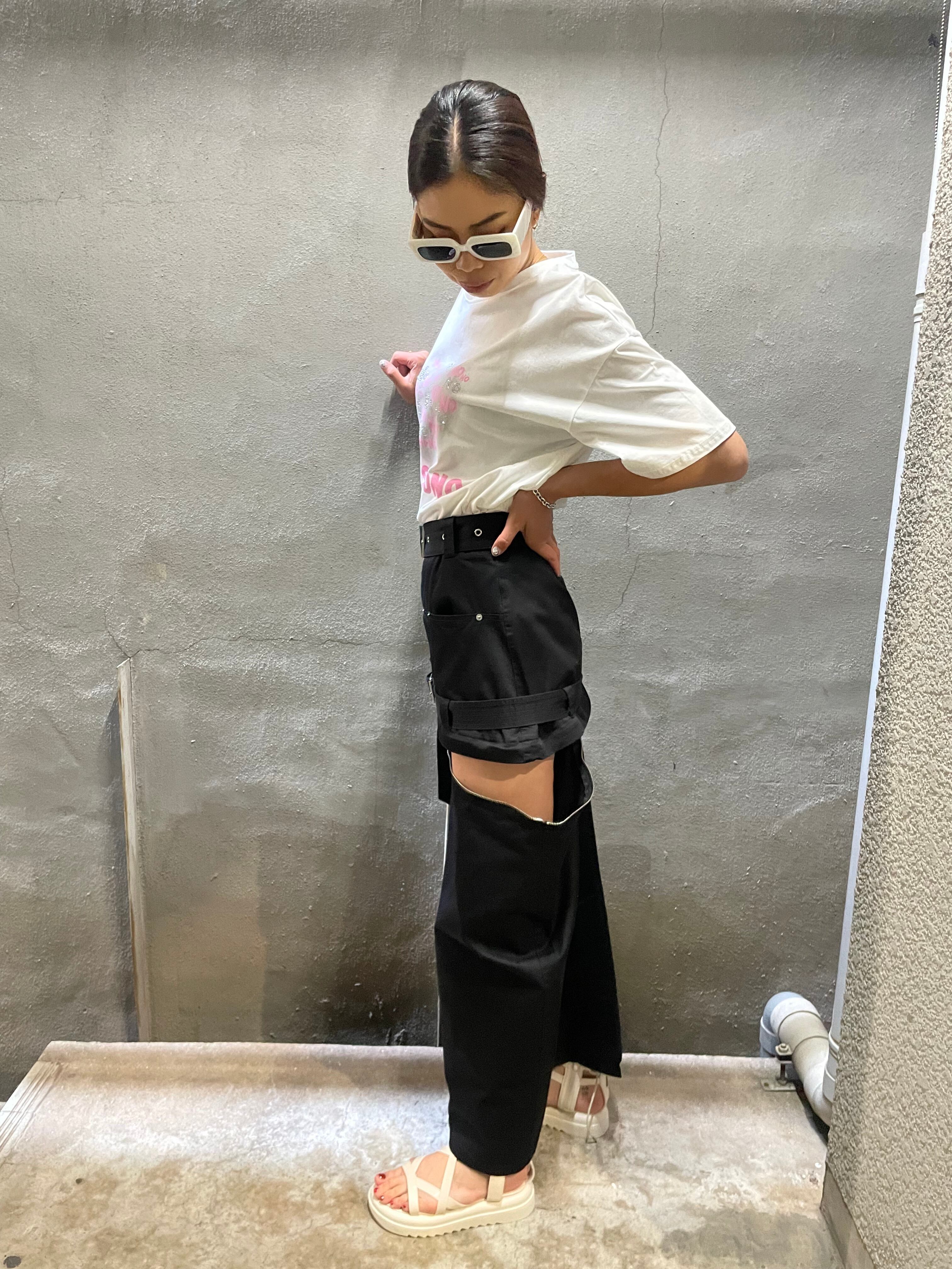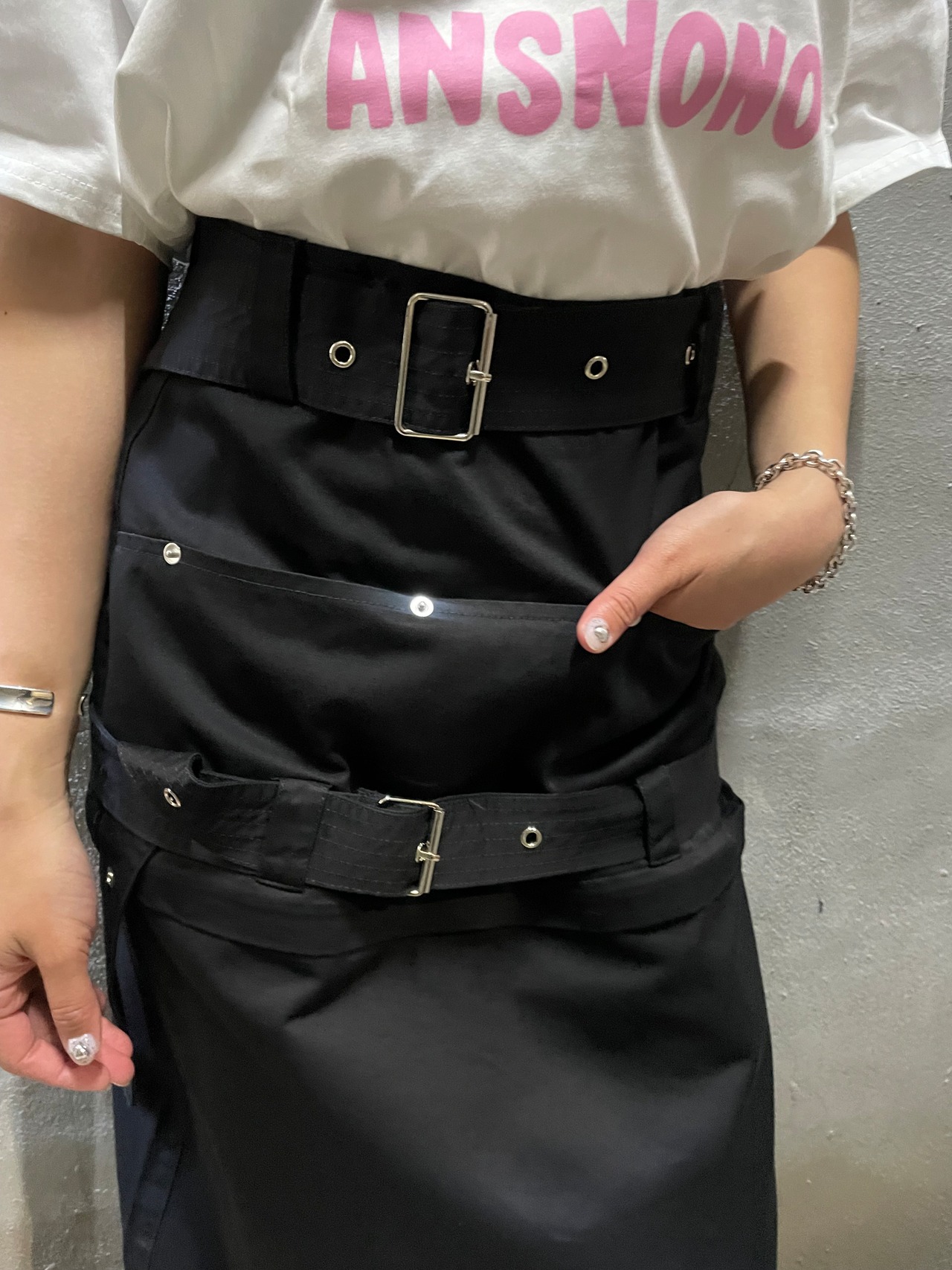 zip change belted 2way design skirt スカート ミニスカート ロングスカート 切り離し ベルト ブラック 黒