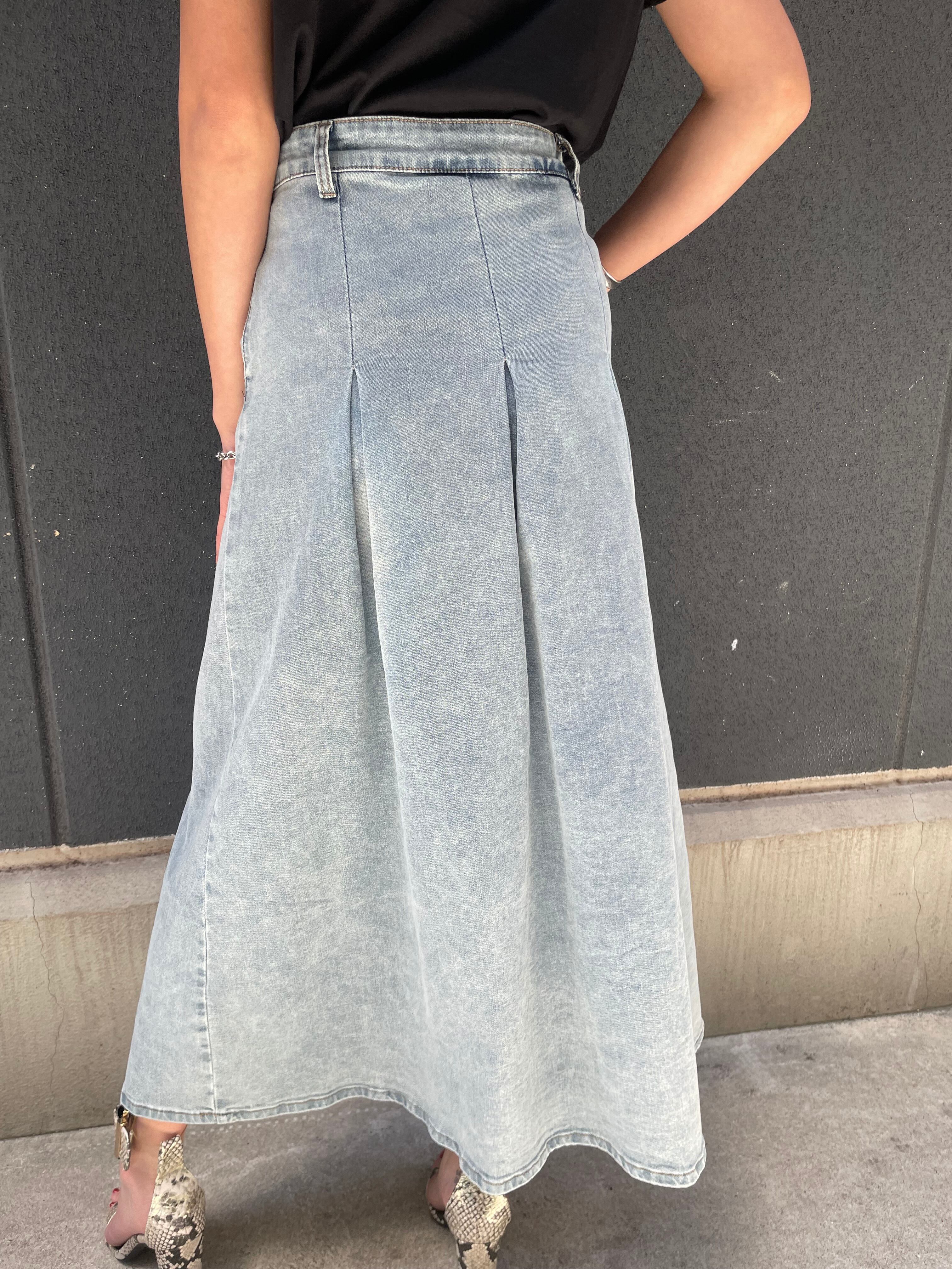 tuck flare stretch long denim skirt スカート デニム デニムスカート ロングスカート タック フレア
