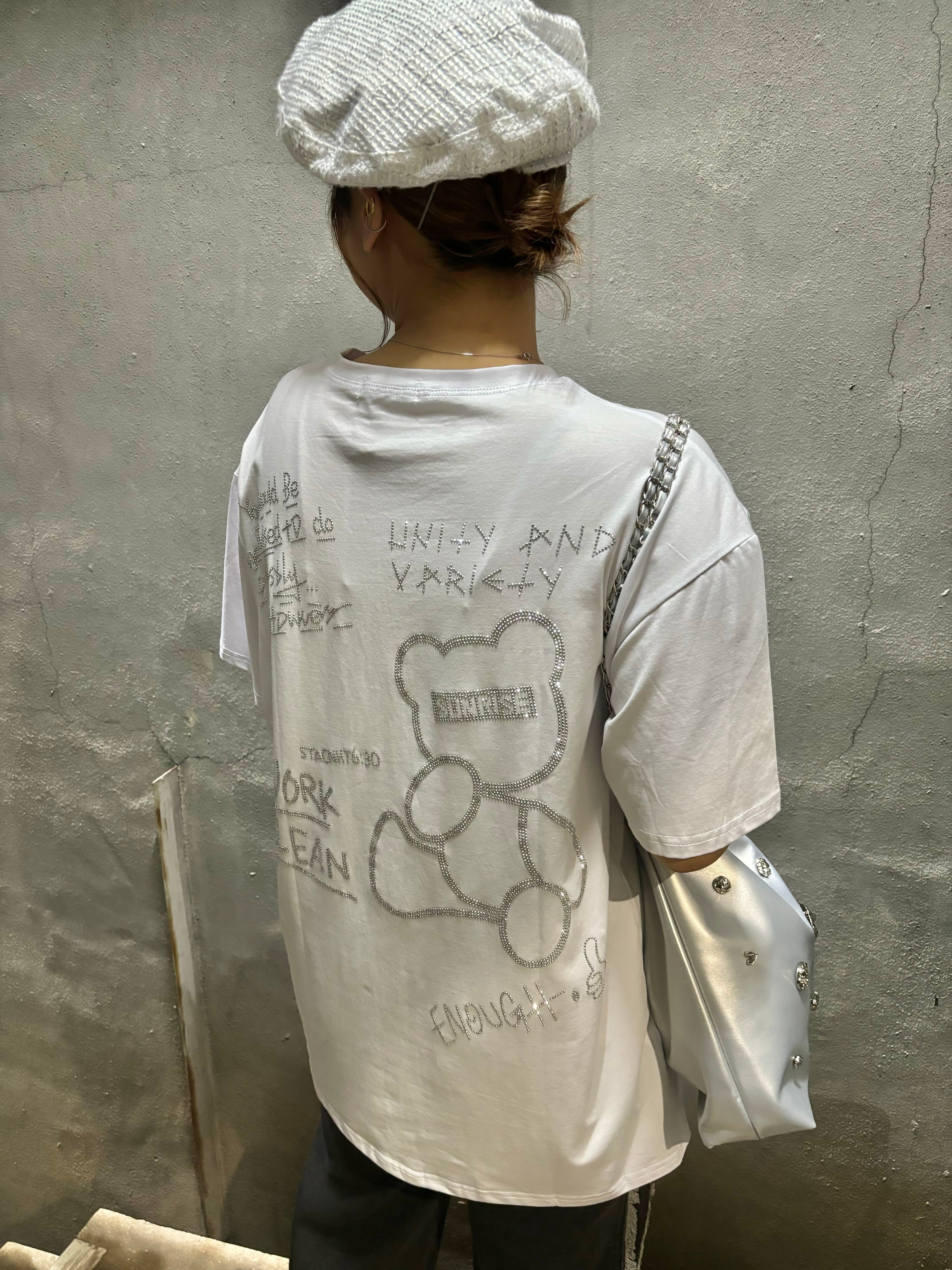 front & back silver decoration T-shirt Tシャツ ハピス シルバー バッグデザイン キラキラ