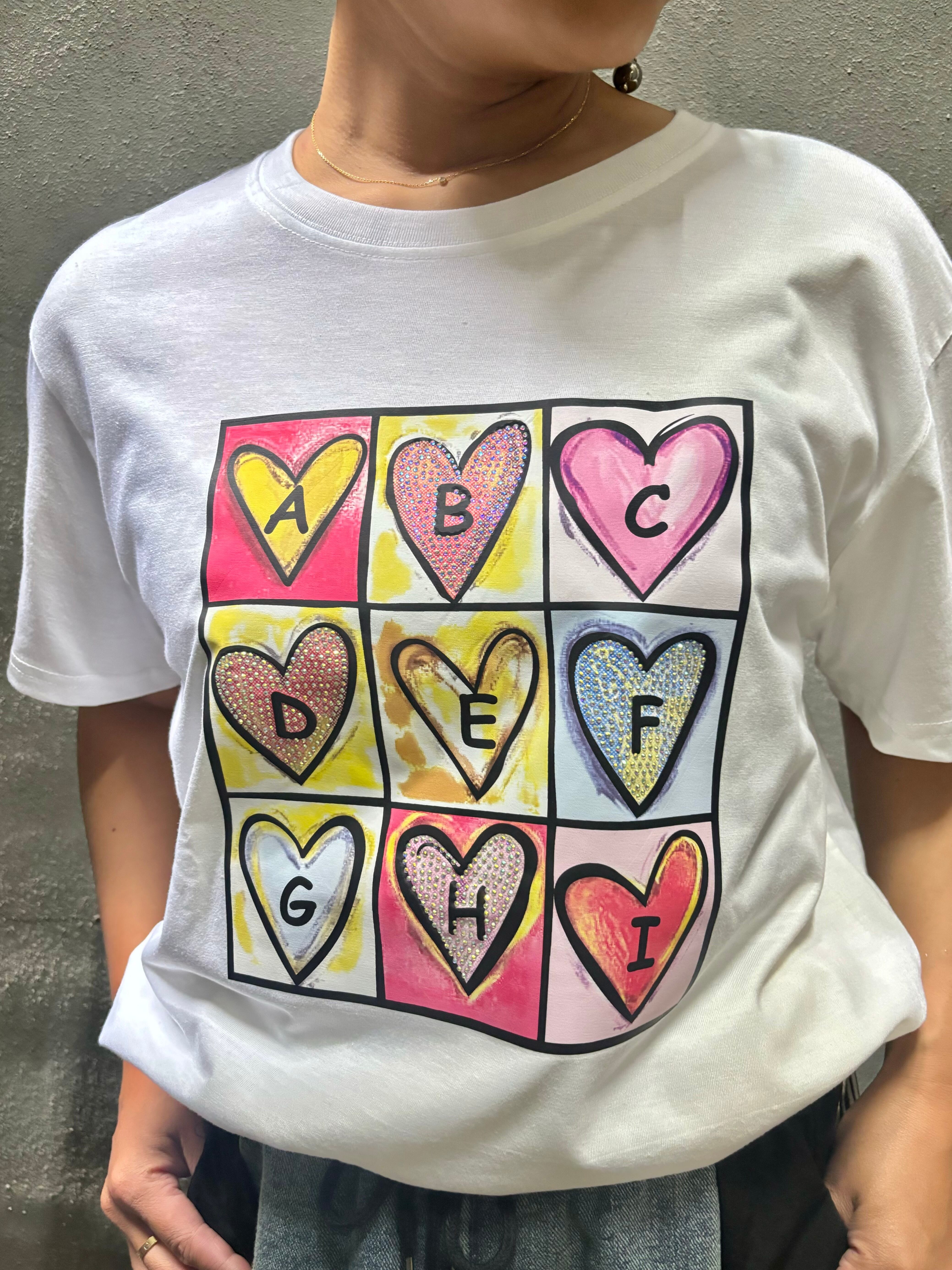 心踊るハートとキラキラ輝くストーンのデザインが目を引くTシャツ!