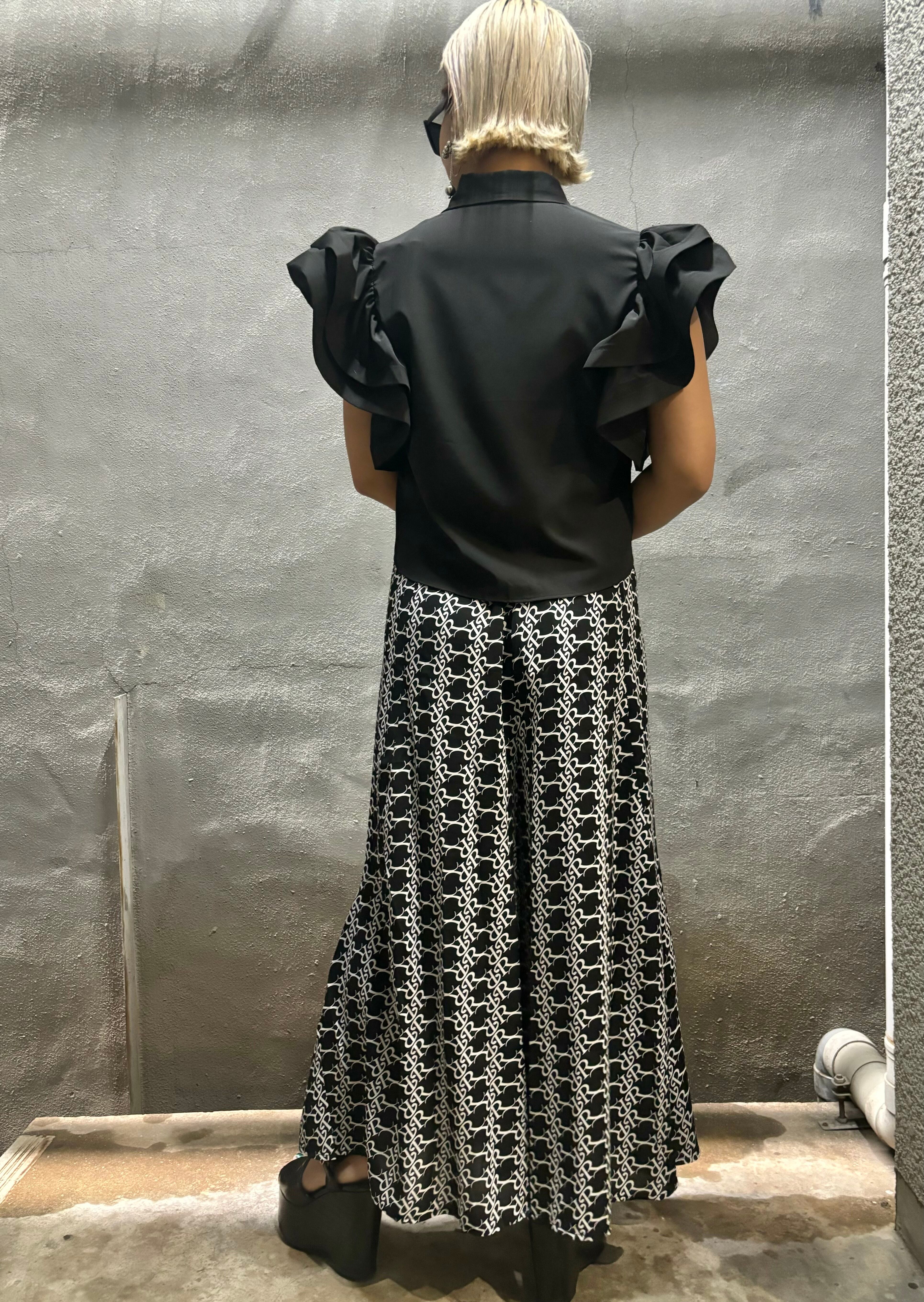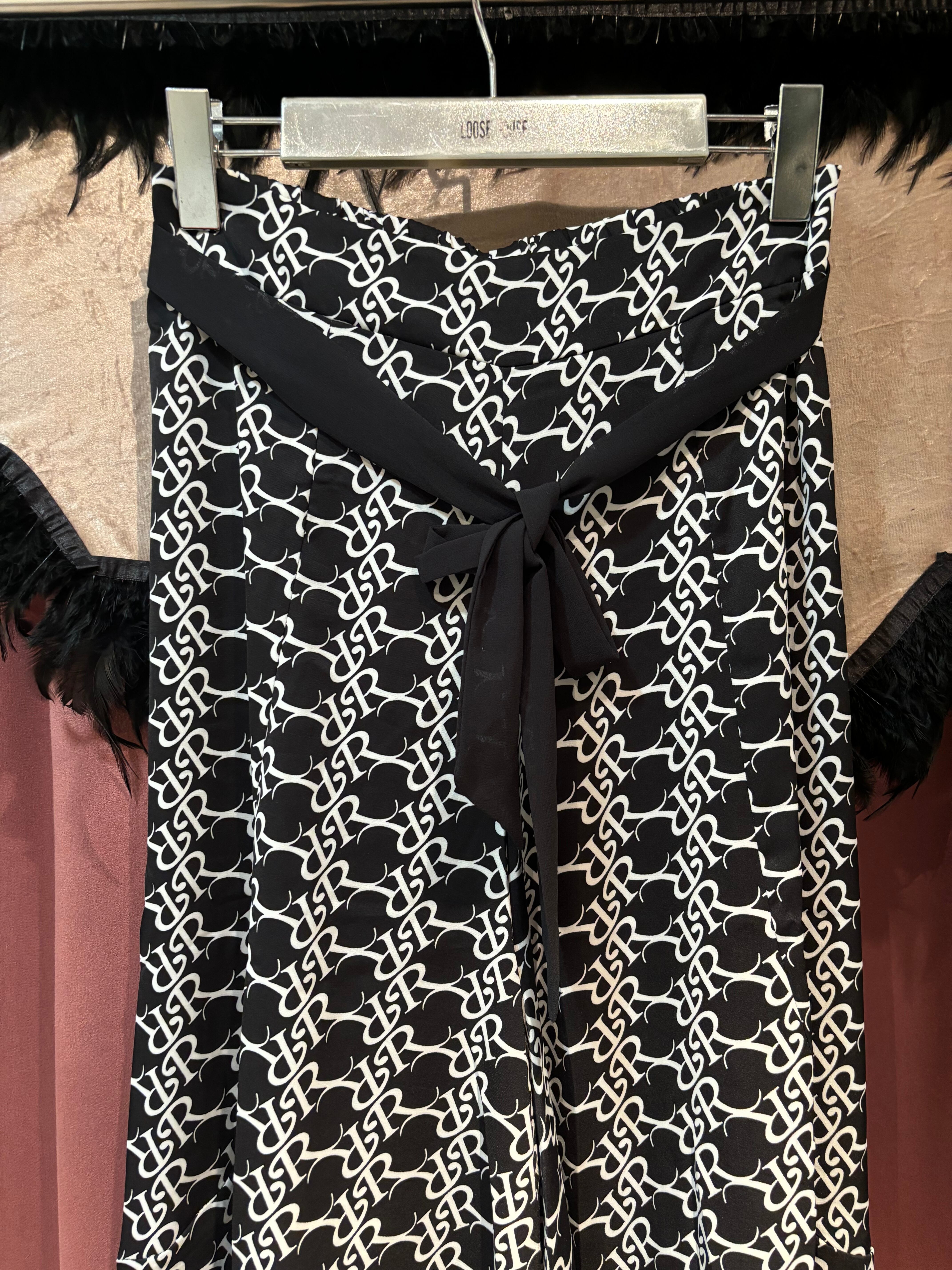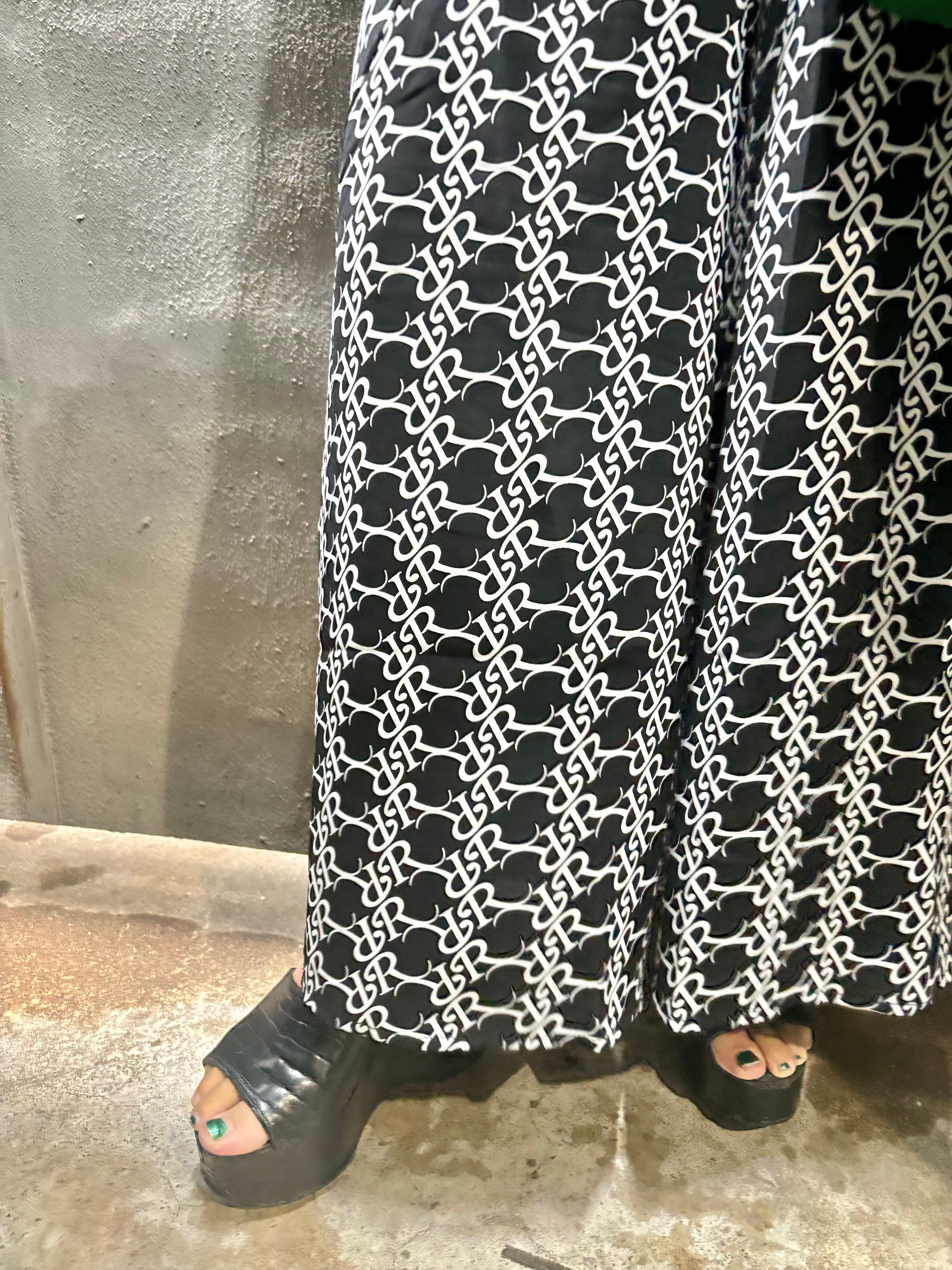 bi-color print wide flare long pants パンツ ロングパンツ バイカラー 白黒 ワイド フレア リボンベルト