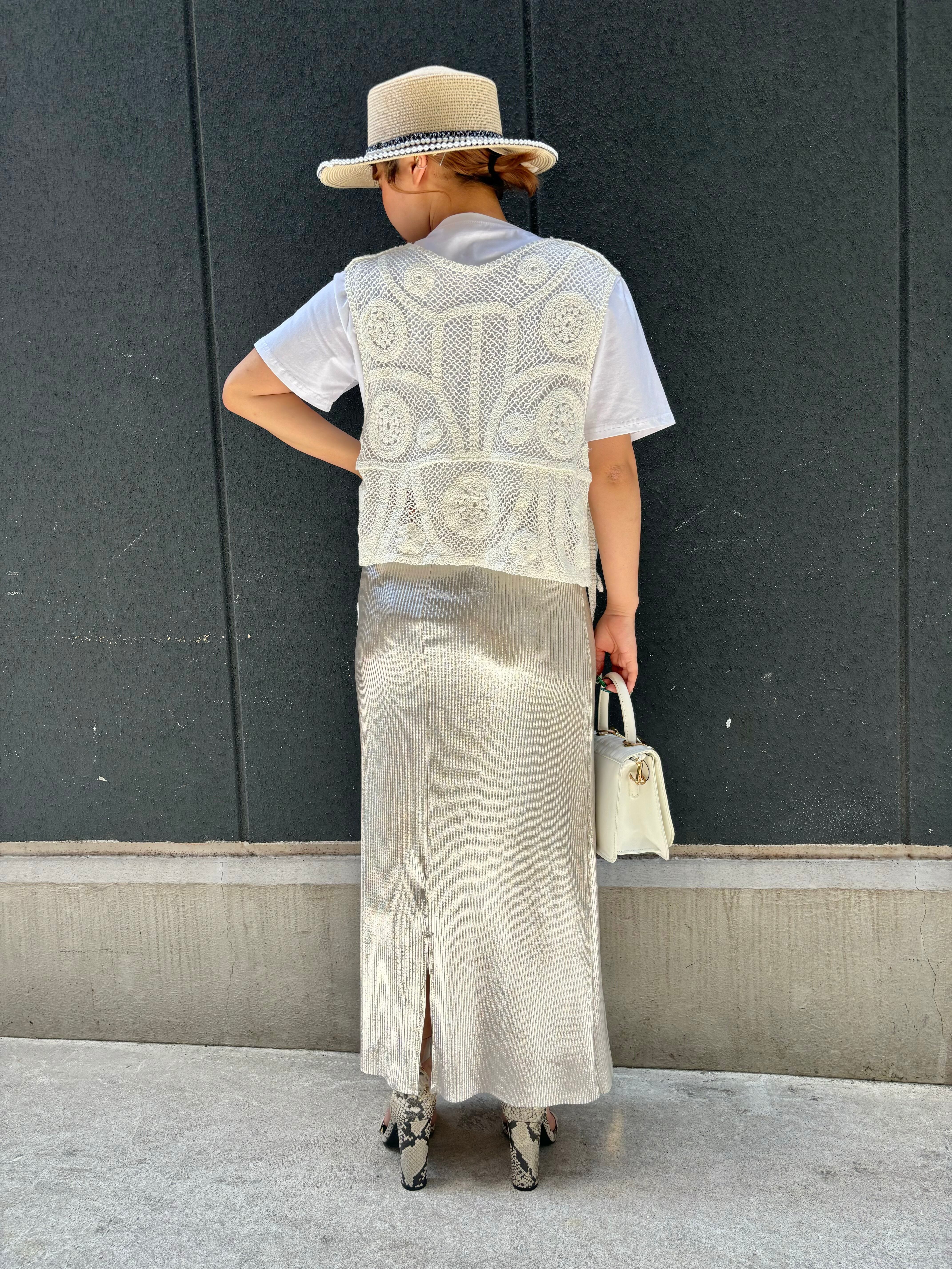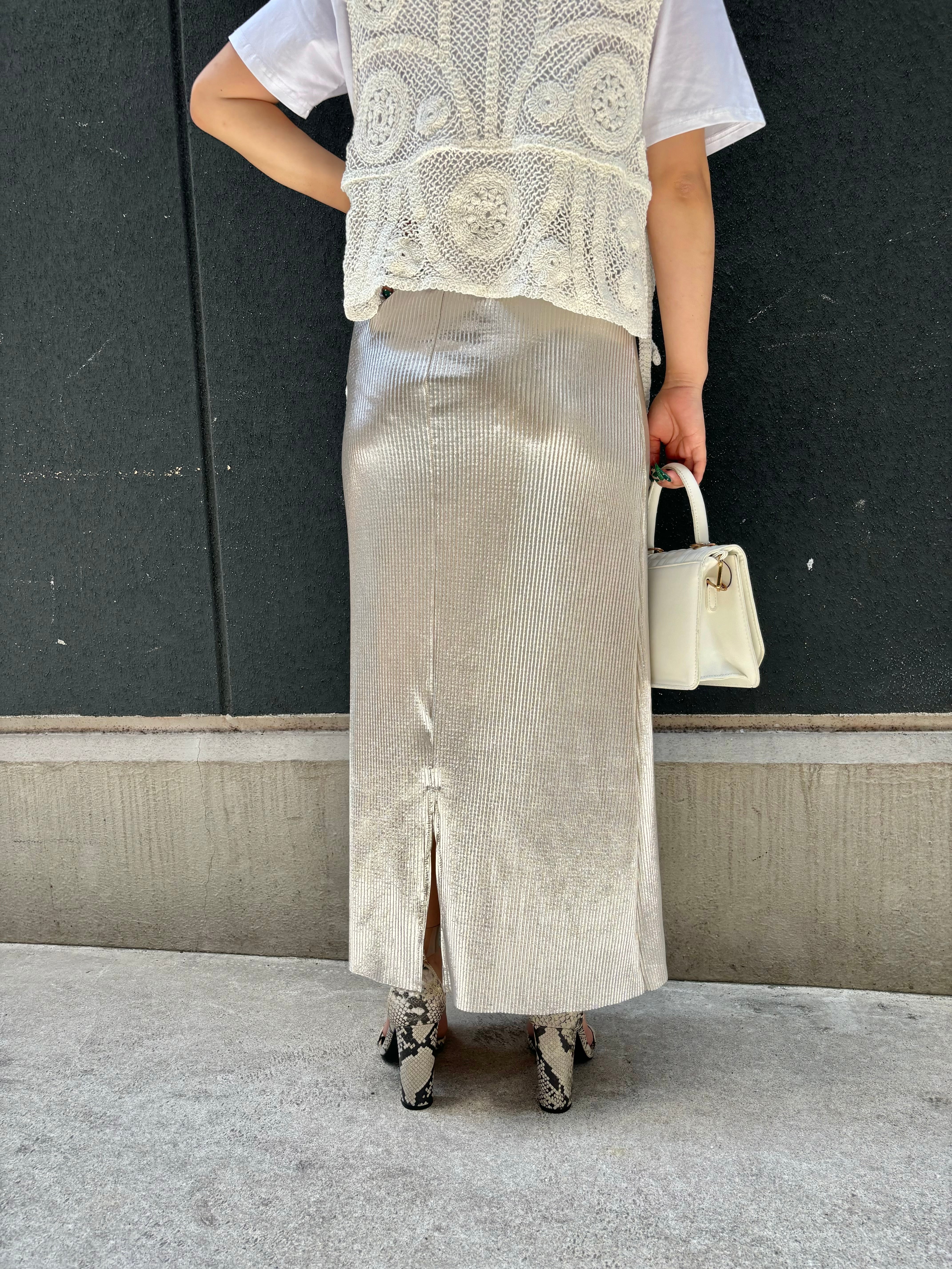 metallic pleats design skirt スカート メタリック プリーツ ゴムウエスト