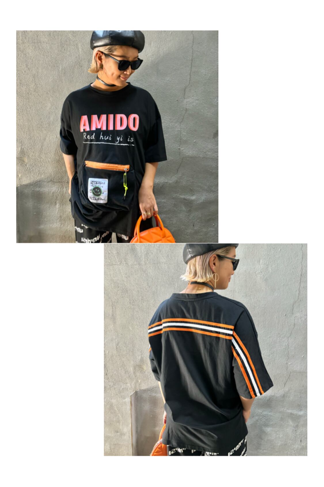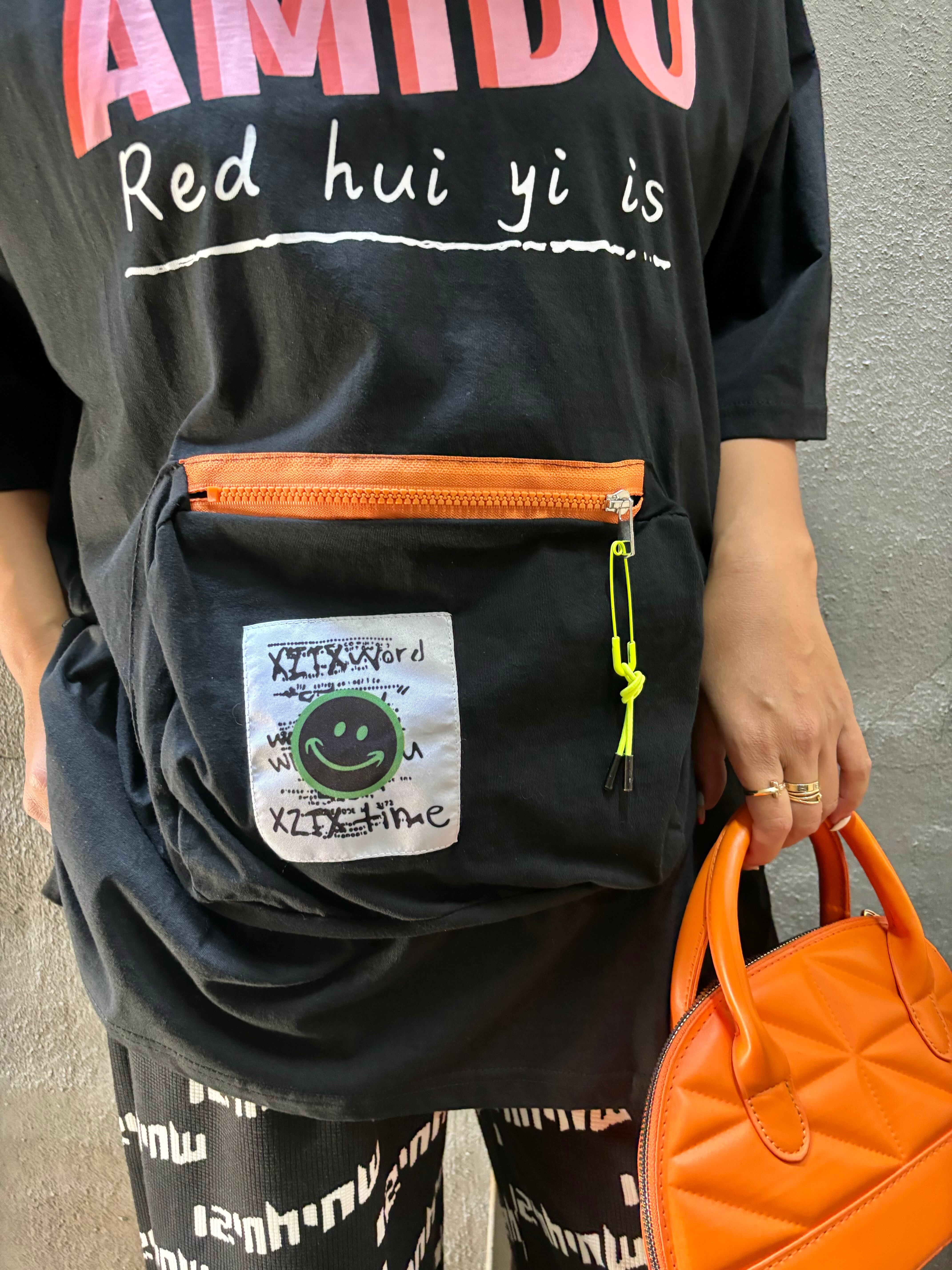 line back × color zip × pocket design T-shirt Tシャツ トップス ライン ポケット ジップ デザイントップス