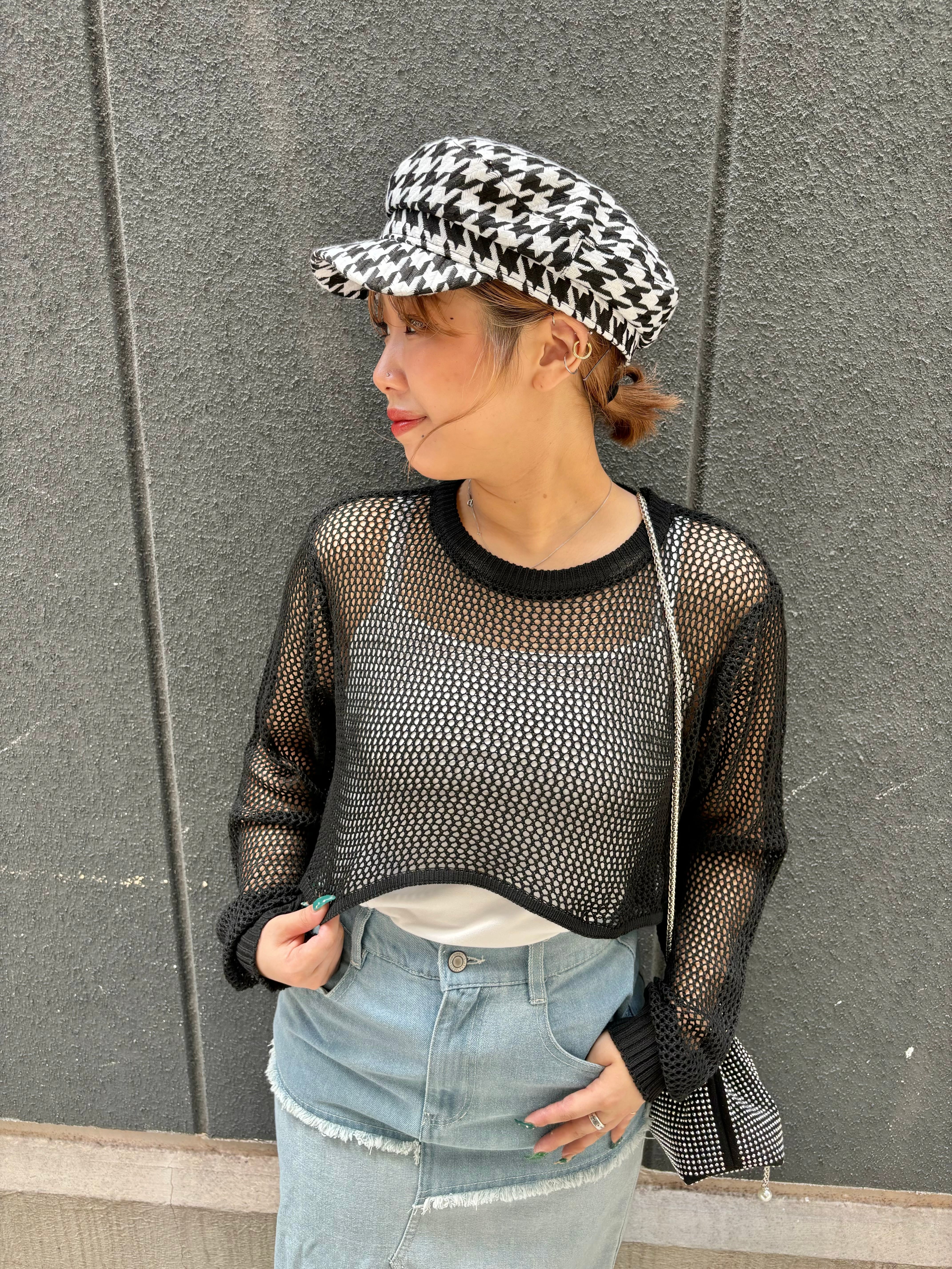 ショート丈のメッシュニットトップスが新登場!