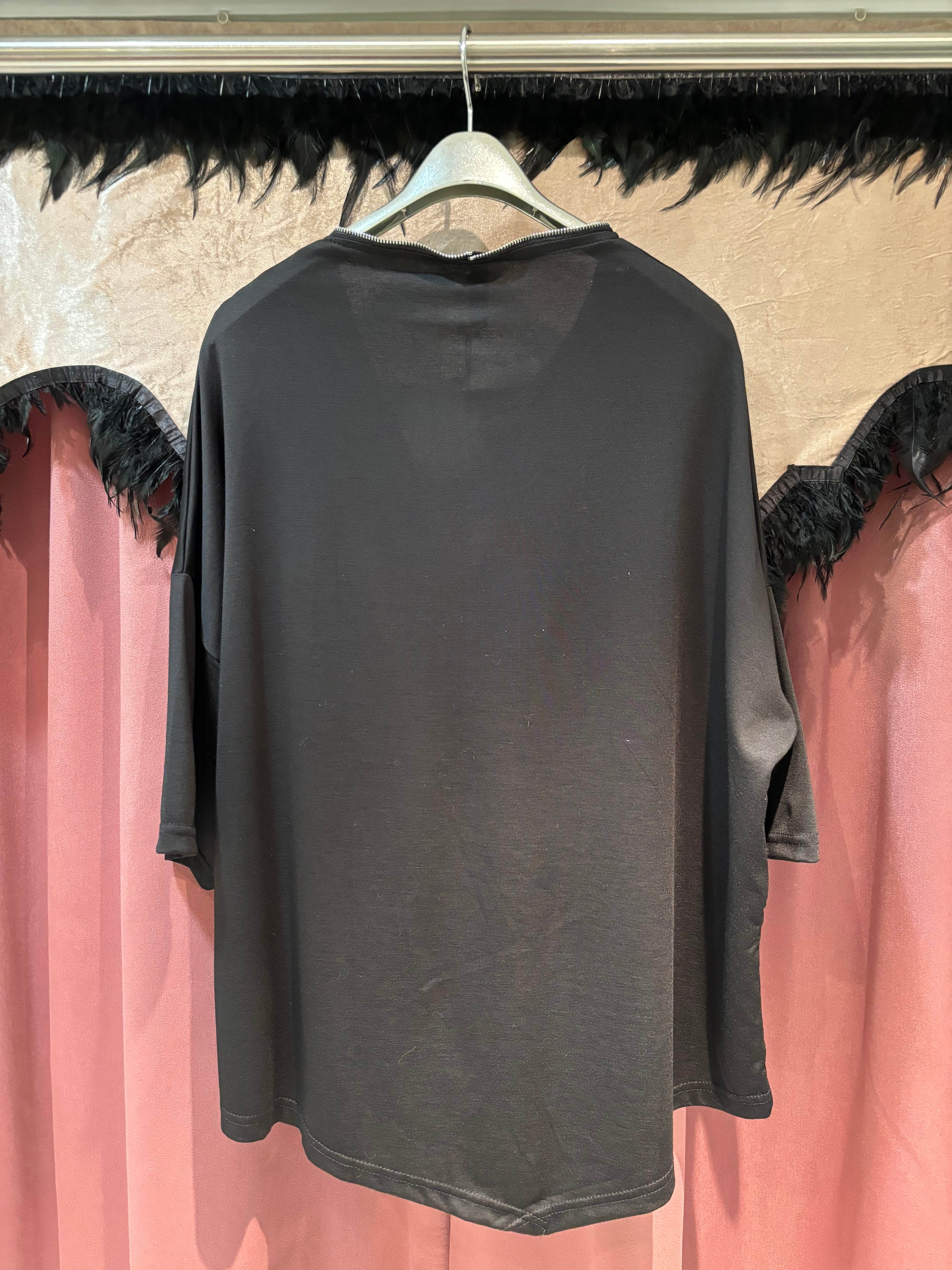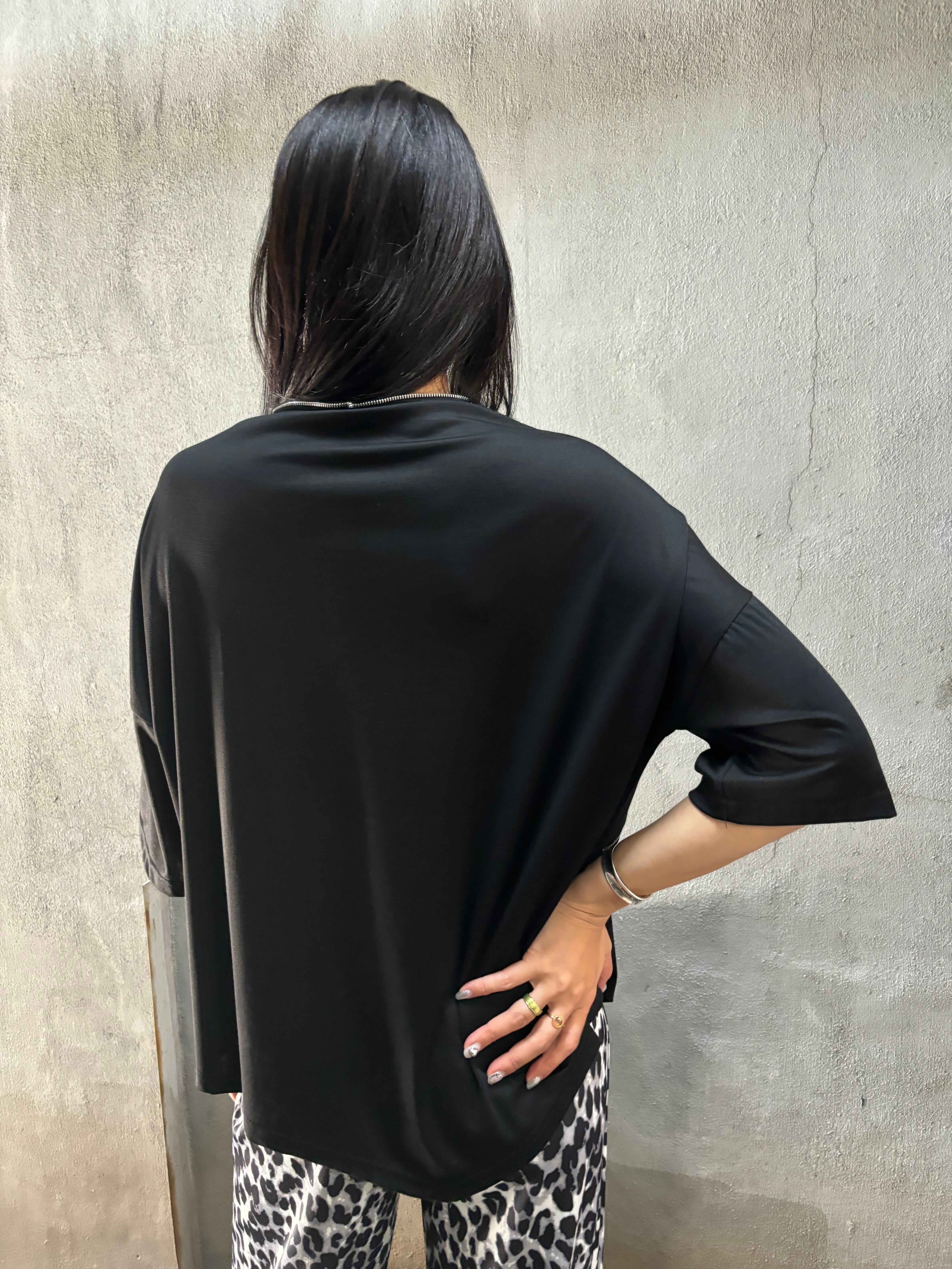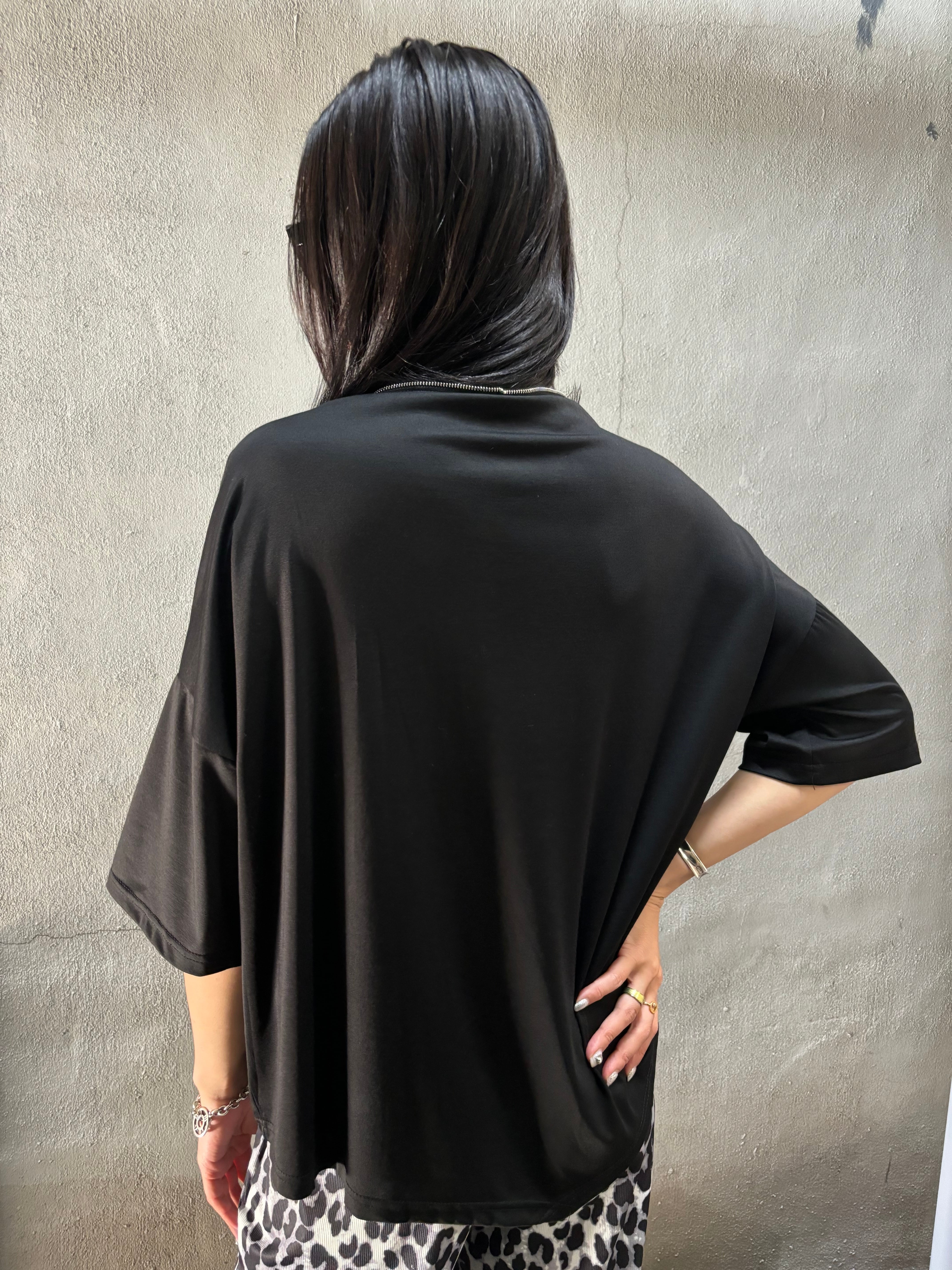 zip design V-neck tops トップス デザイントップス ジッパー シルバー Vネック ブラック 黒