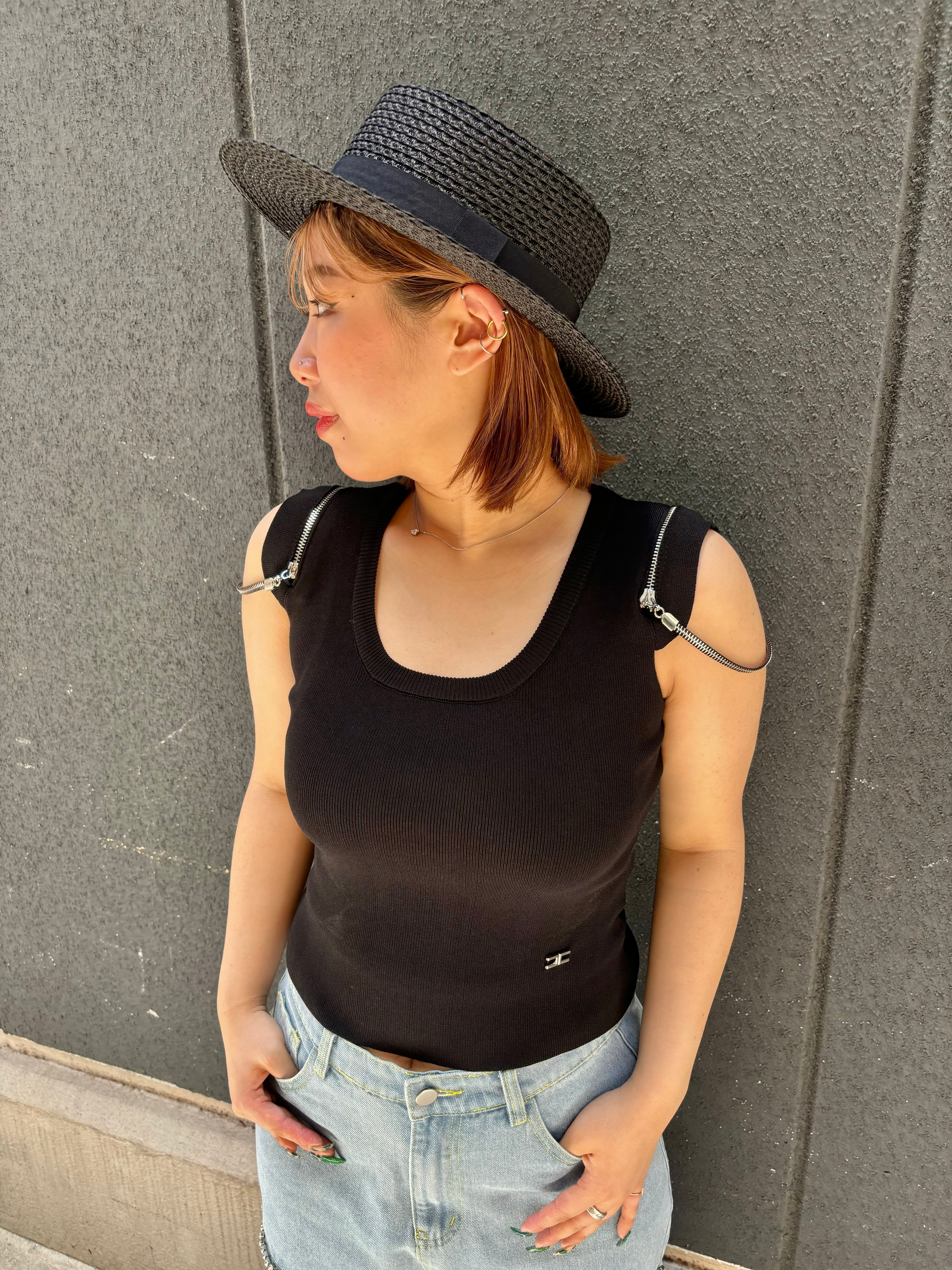 ノースリーブでありながら、肩部分のジッパーアクセントが個性を演出します♪