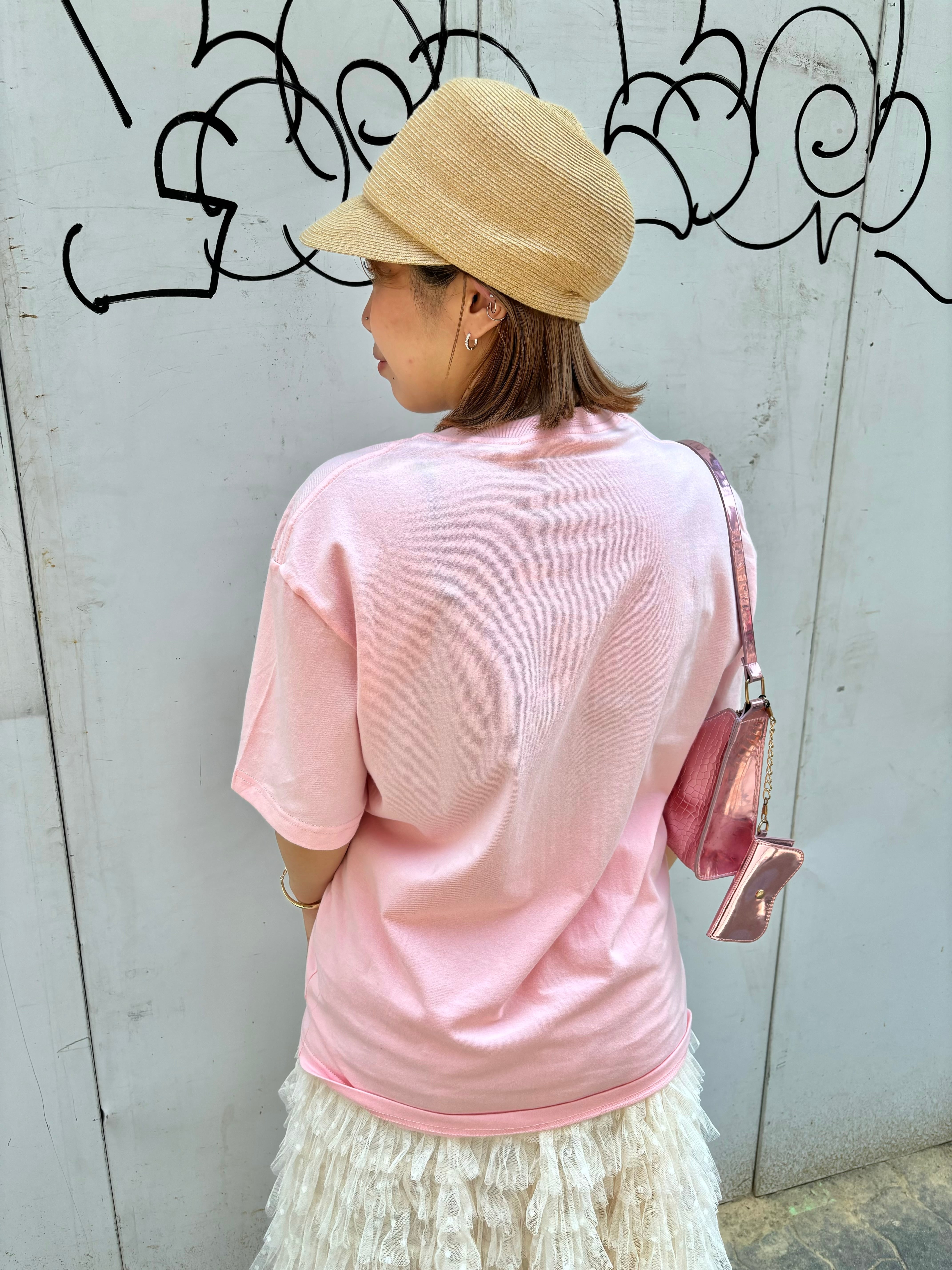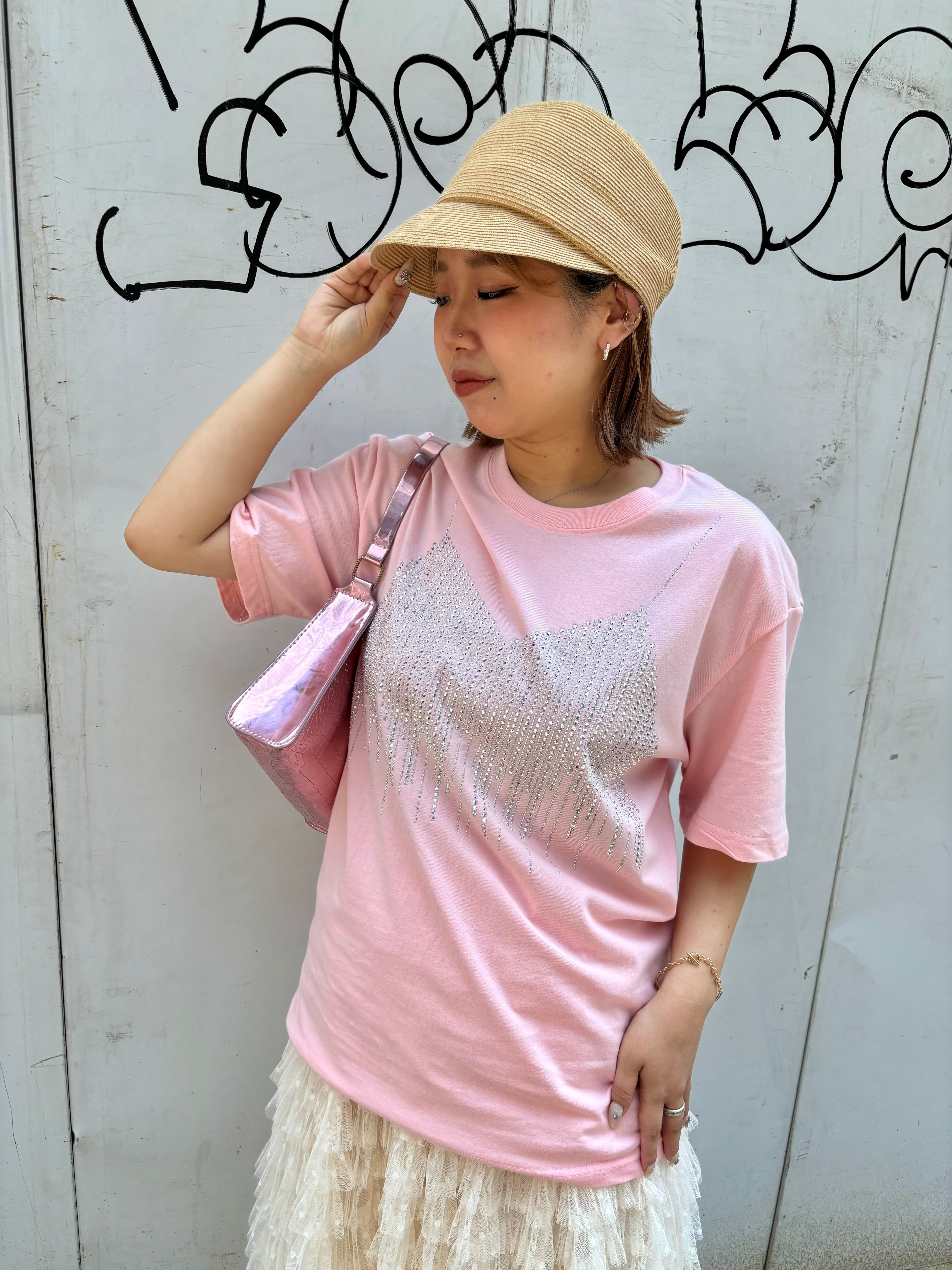 camisole touch × stone design T-shirt Tシャツ キャミソール 重ね着風 ハピス キラキラ ピンク オーバーサイズ