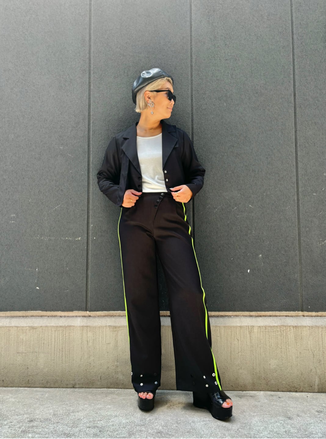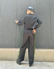 green line pants × short jacket 2P set up セットアップ 2点セット ジャケット パンツ ライン入り