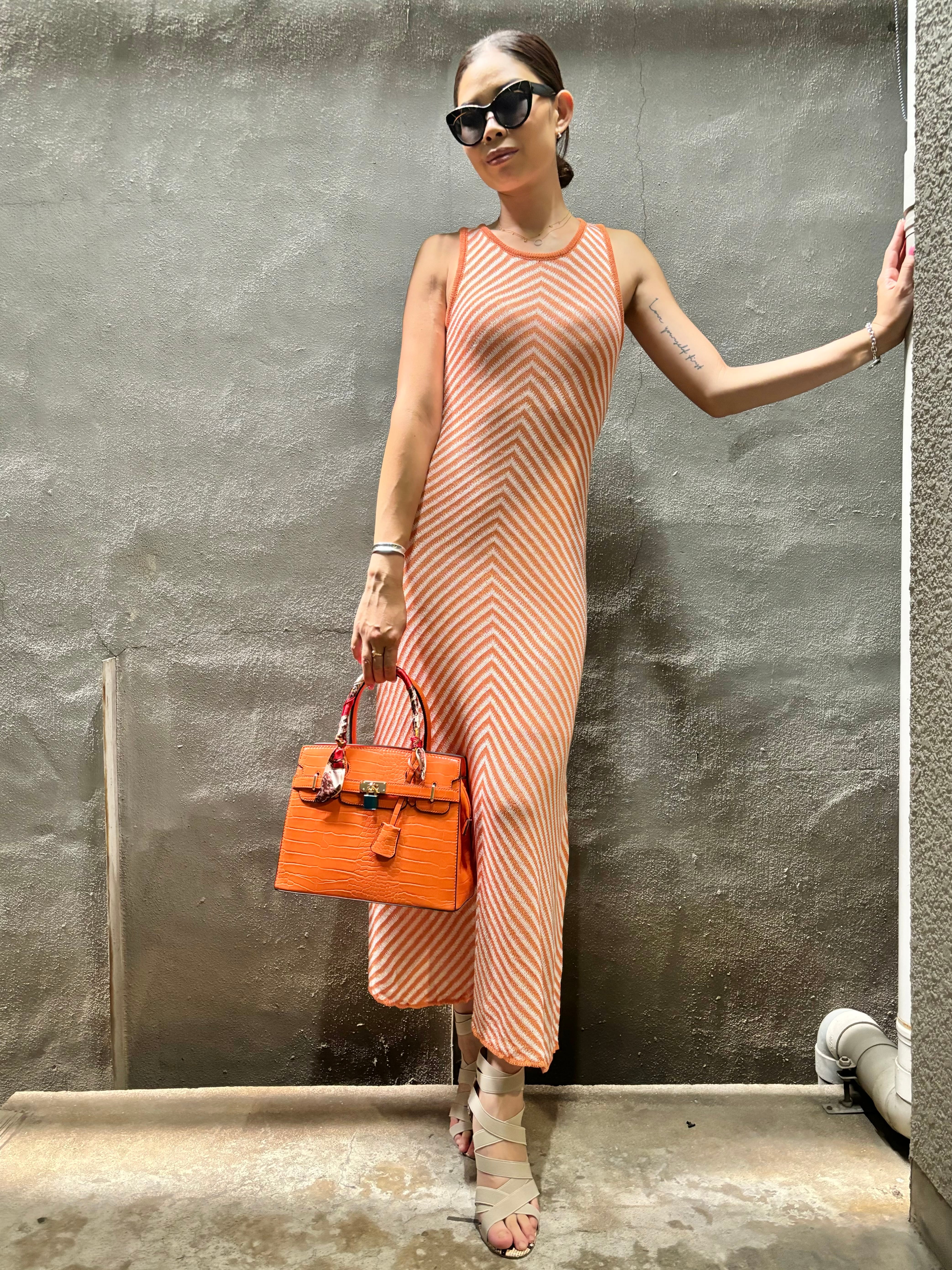 bias border summer knit sleeveless long one-piece ワンピース ニット サマーニット ロングワンピ ボーダー タイト ノースリーブ