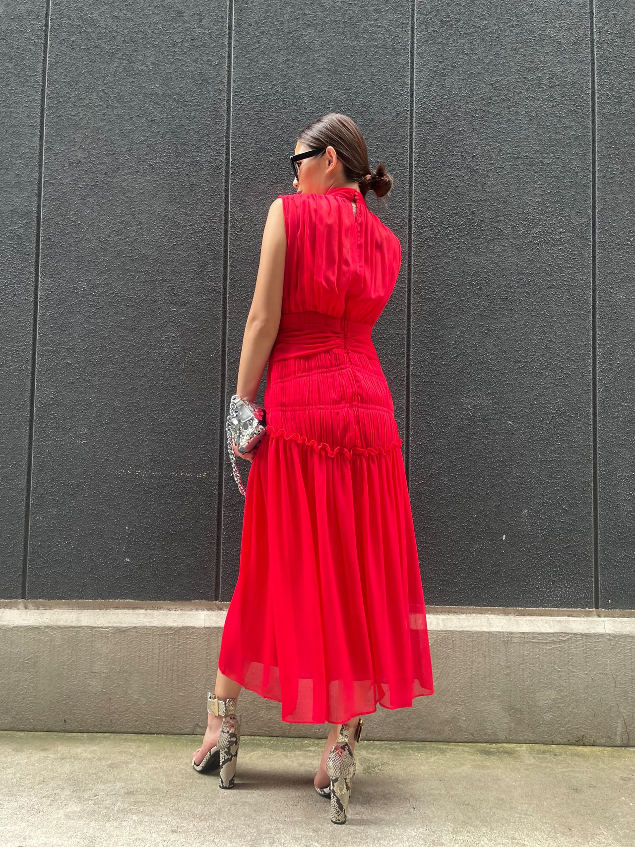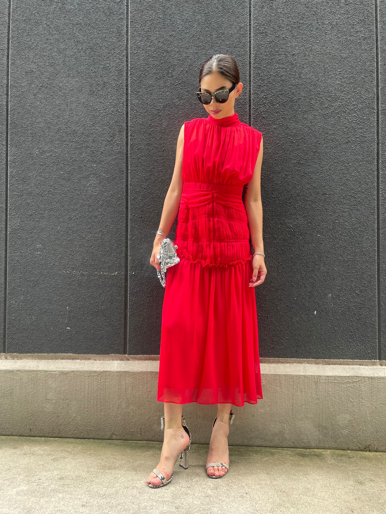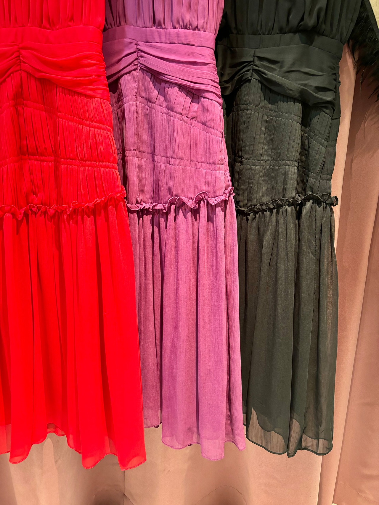 solid chiffon pleats mix design long one-piece ワンピース ワンピ プリーツ シフォン ドレス 結婚式 二次会