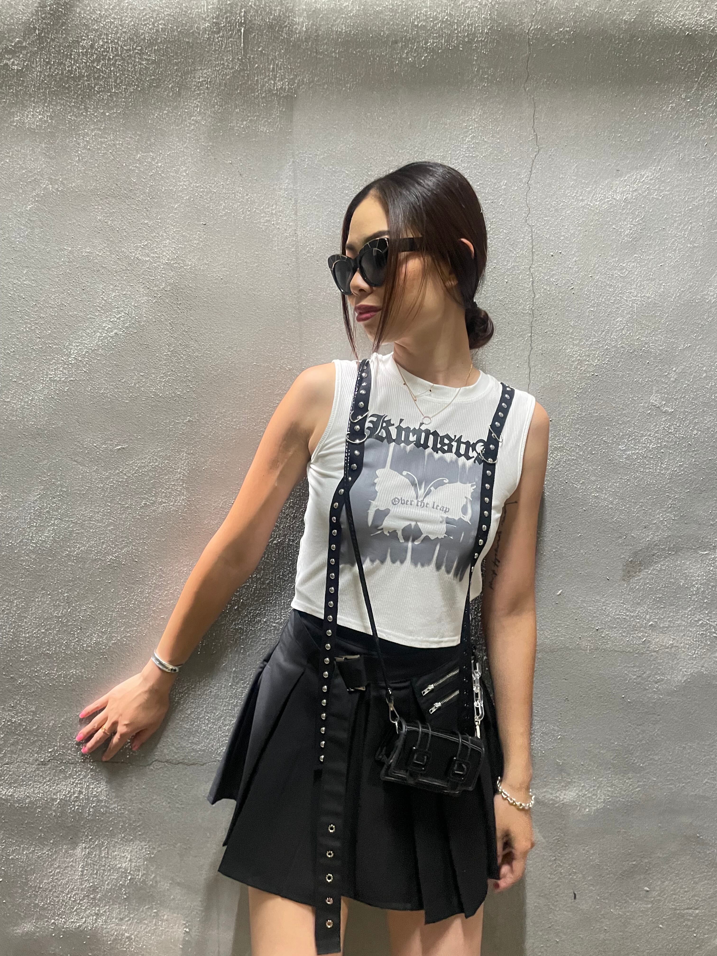 【再入荷】studs × tape sleeveless design tops トップス タンクトップ スタッズ テープ プリント テレコ