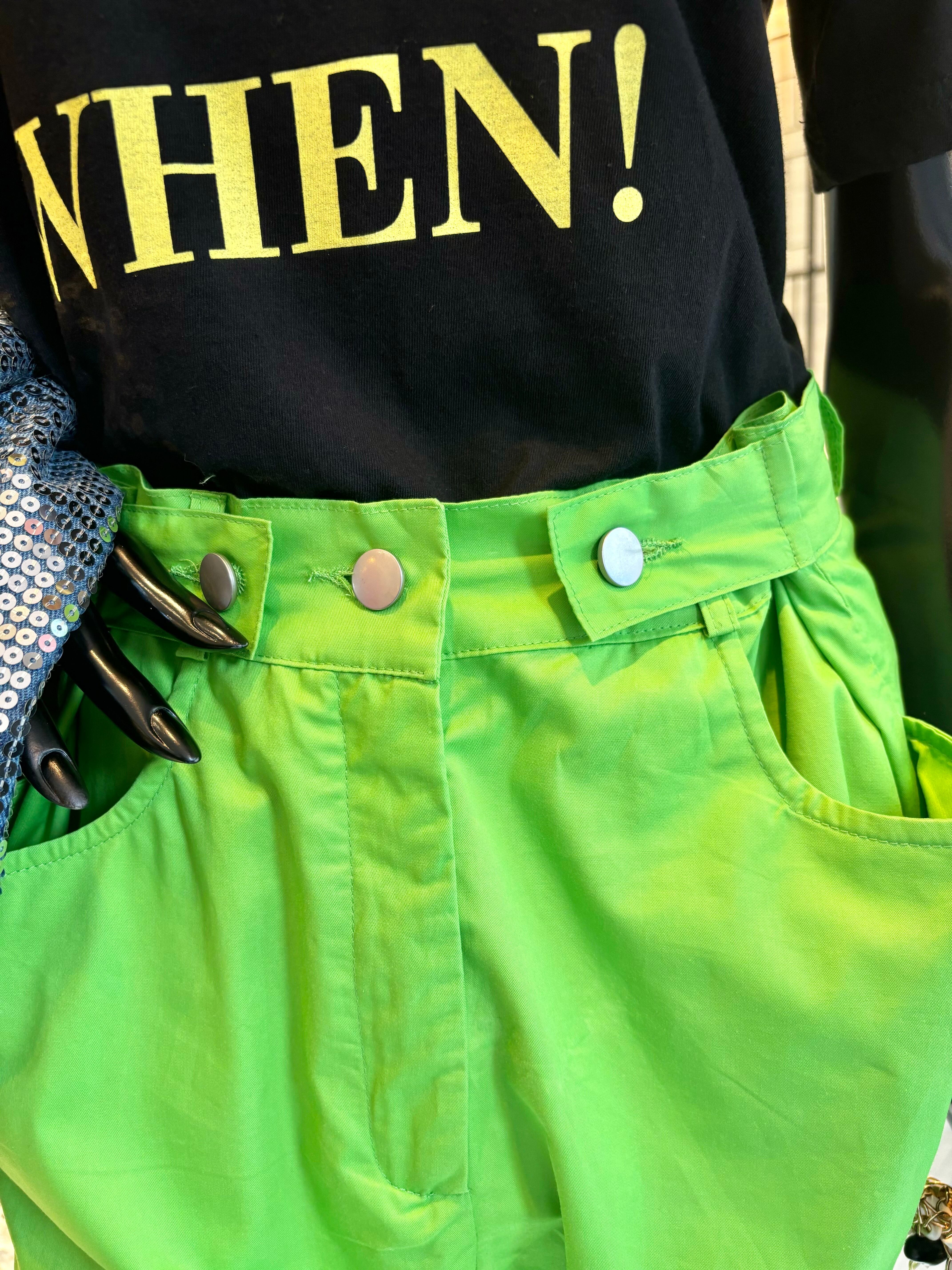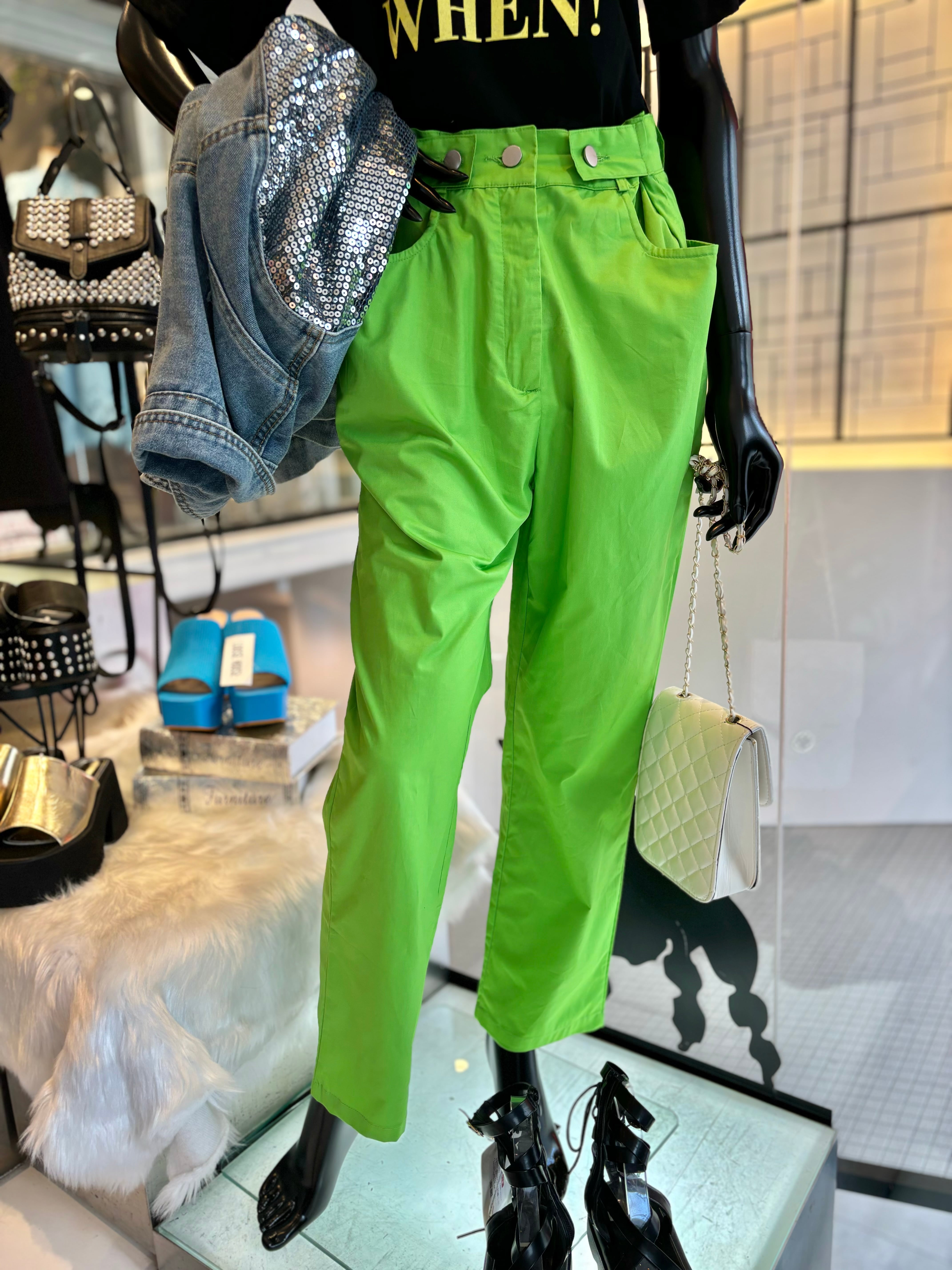 neon green high waist button design pants パンツ ネオン グリーン ボタン サイズ調整