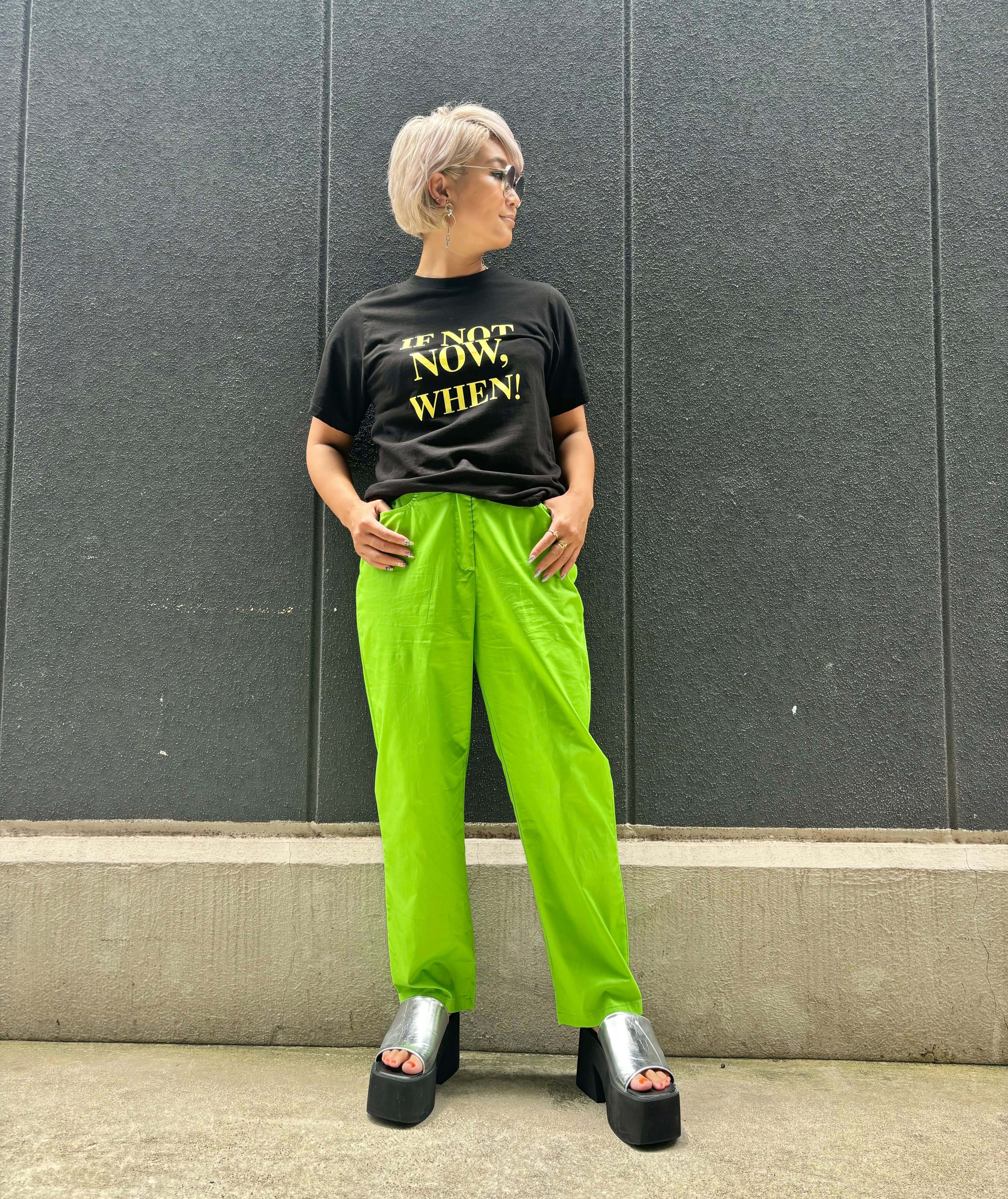 鮮やかなネオングリーンのハイウエストパンツ☆