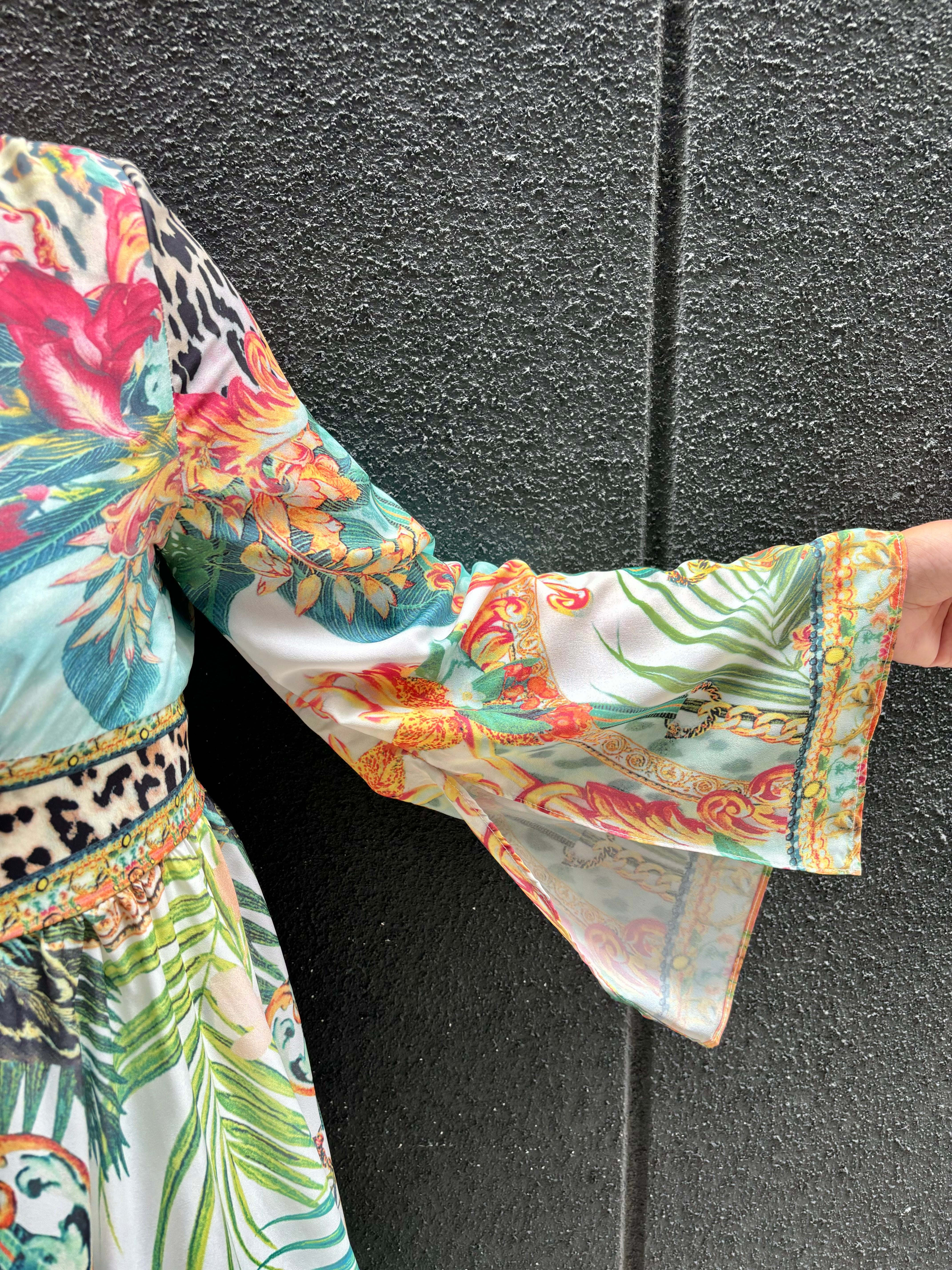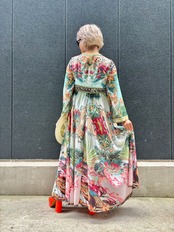 tropical print V-neck change flare long one-piece ワンピース ロングワンピ リゾート ゴージャス 前開き Vネック