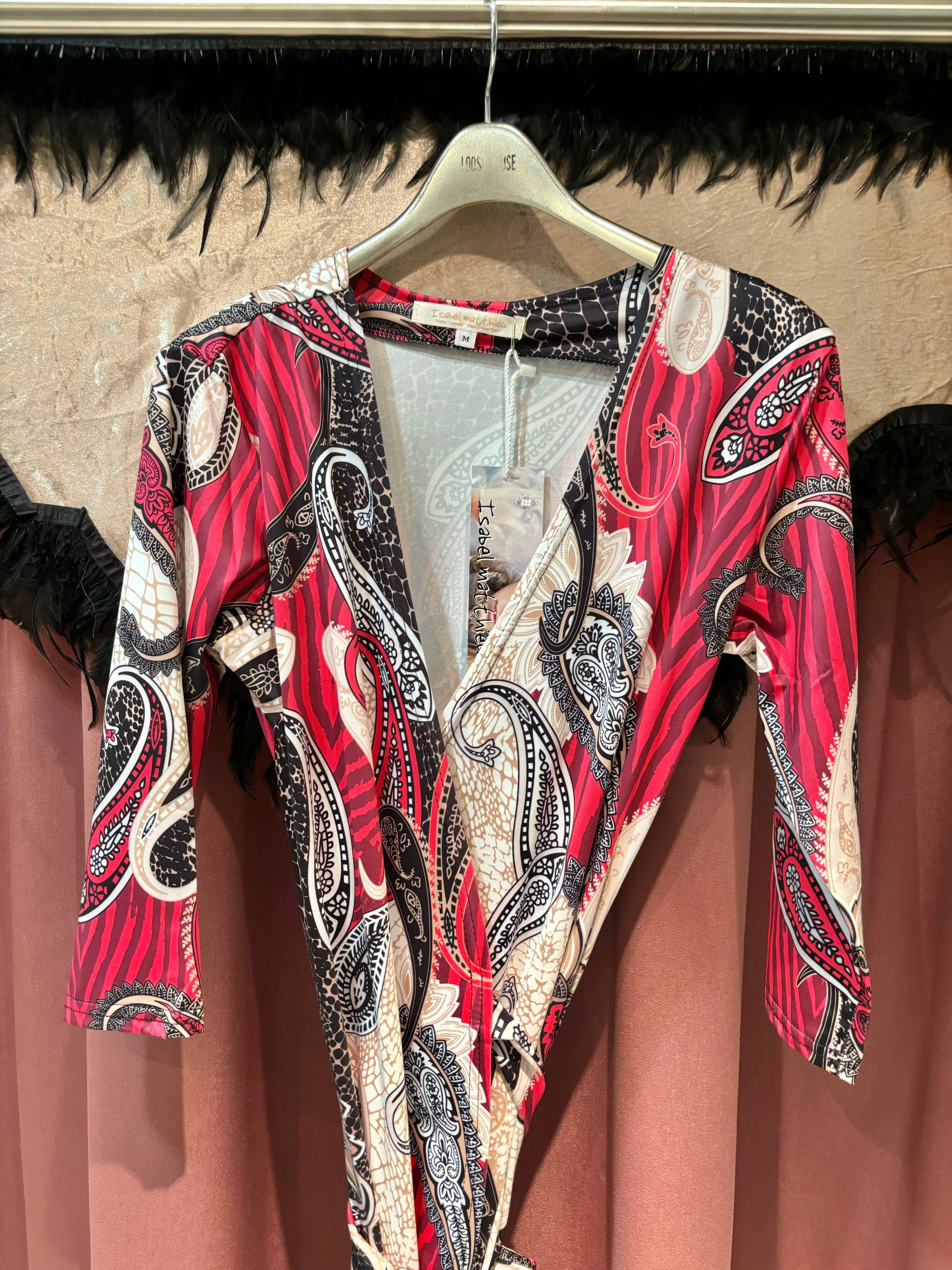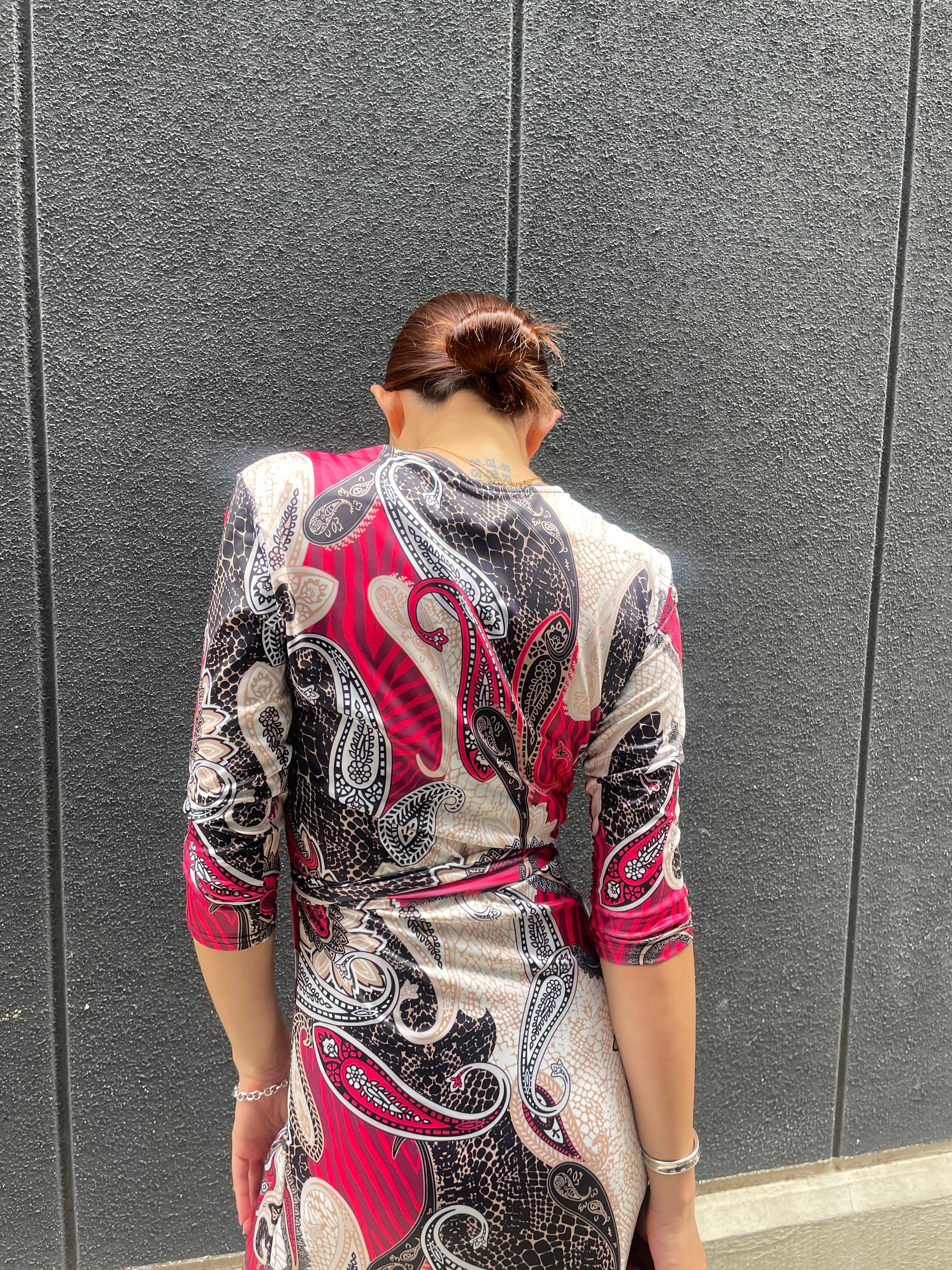 paisley print cache-coeur design one-piece ワンピース ワンピ 柄ワンピ カシュクール タイト ストレッチ