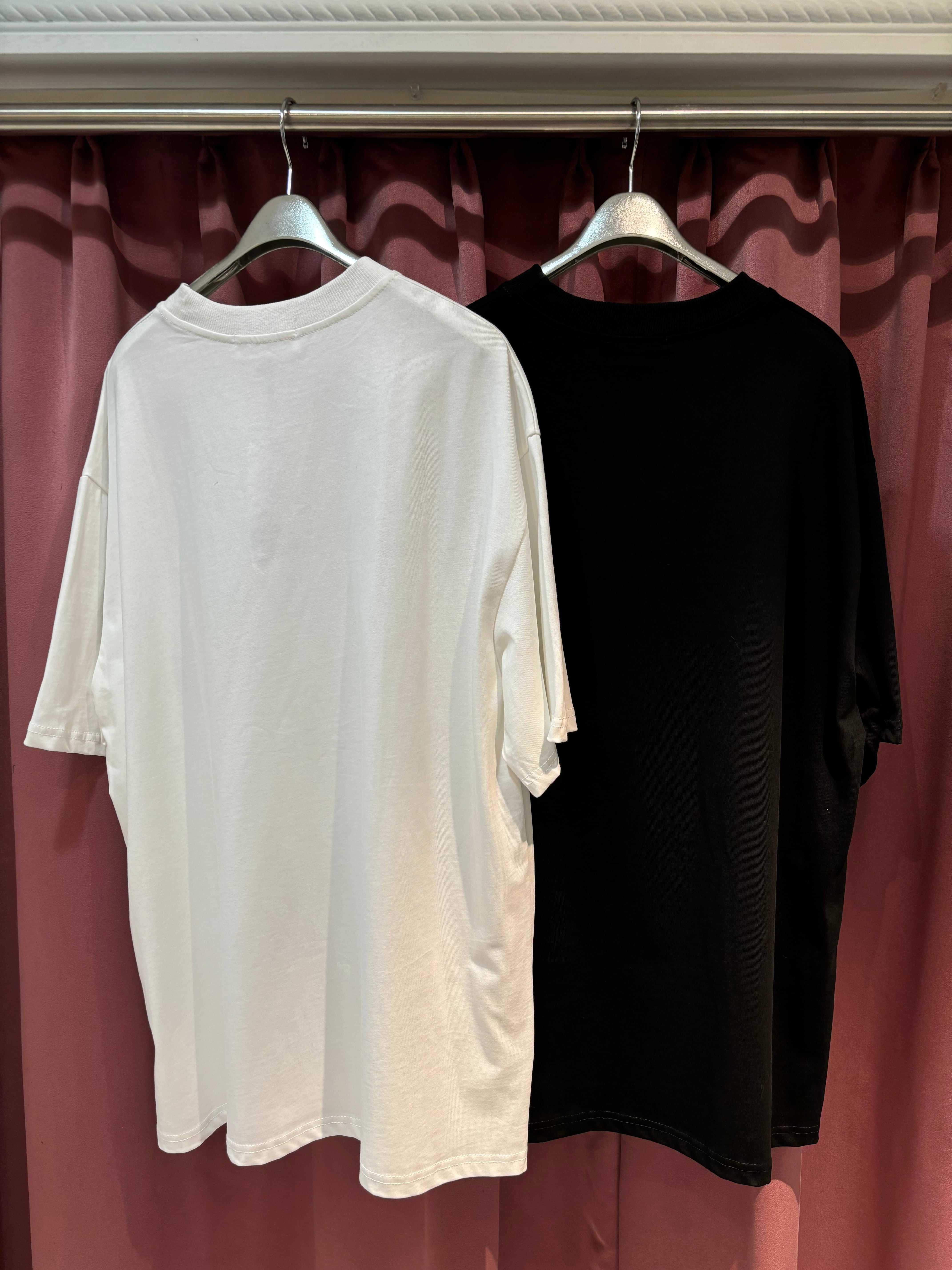 text print over size T-shirt Tシャツ プリントT テキスト ホワイト ブラック オーバーサイズ