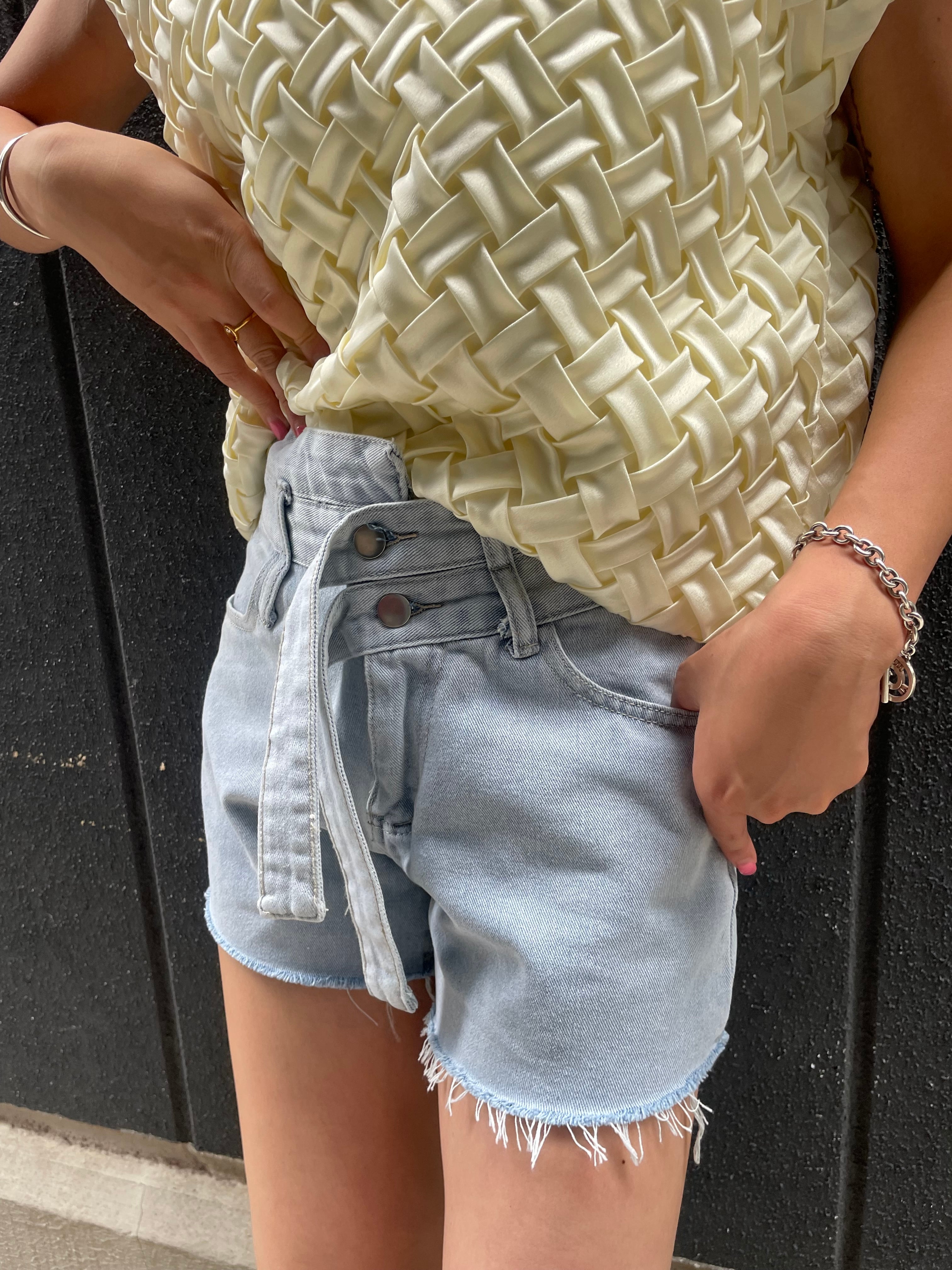 ウエストのベルトデザインがポイントのデニムショートパンツが登場しました!