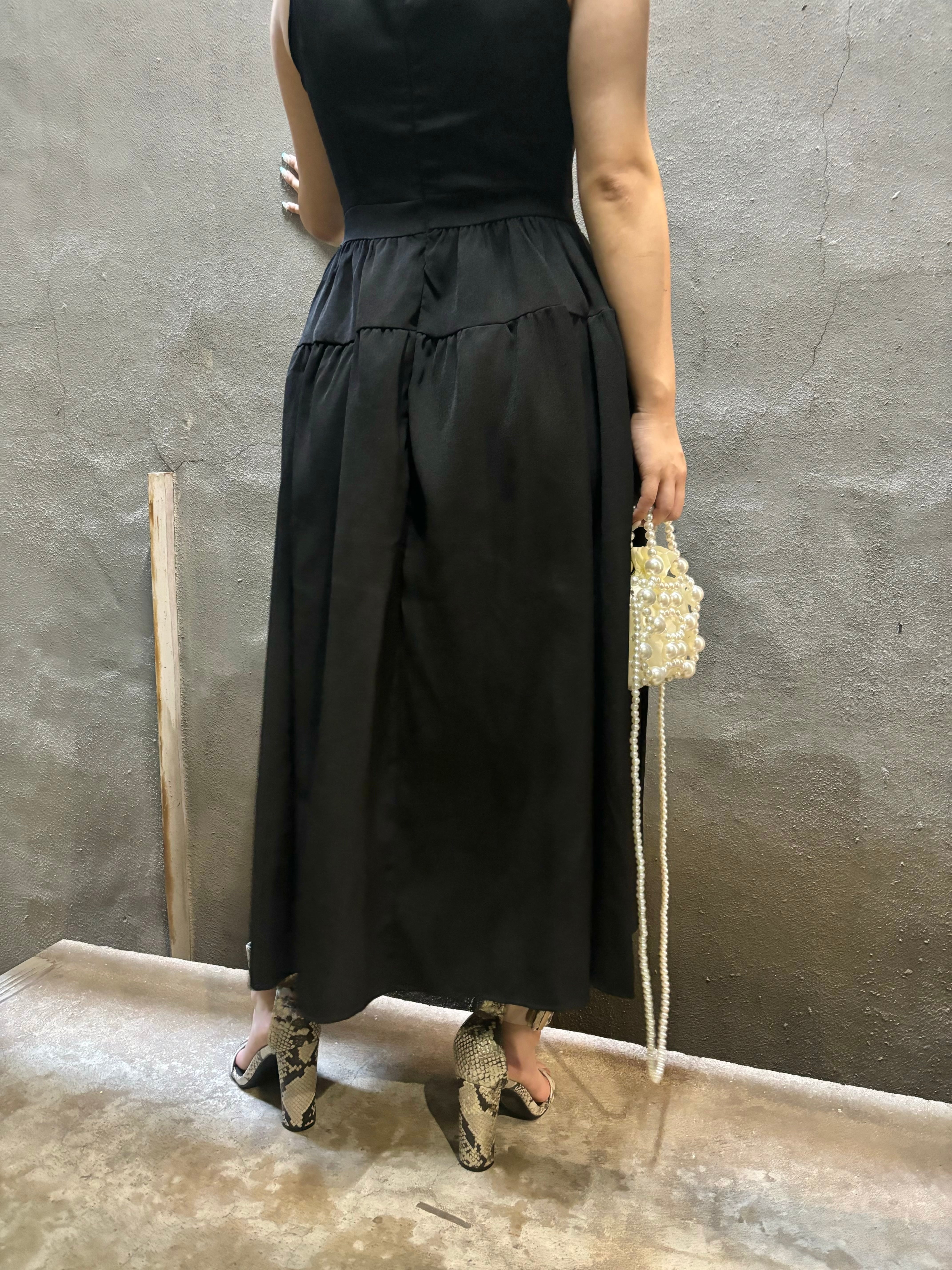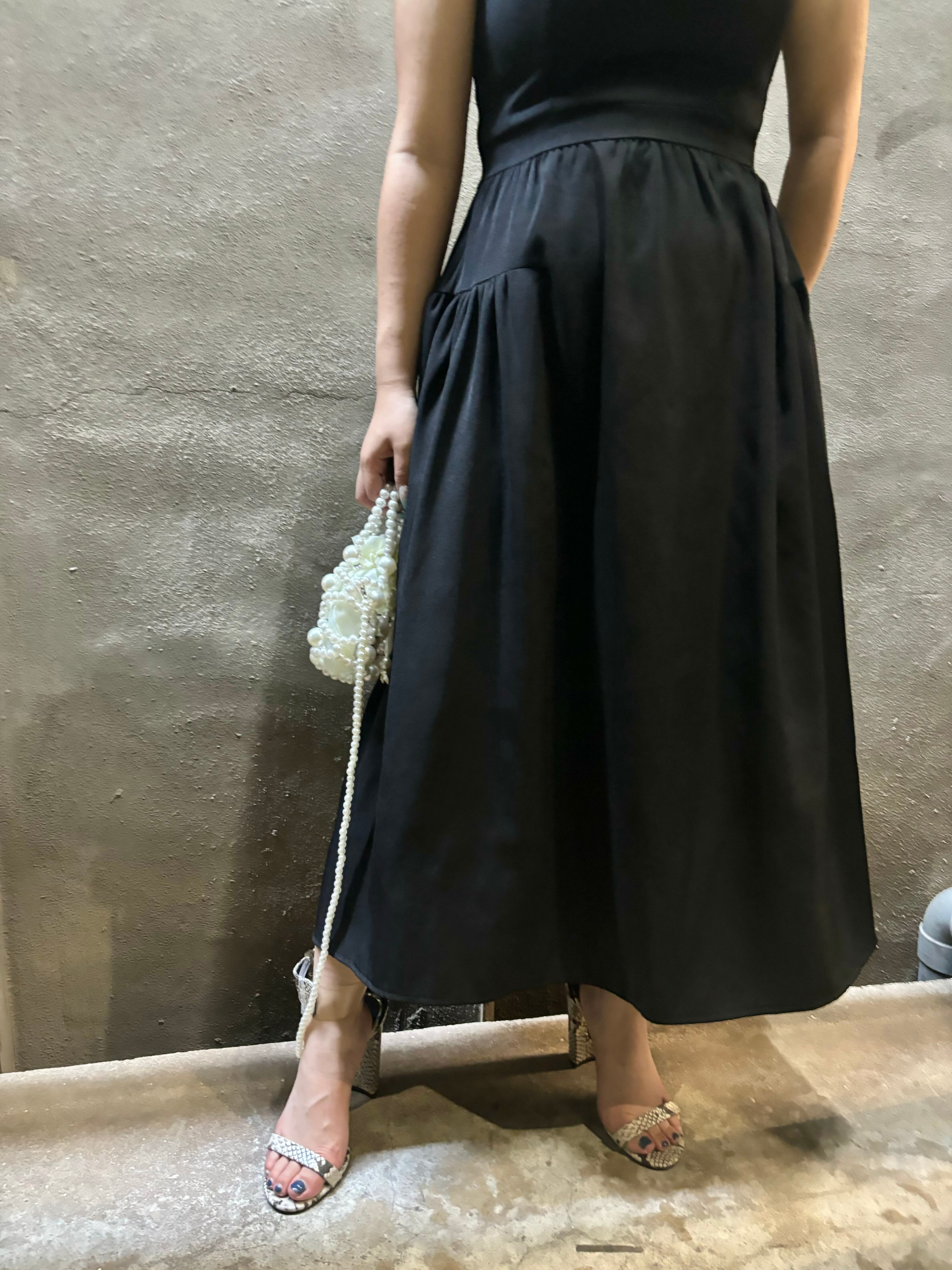 pearl bijou neck fit & flare design one-piece ワンピース ワンピ パール ビジュー ドレス 結婚式 二次会 パーティー ブラック
