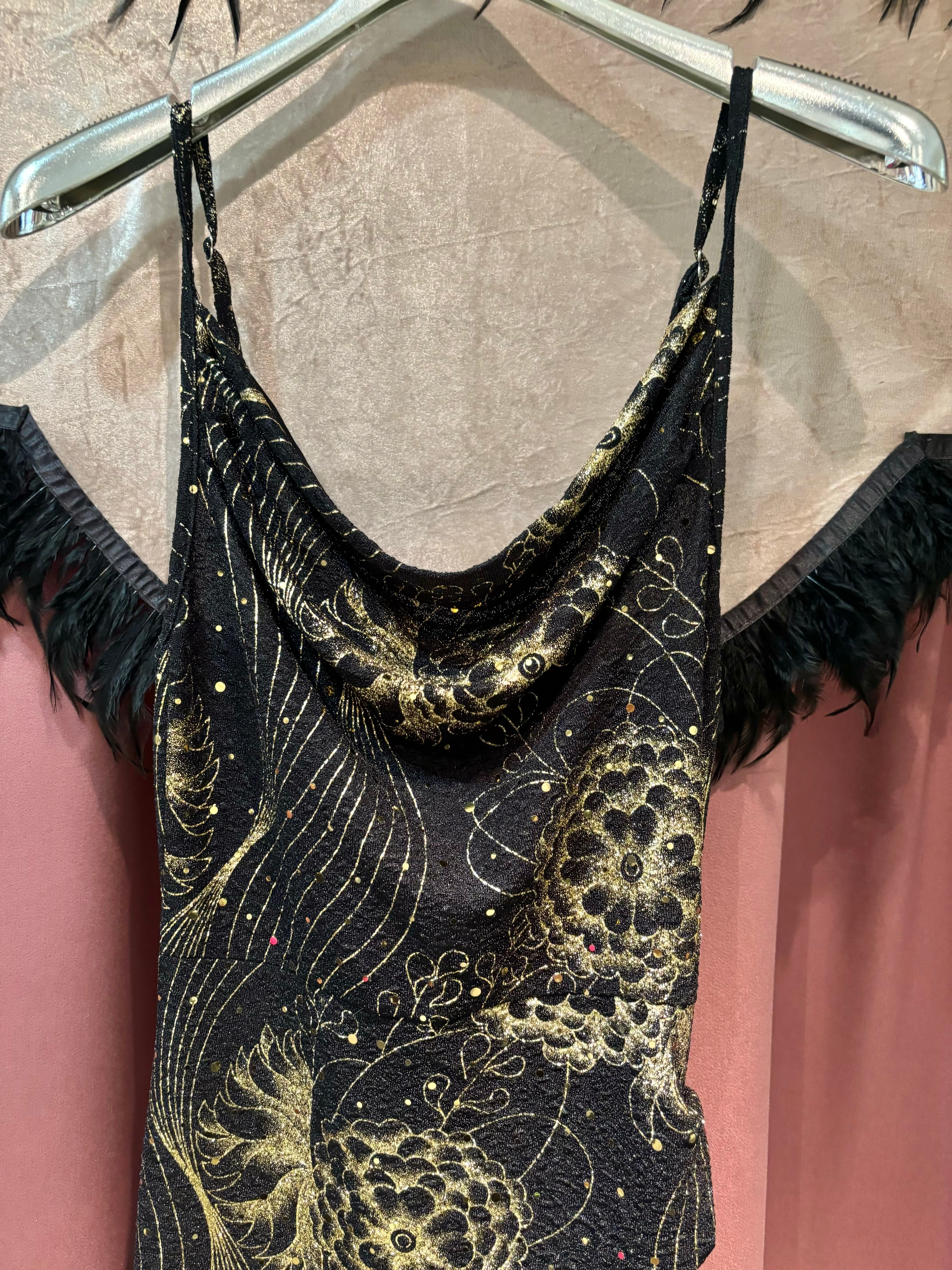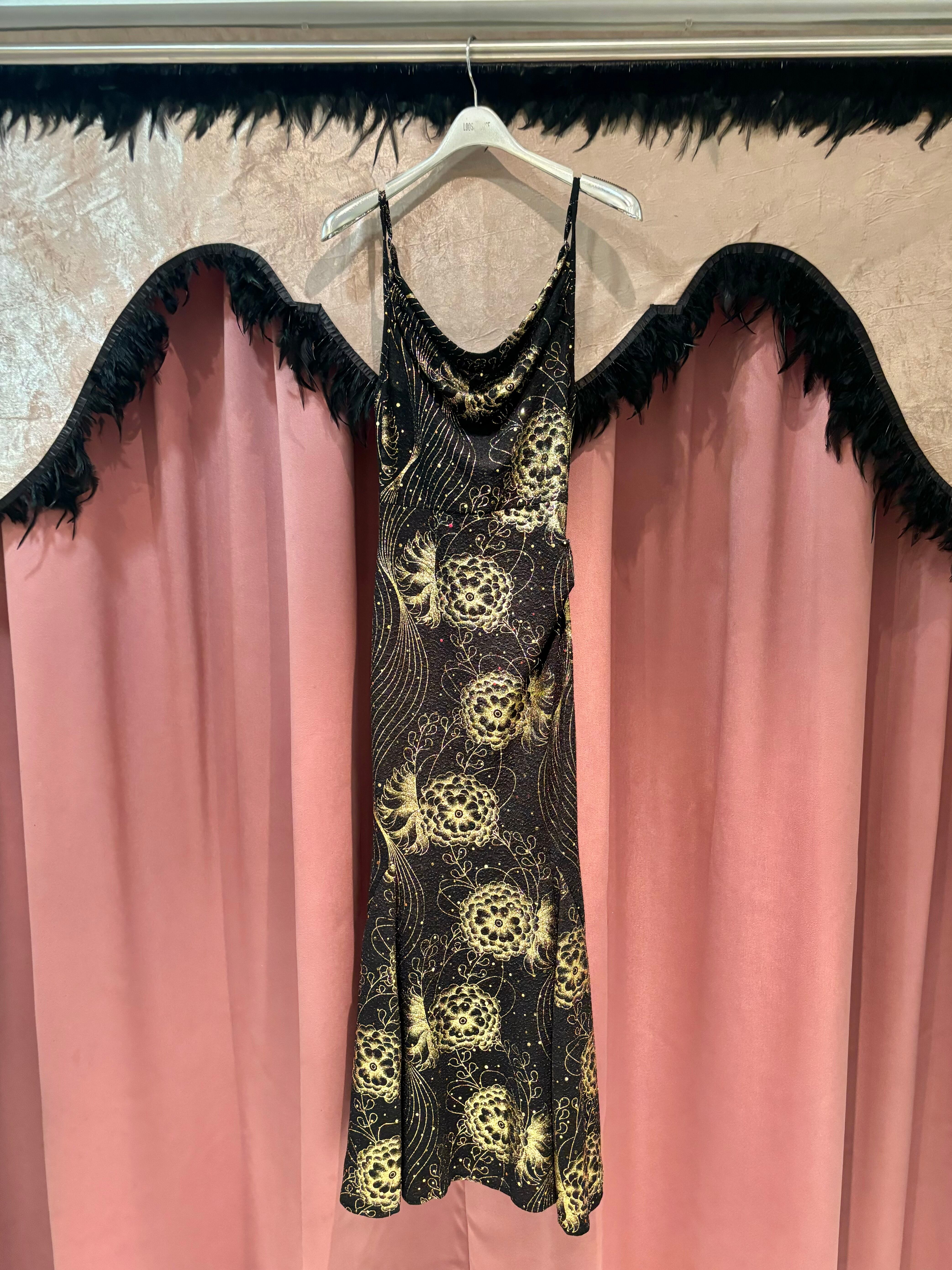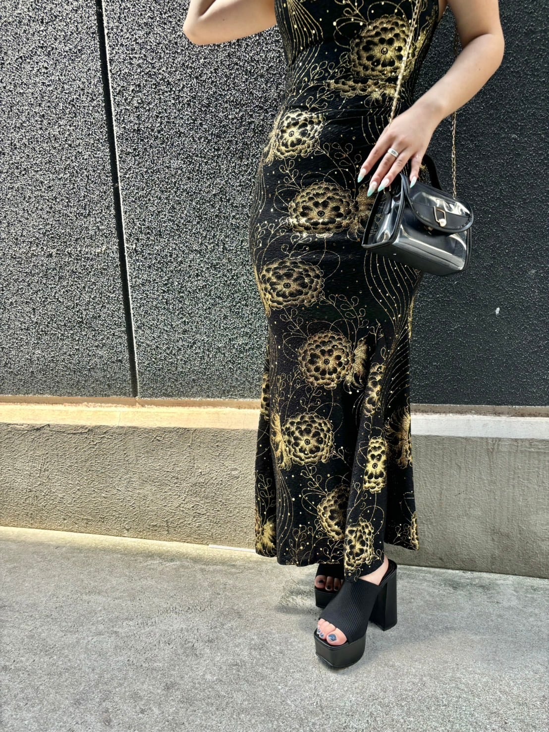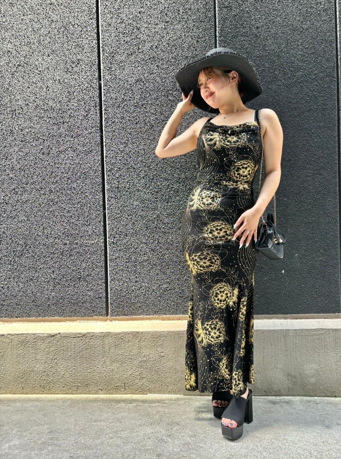 metallic gold print drape neck cami long one-piece ワンピース ワンピ ロングワンピ メタリック ゴールド キャミワンピ ドレープ