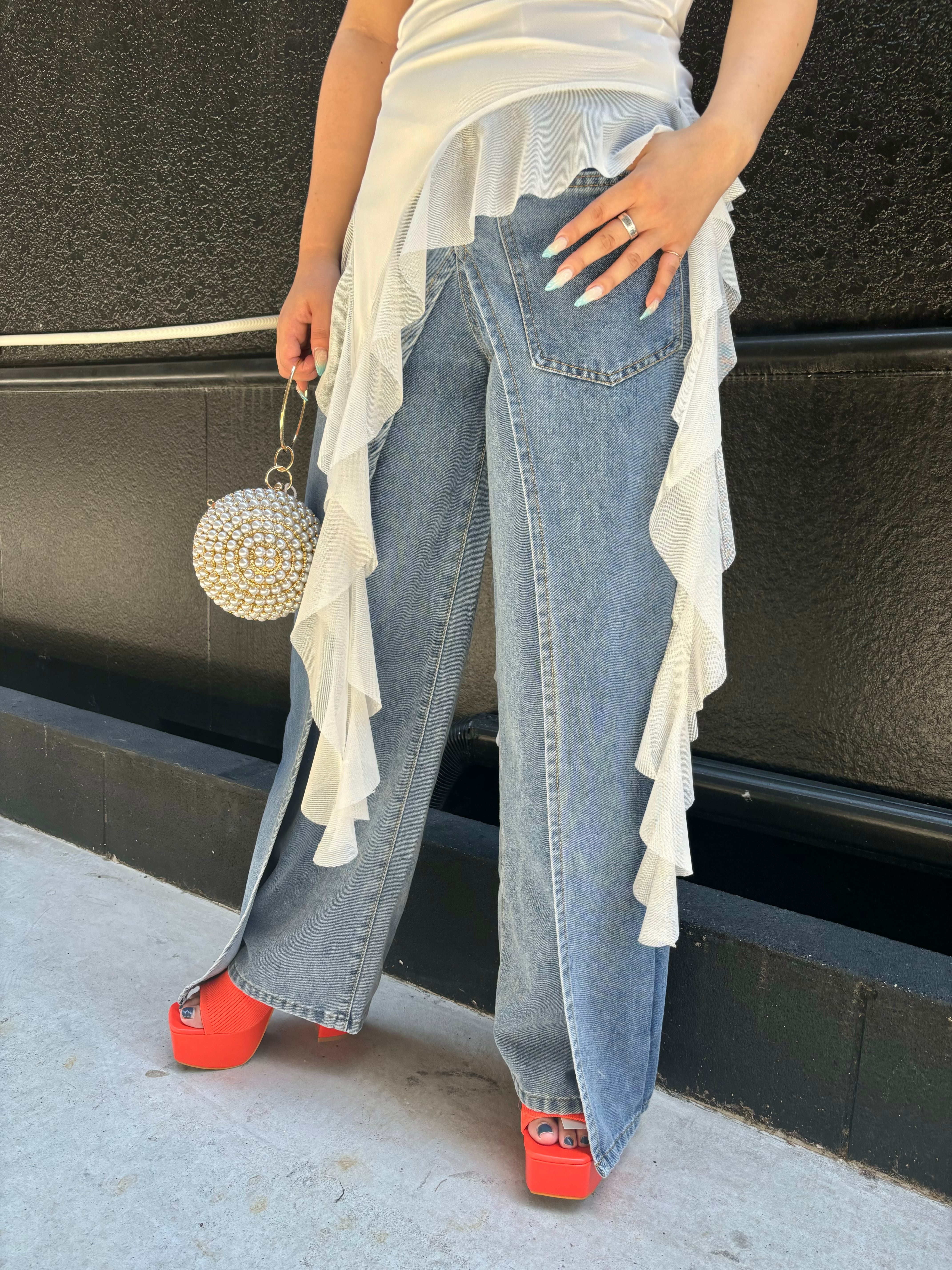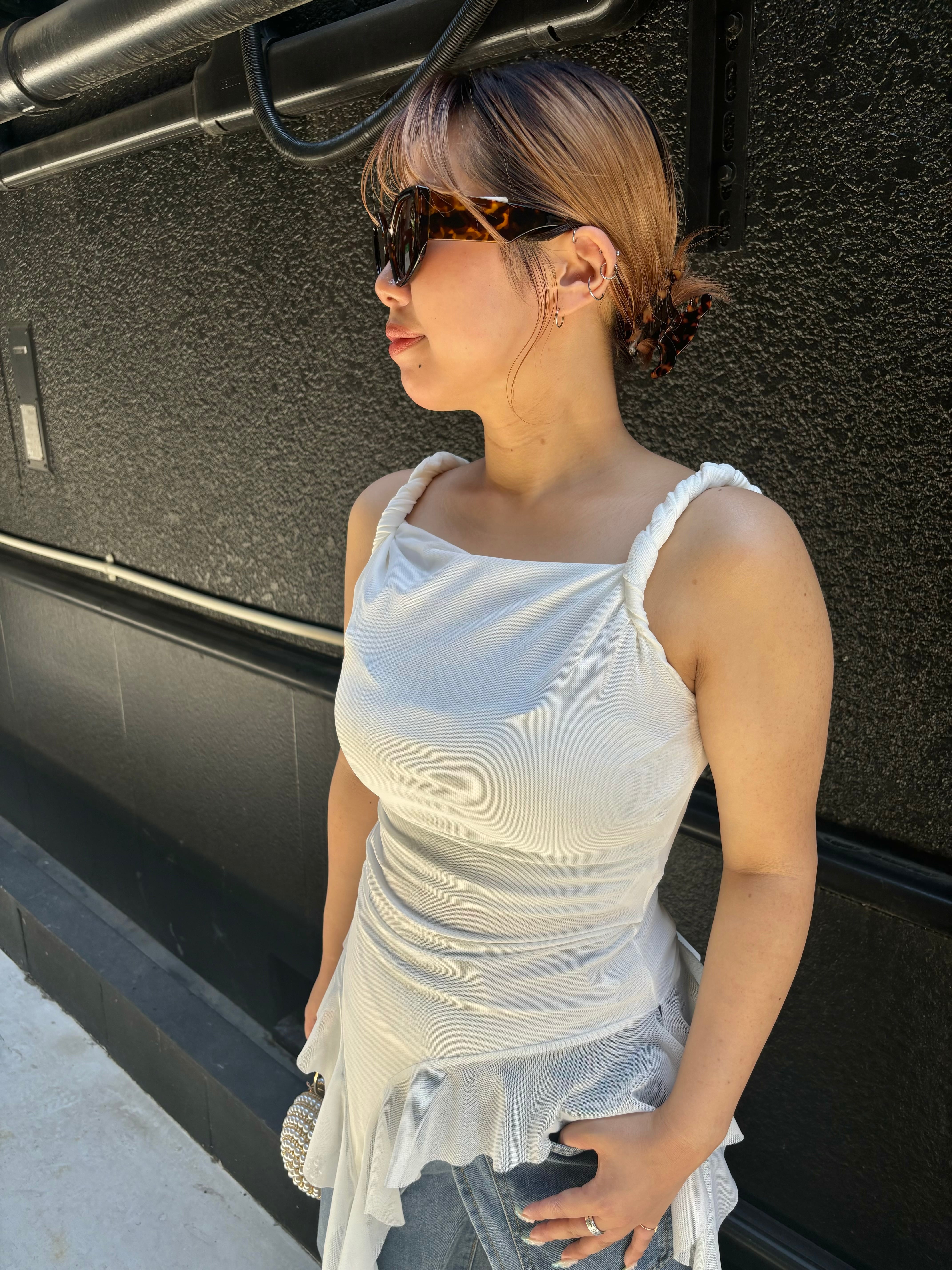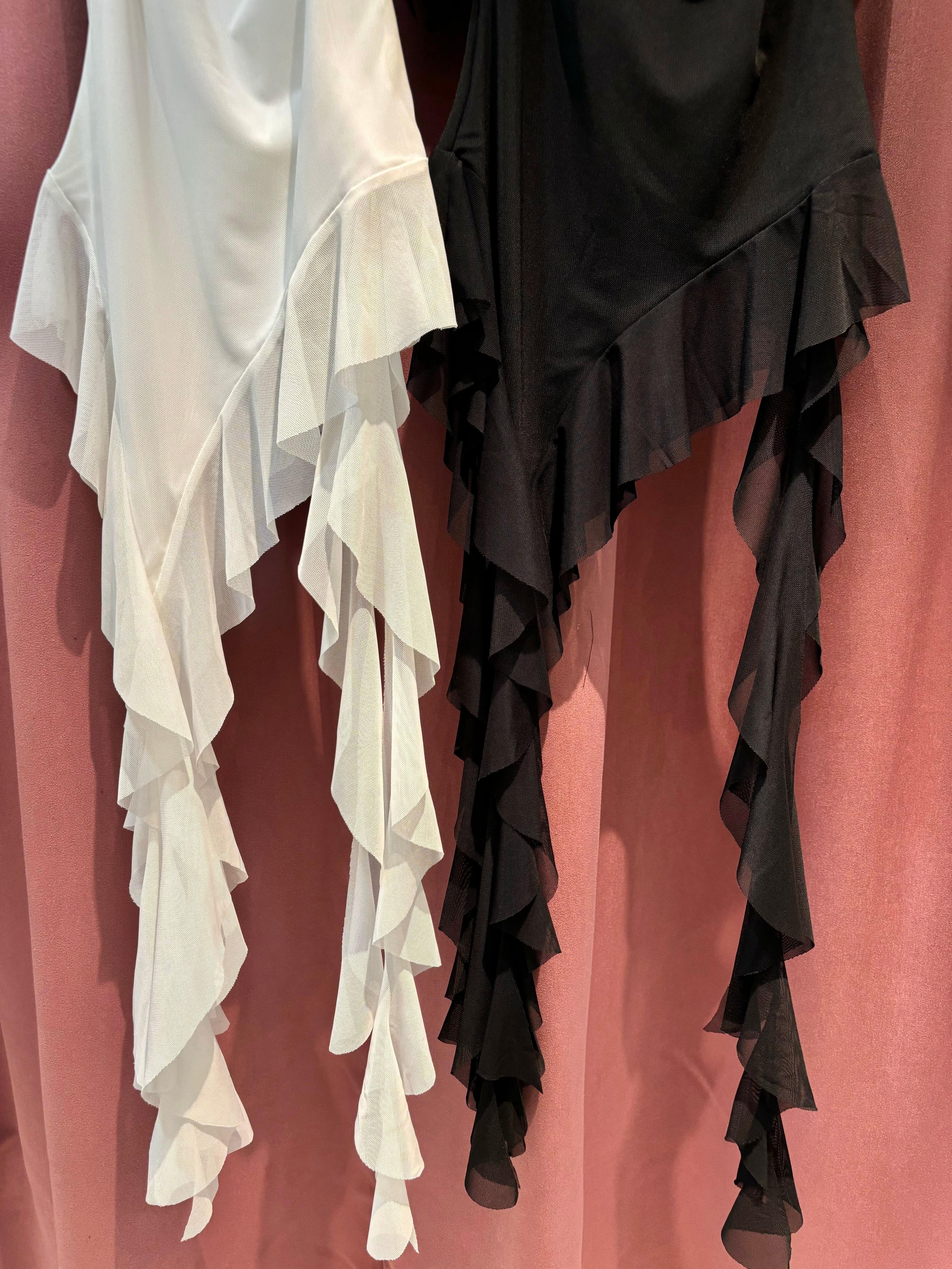 long frill fringe tight fit design tops トップス デザイントップス フリル フリンジ ドレープ タイト